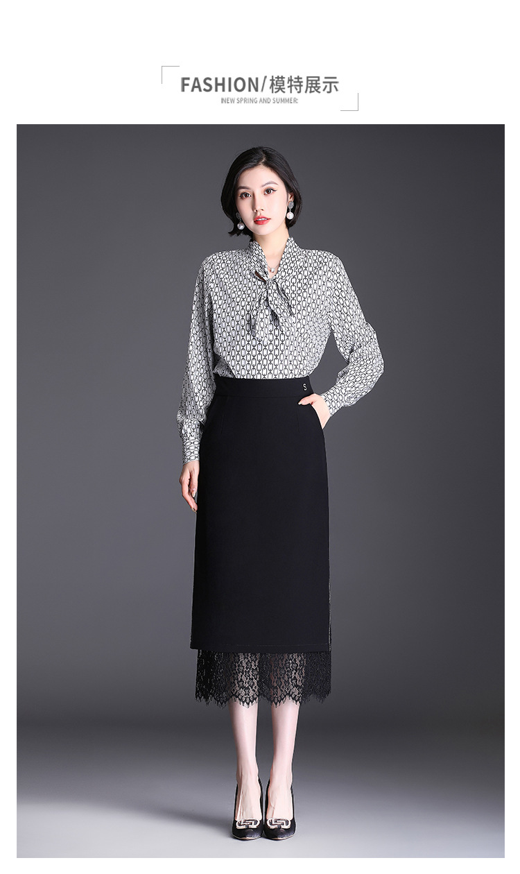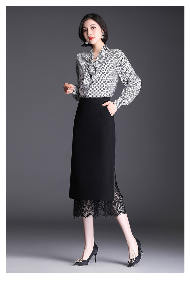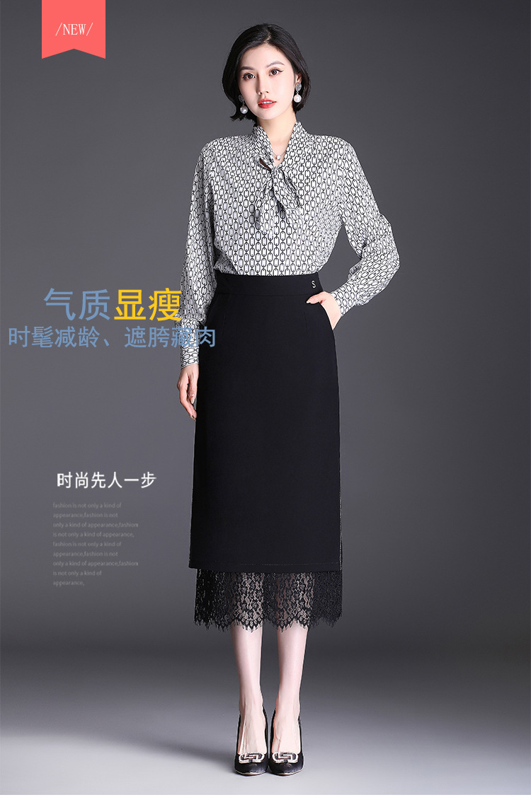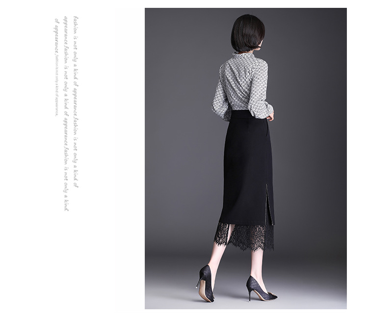 高腰显瘦包臀裙垂感开叉蕾丝花边裙 TY2133