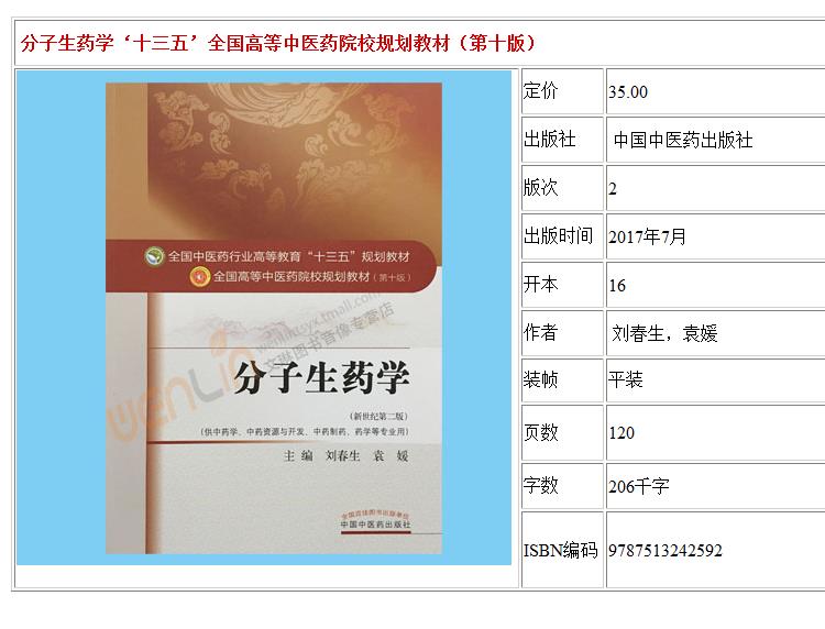 分子生药学 新世纪第二2版 全国高等中医药院校规划教材 第十10版 十三五规划教材 刘春生 袁媛 中医药 供中医学中药制药等专业用