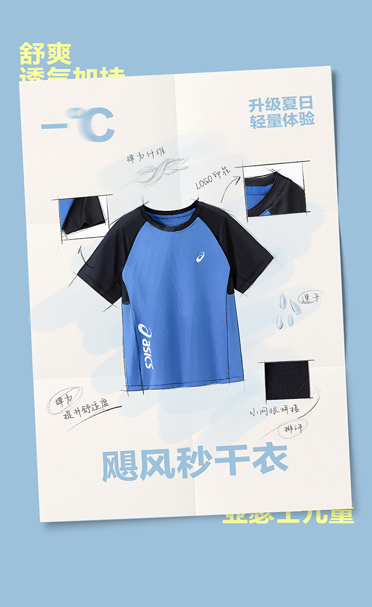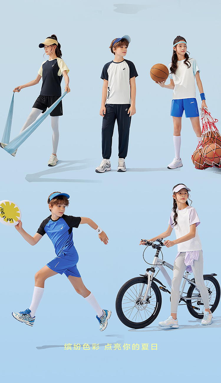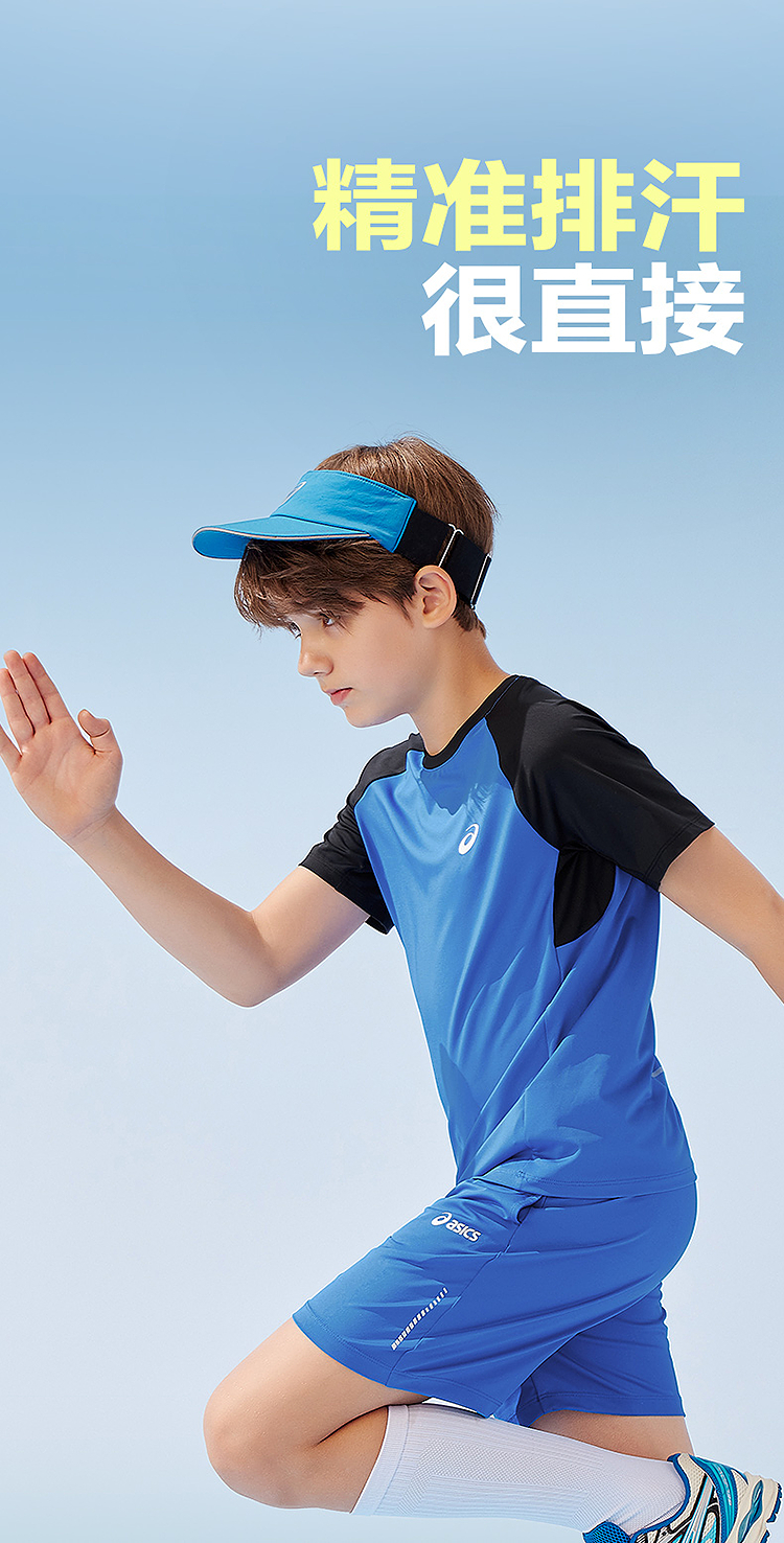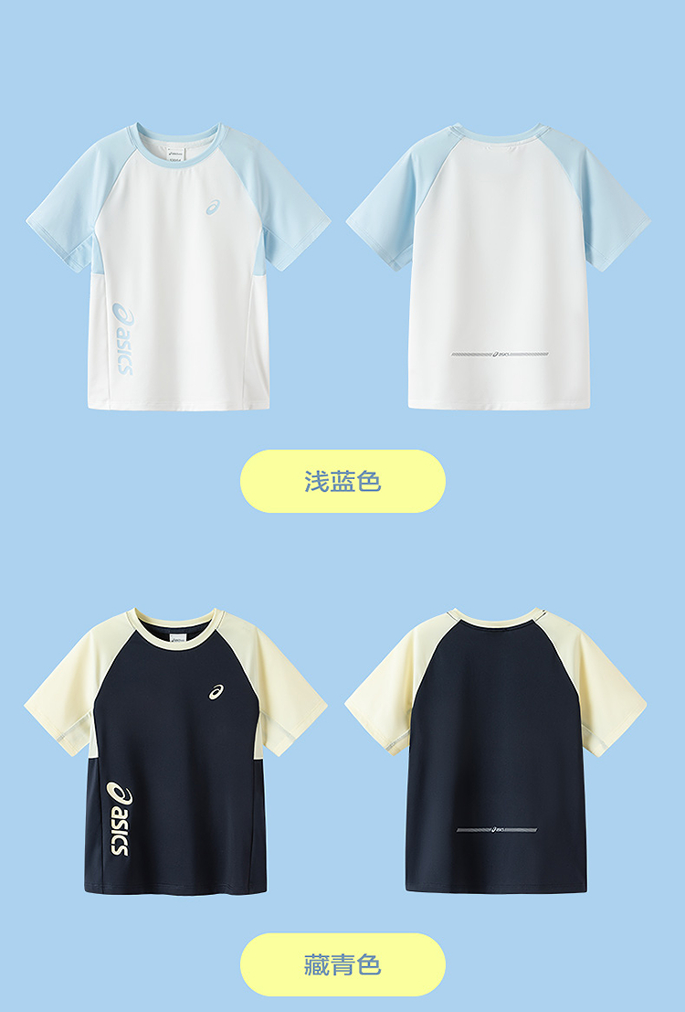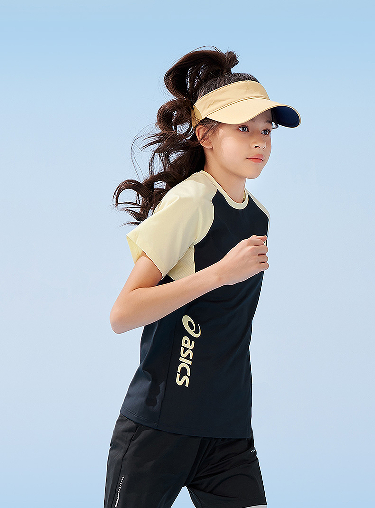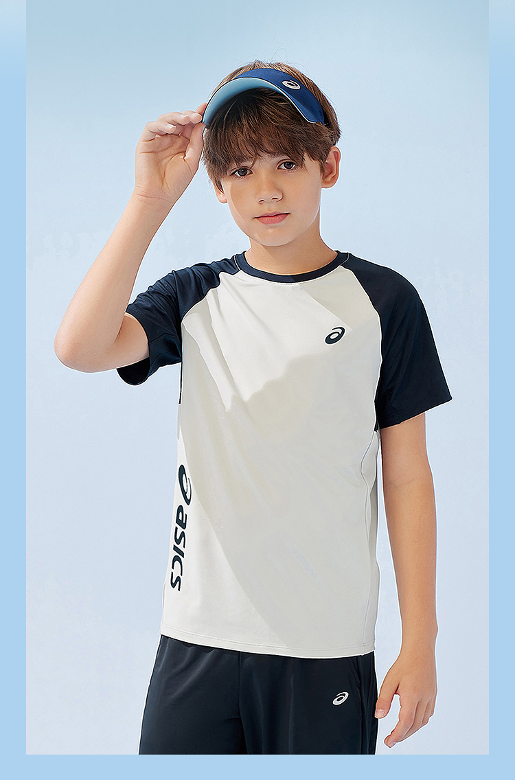 ASICS/亚瑟士童装25年夏季新款男女童运动吸湿插肩短袖飓风秒干衣