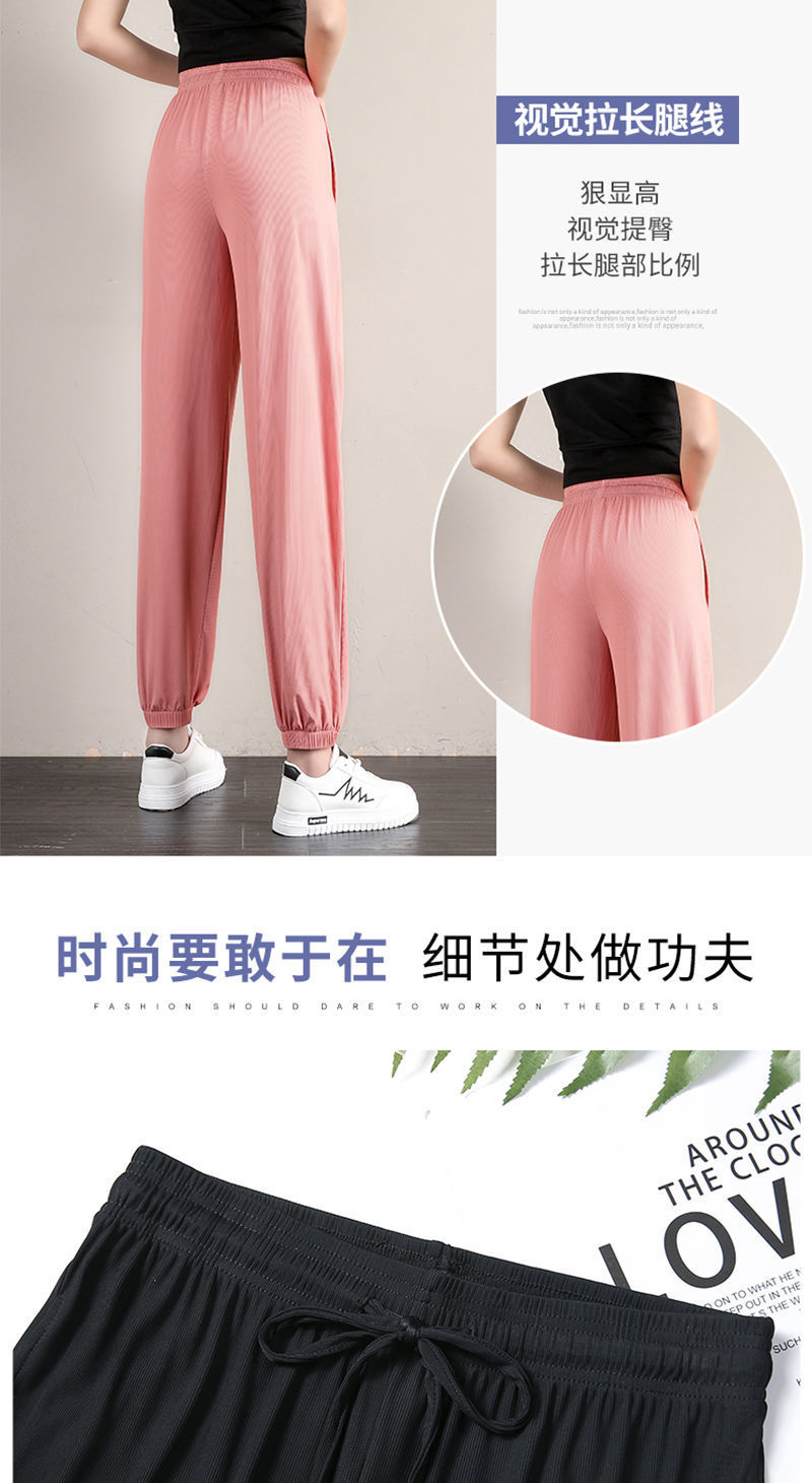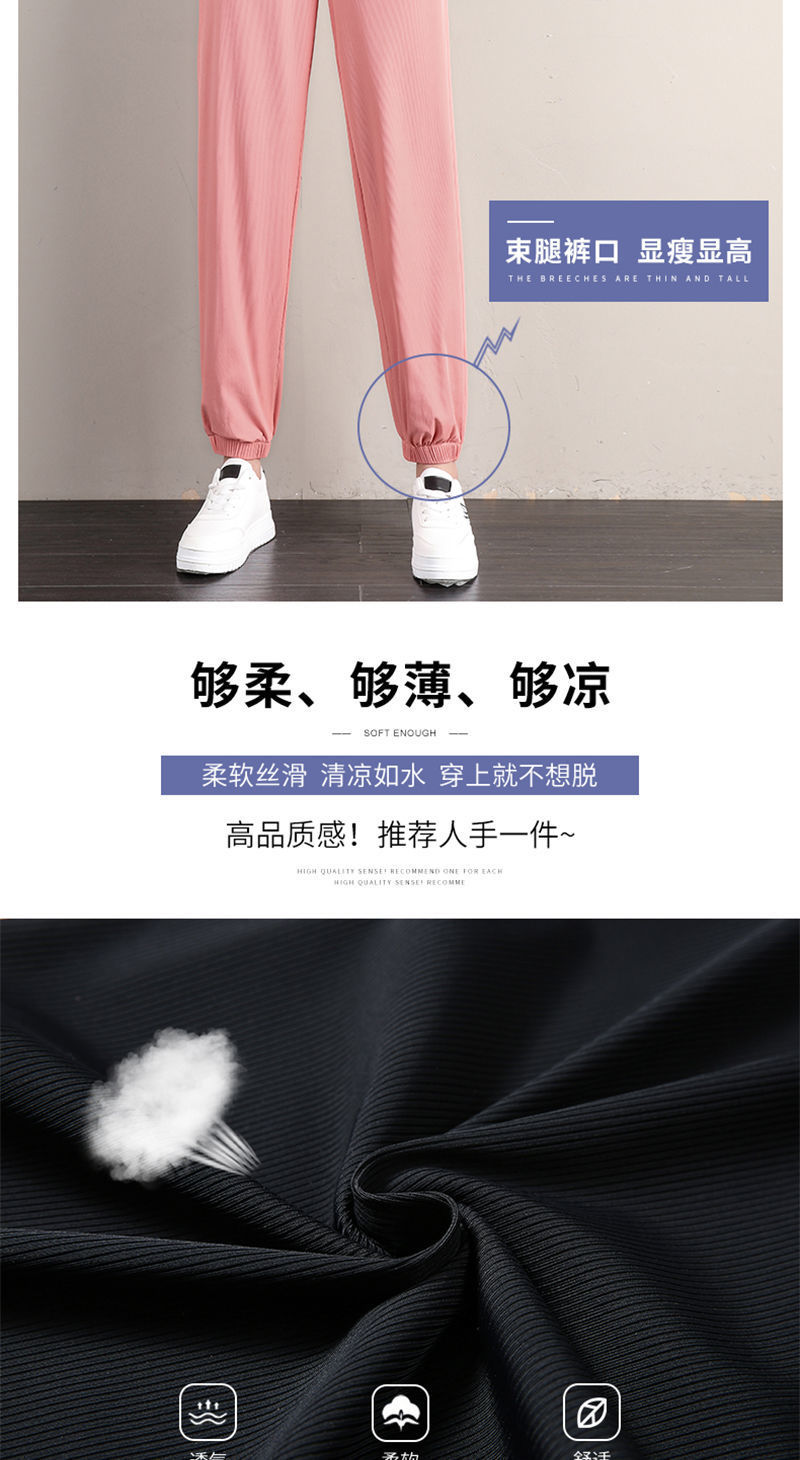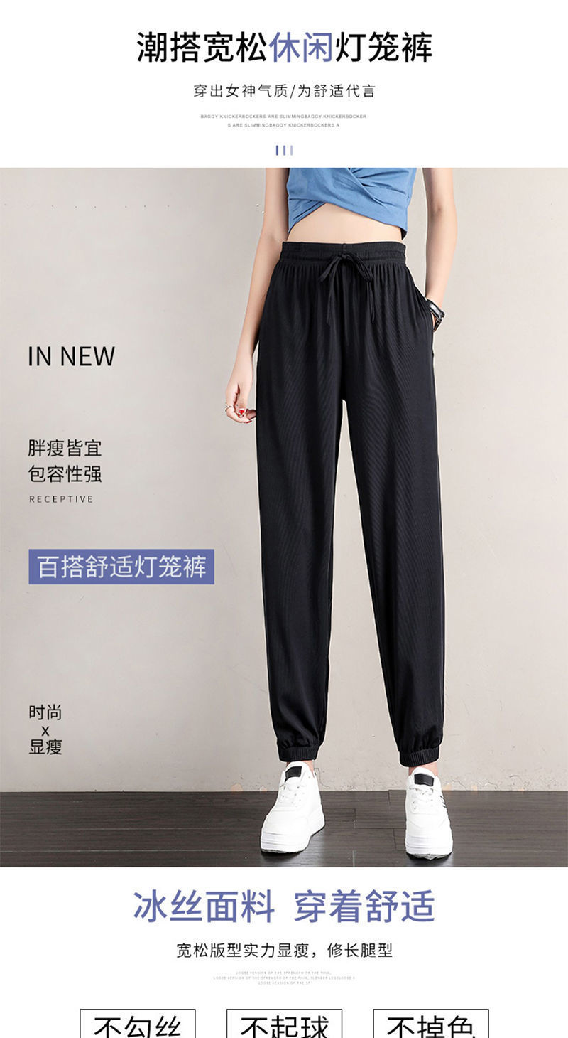 冰丝运动裤女宽松夏季薄款新款高腰垂感灯笼束脚裤