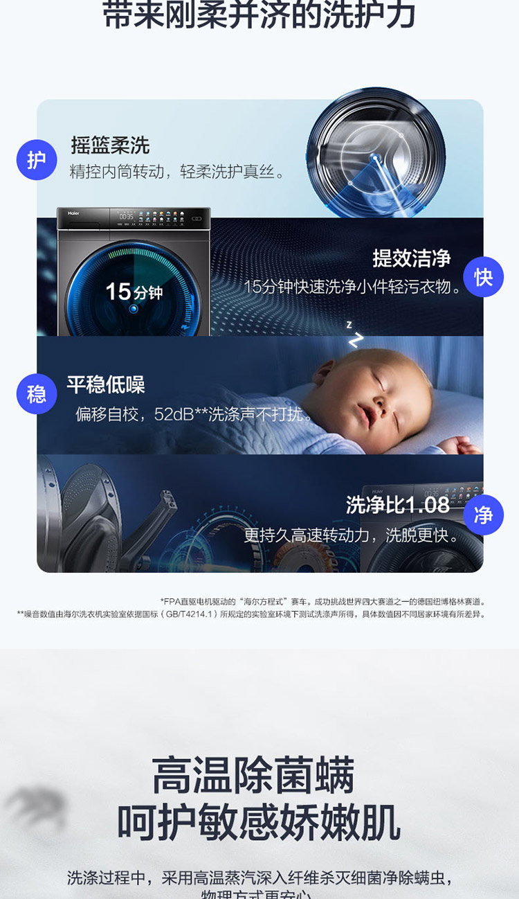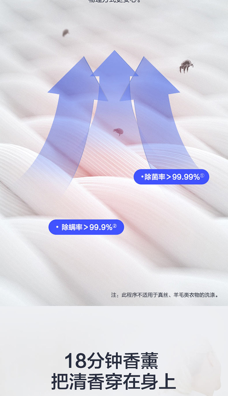 ❀【高温除菌】洗涤过程中,采用高温蒸汽深入纤维杀灭细菌净除螨虫,物理方式更安心