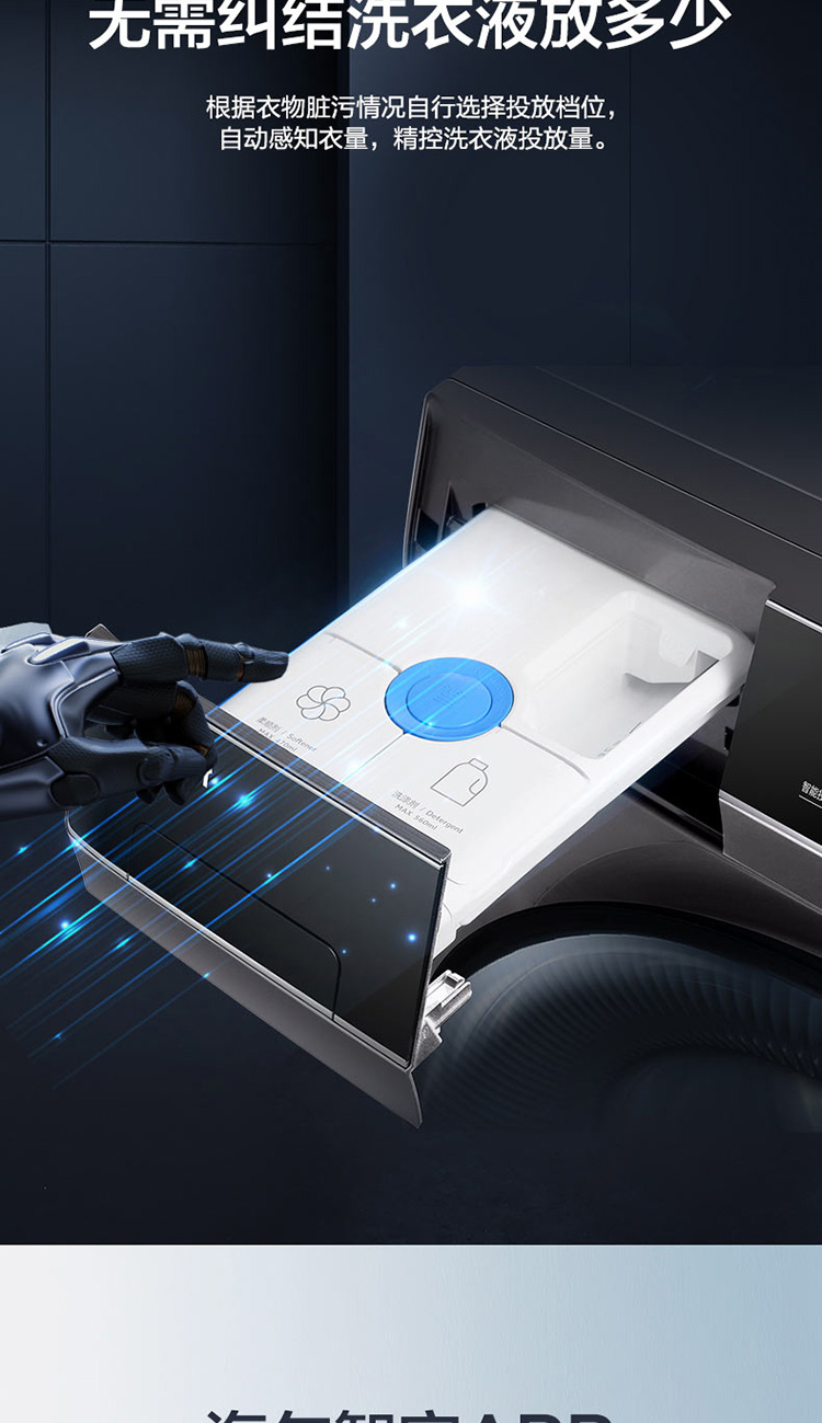 ❀【智能投放】无需纠结洗衣液放多少,根据衣物脏污情况自行选择投放档位,自动感知衣量,精控洗衣液投放量