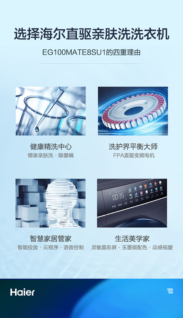 EG100MATE8SU1:10公斤直驱变频滚筒洗衣机全自动