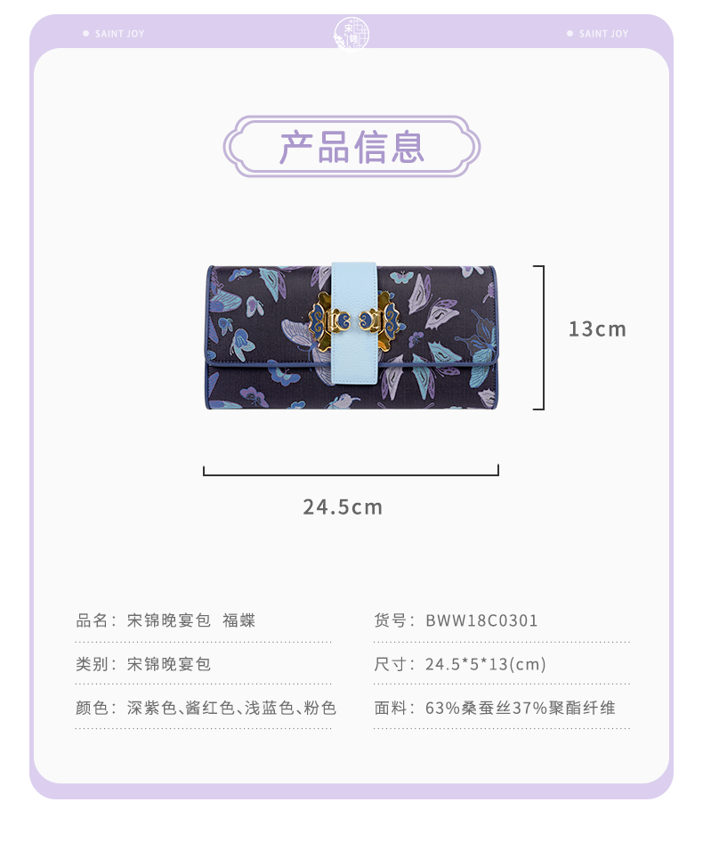SAINTJOY/上久楷宋锦晚宴包福蝶系列BWW18C0301