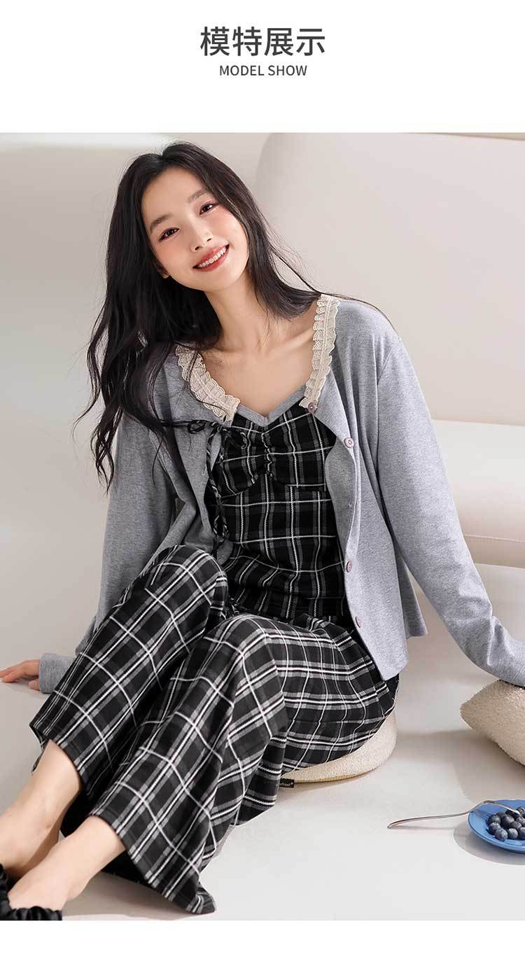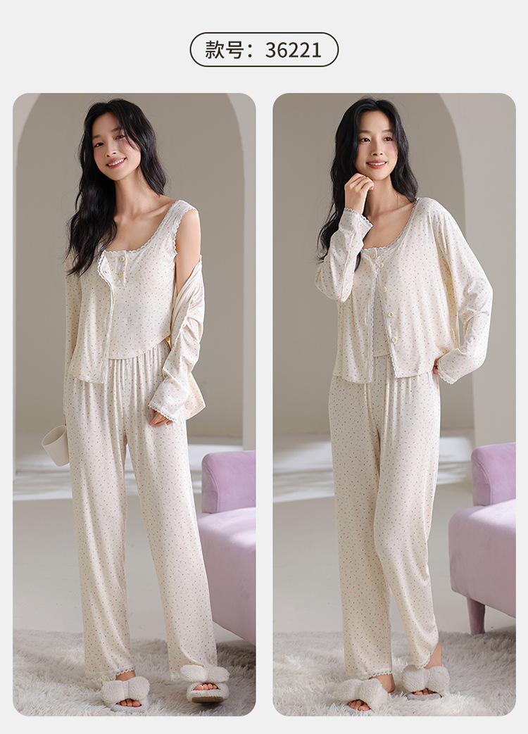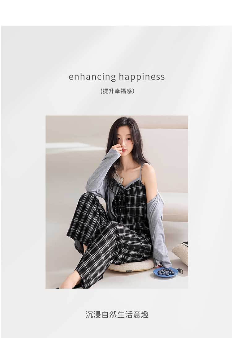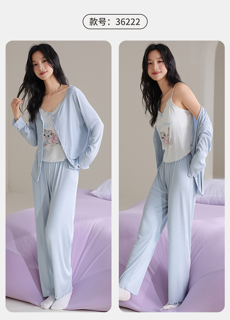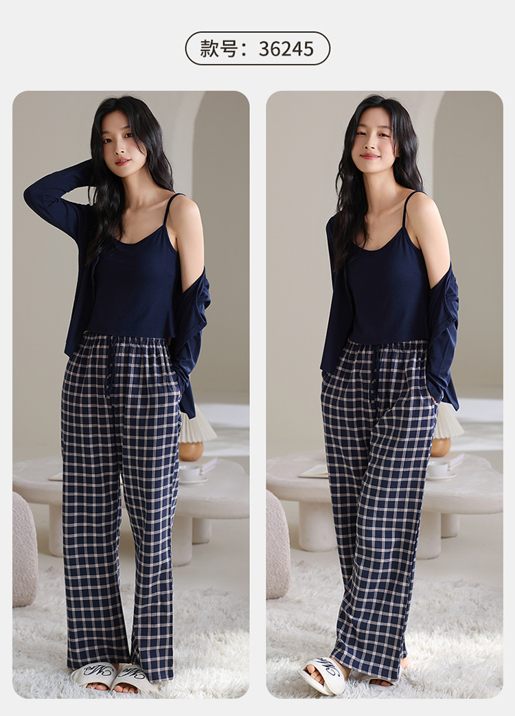 【带胸垫三件套】春夏季2026新款纯棉/莫代尔三件套装吊带款休闲家居服