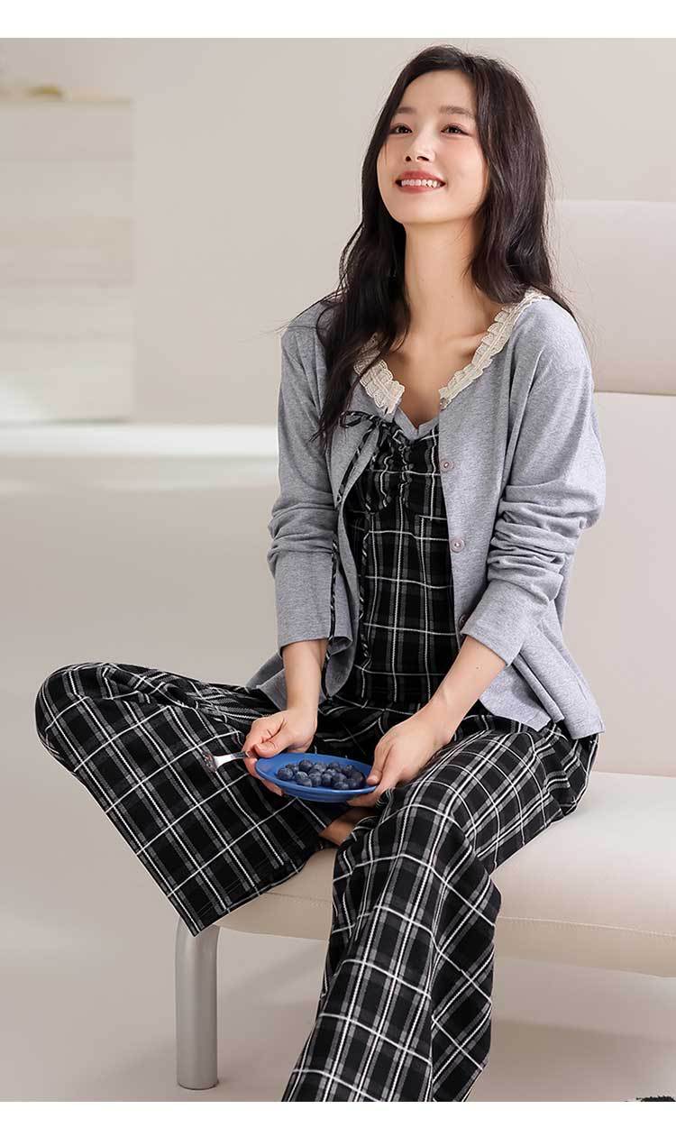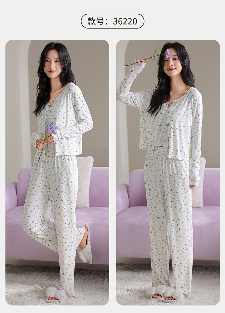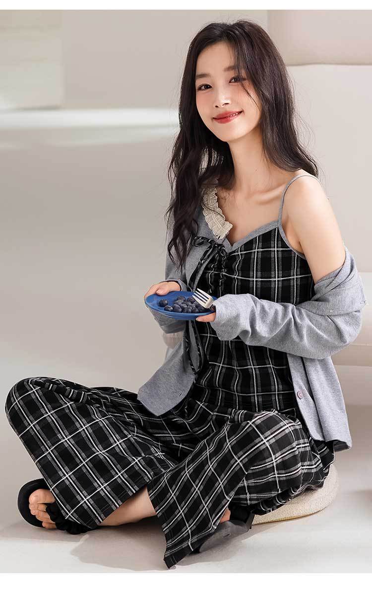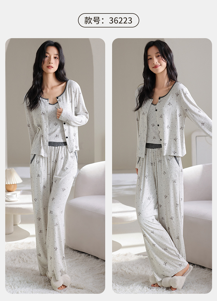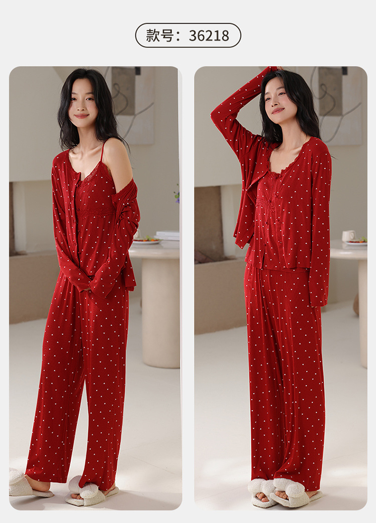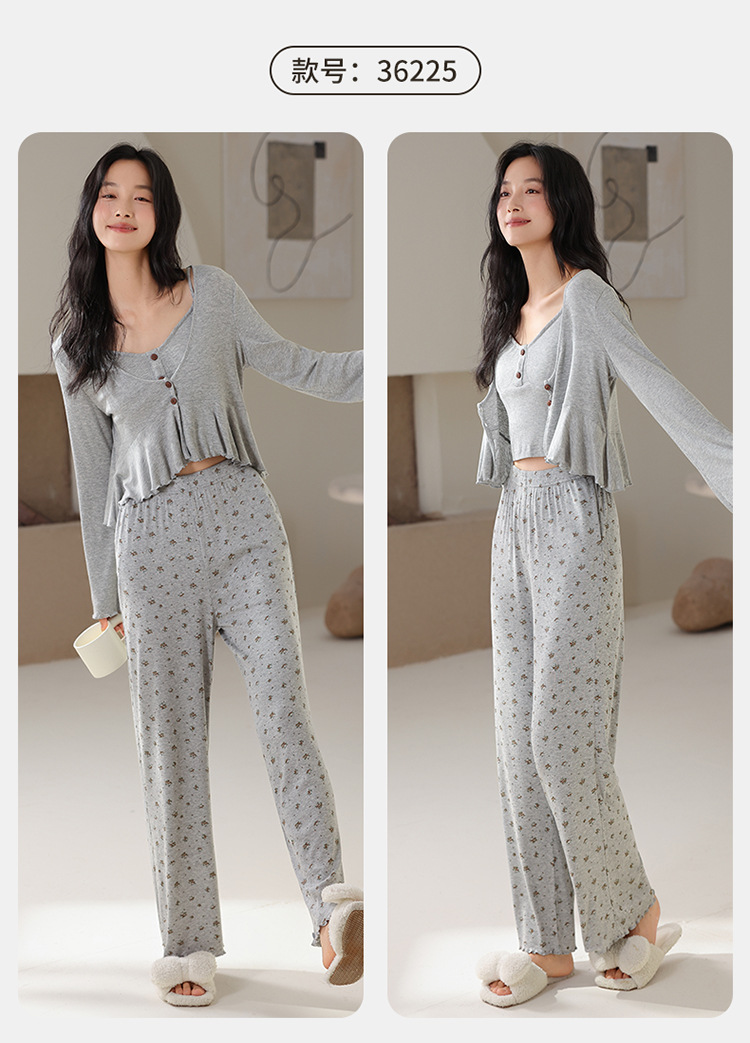 【带胸垫三件套】春夏季2026新款纯棉/莫代尔三件套装吊带款休闲家居服