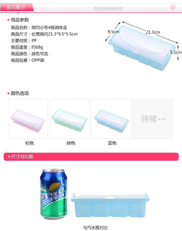熊诺4格调味盒多功能塑料盐味精调料盒(均码颜色随机)ZMXNTWH