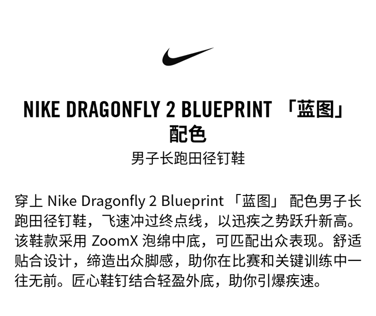 Nike 耐克 ZoomX Dragonfly 2 FP 男女款中长跑蜻蜓田径训练钉鞋