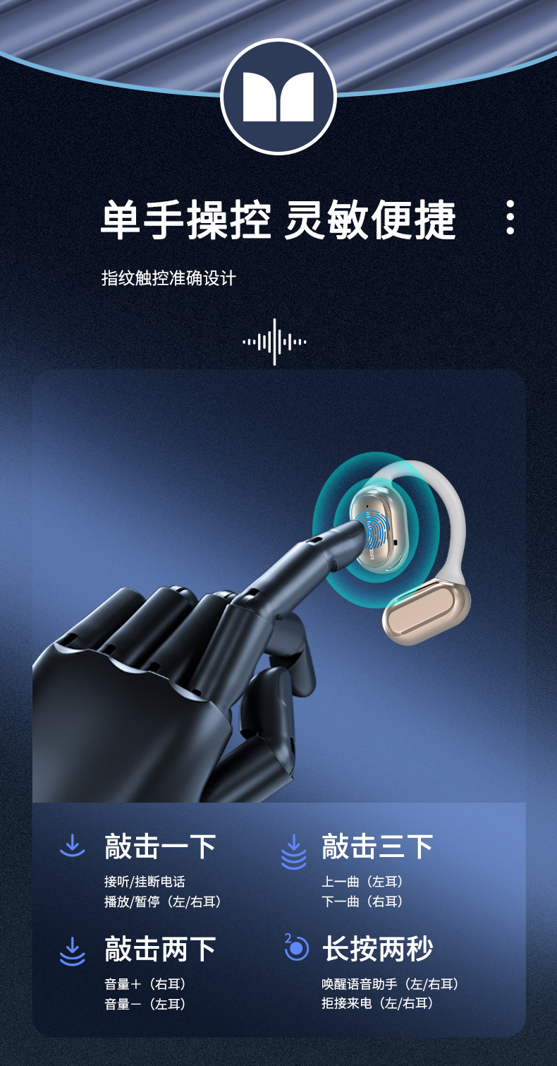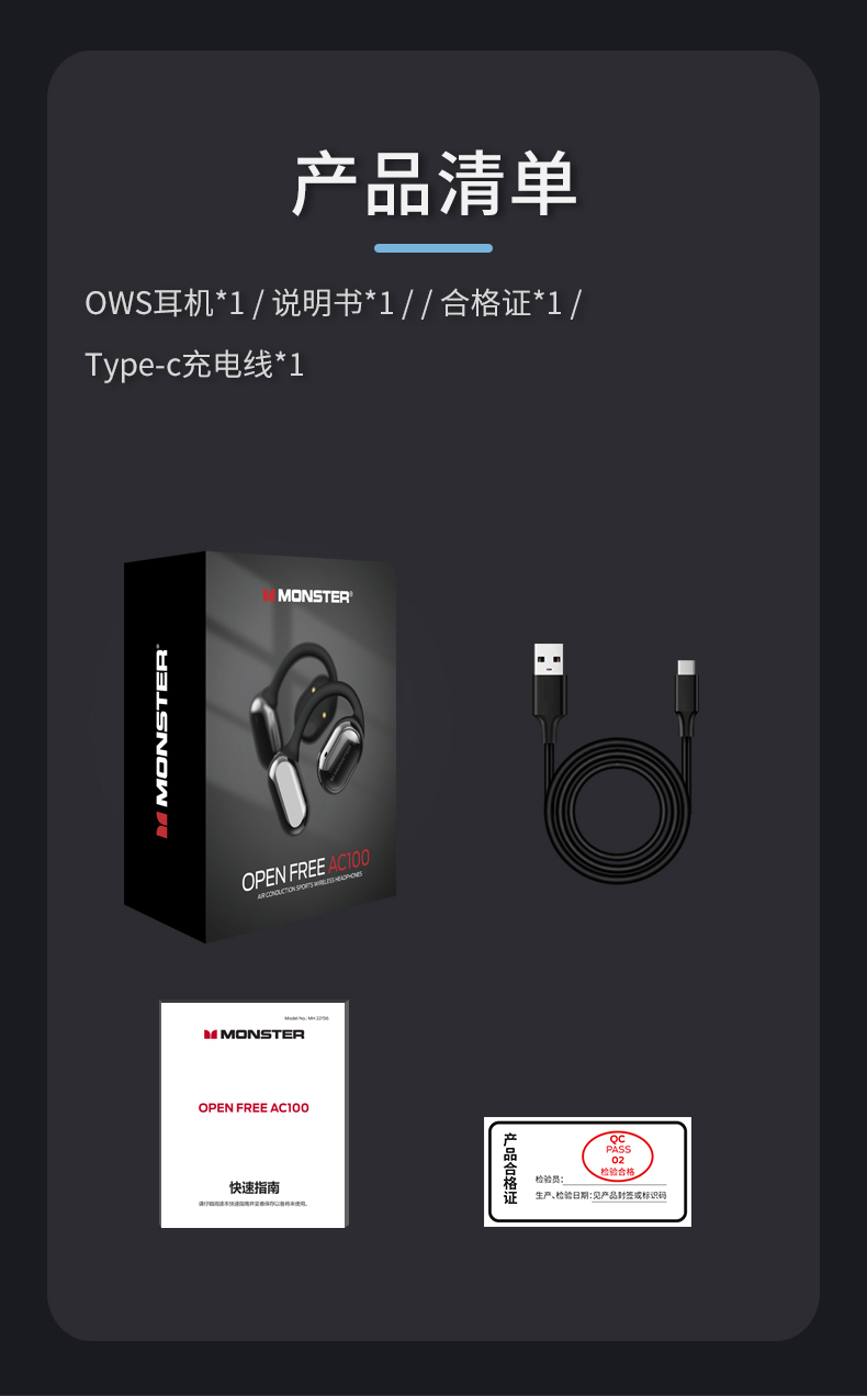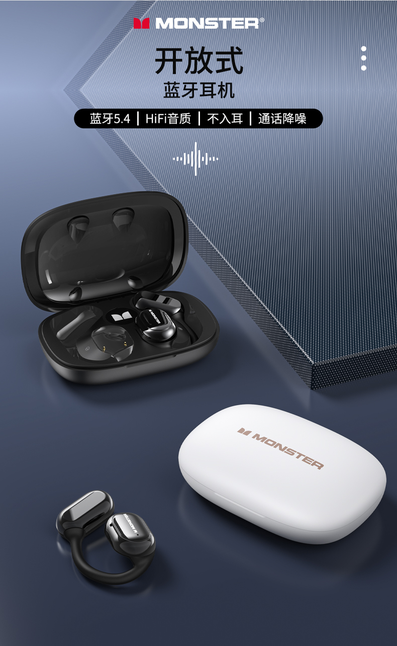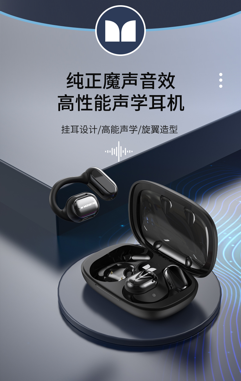 魔声Open Free AC100气传导耳机,16mm超大发声单元+复合钛金属振膜 震撼音质牛到爆佩戴牢固久戴不痛智能通话降噪、30h超长续航