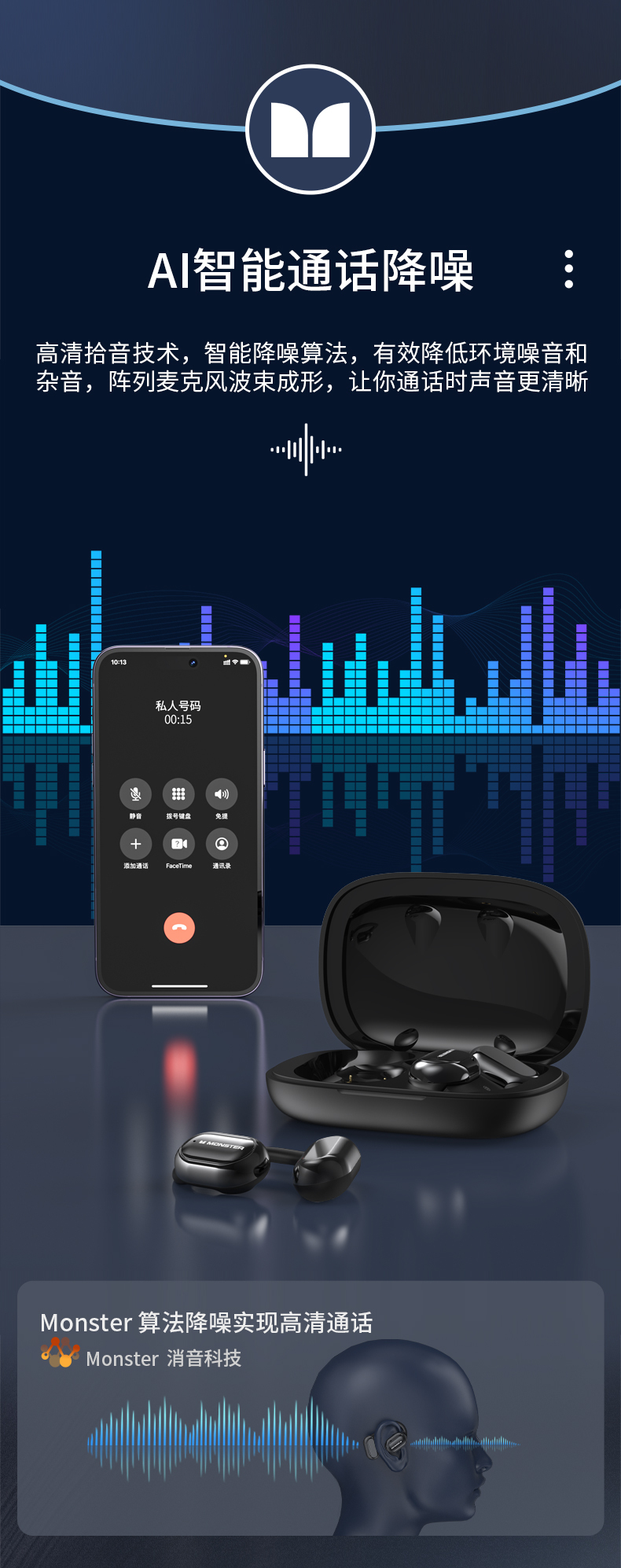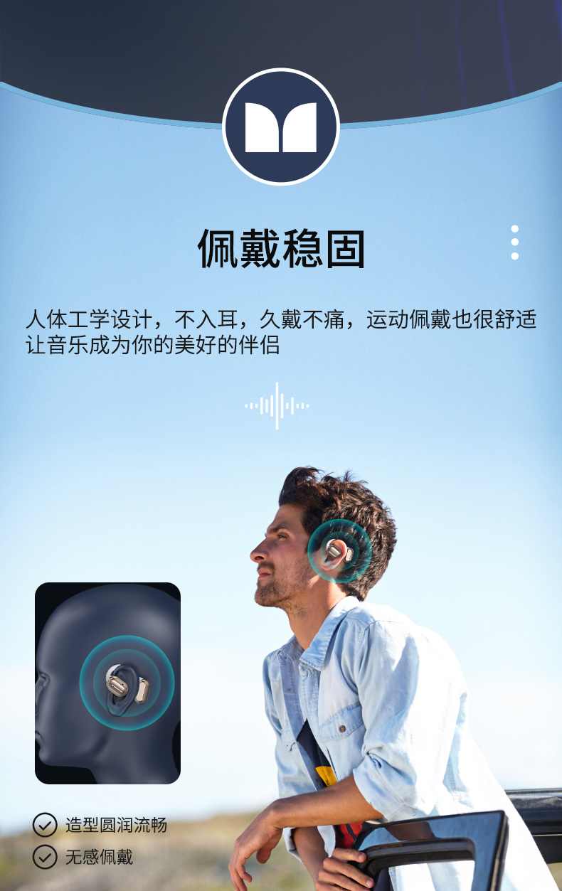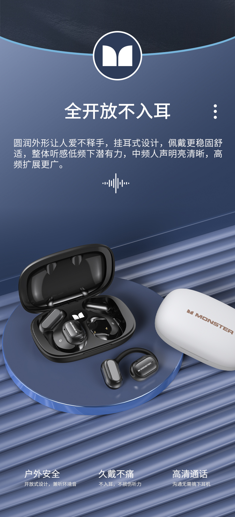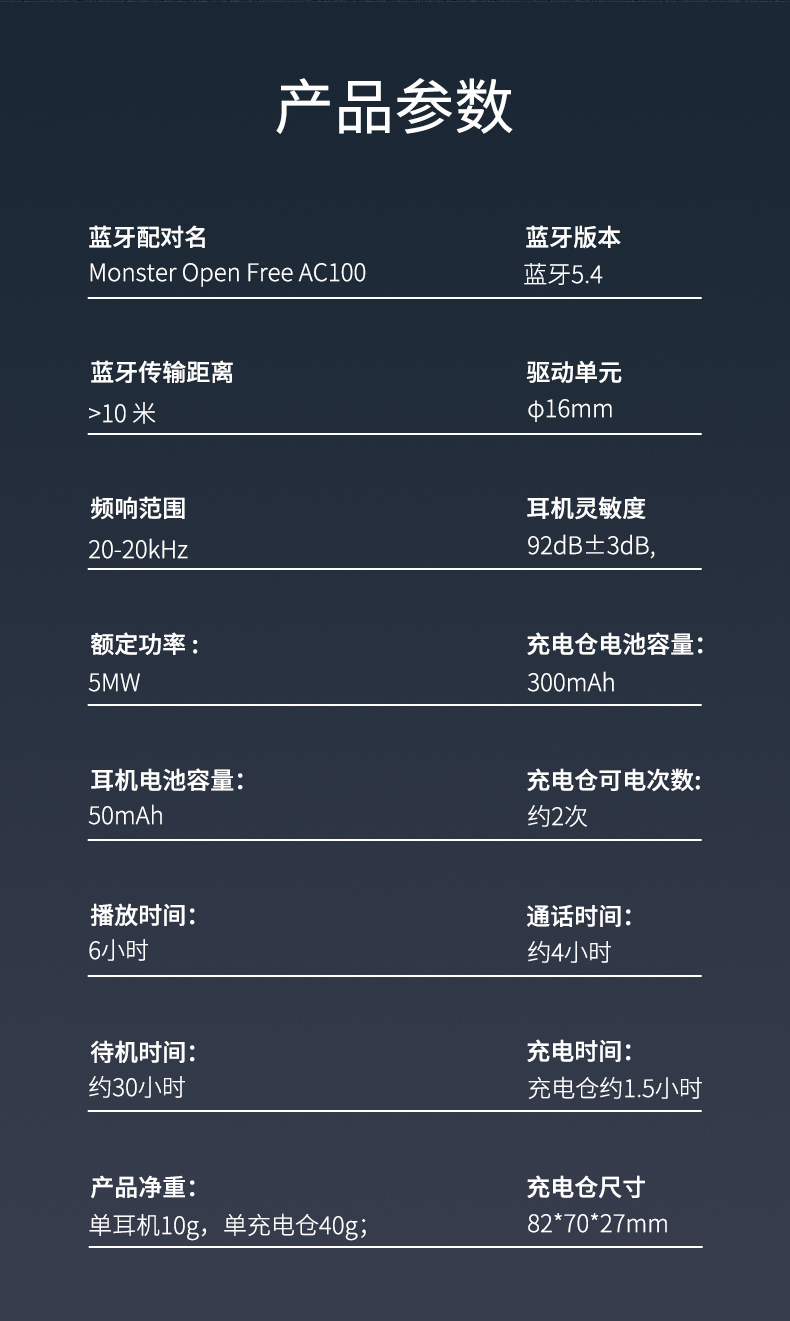 魔声Open Free AC100气传导耳机,16mm超大发声单元+复合钛金属振膜 震撼音质牛到爆佩戴牢固久戴不痛智能通话降噪、30h超长续航