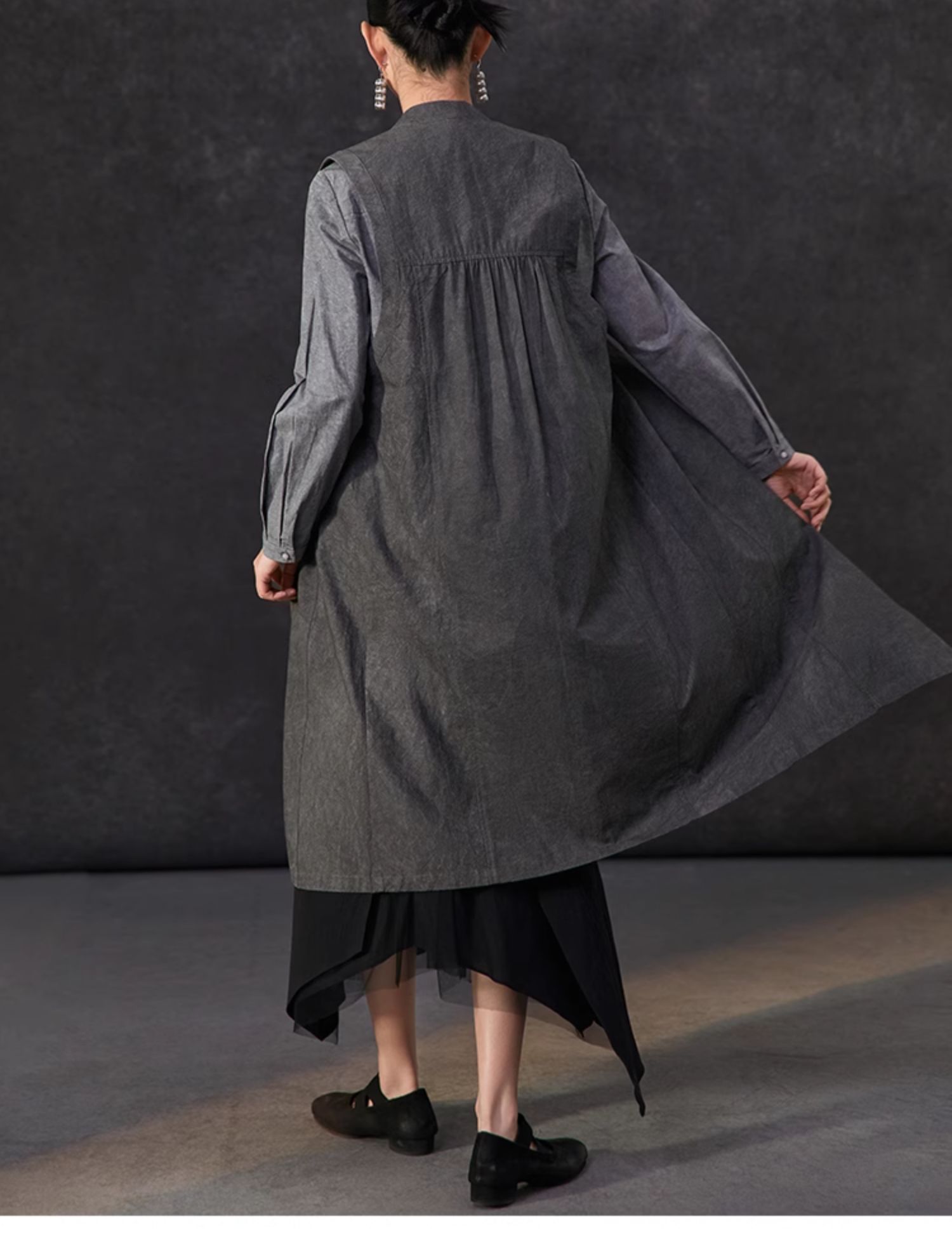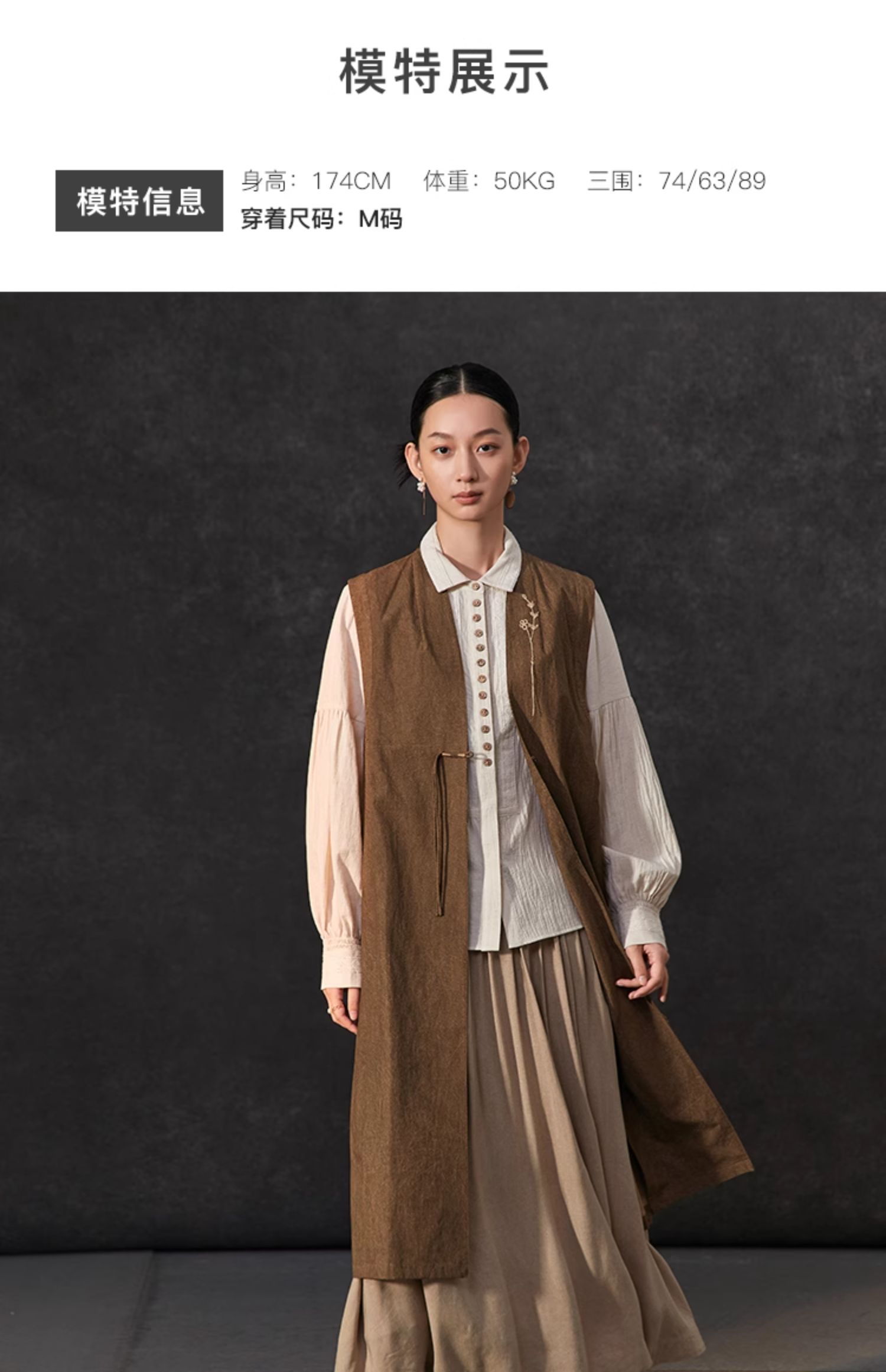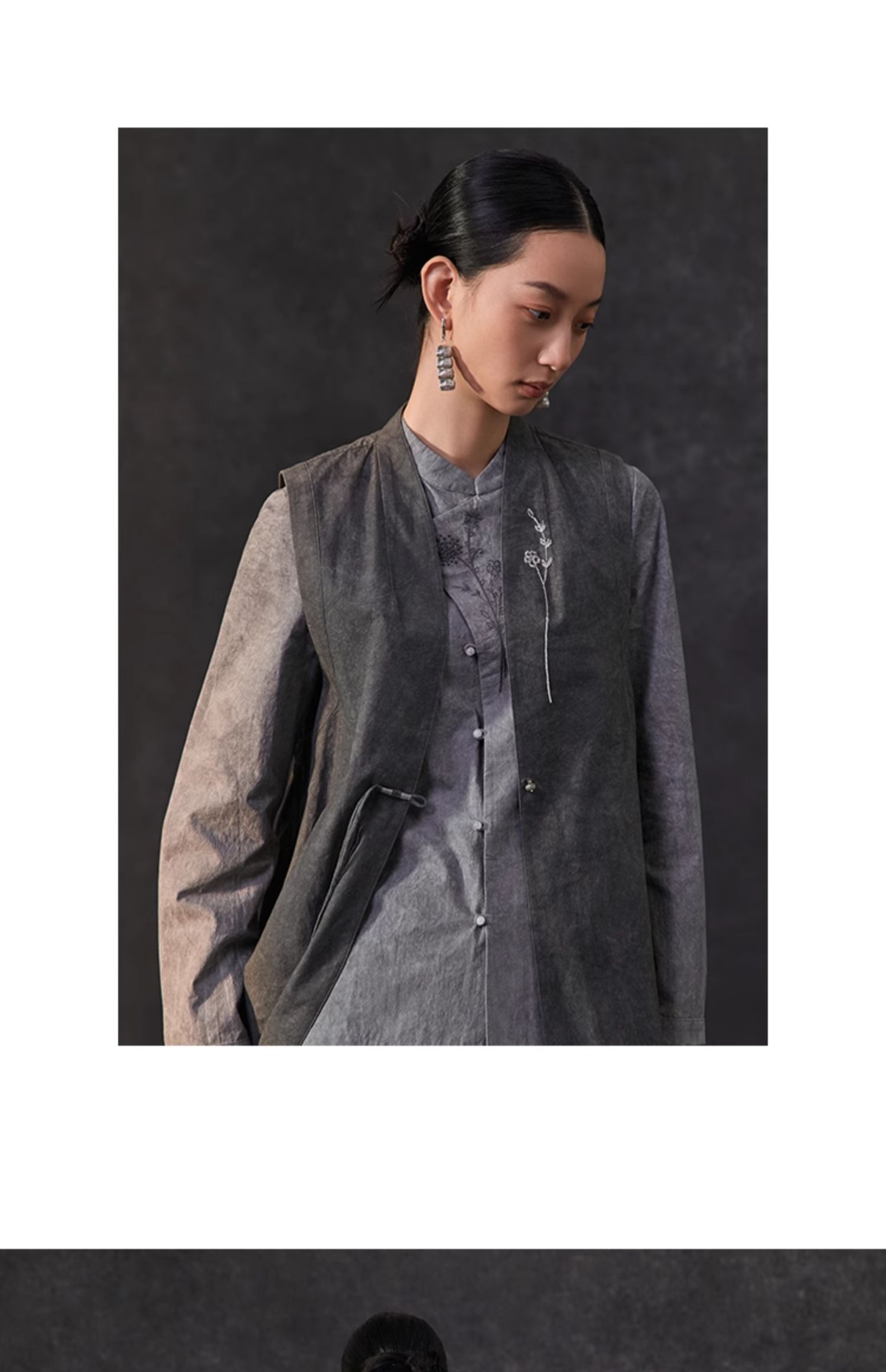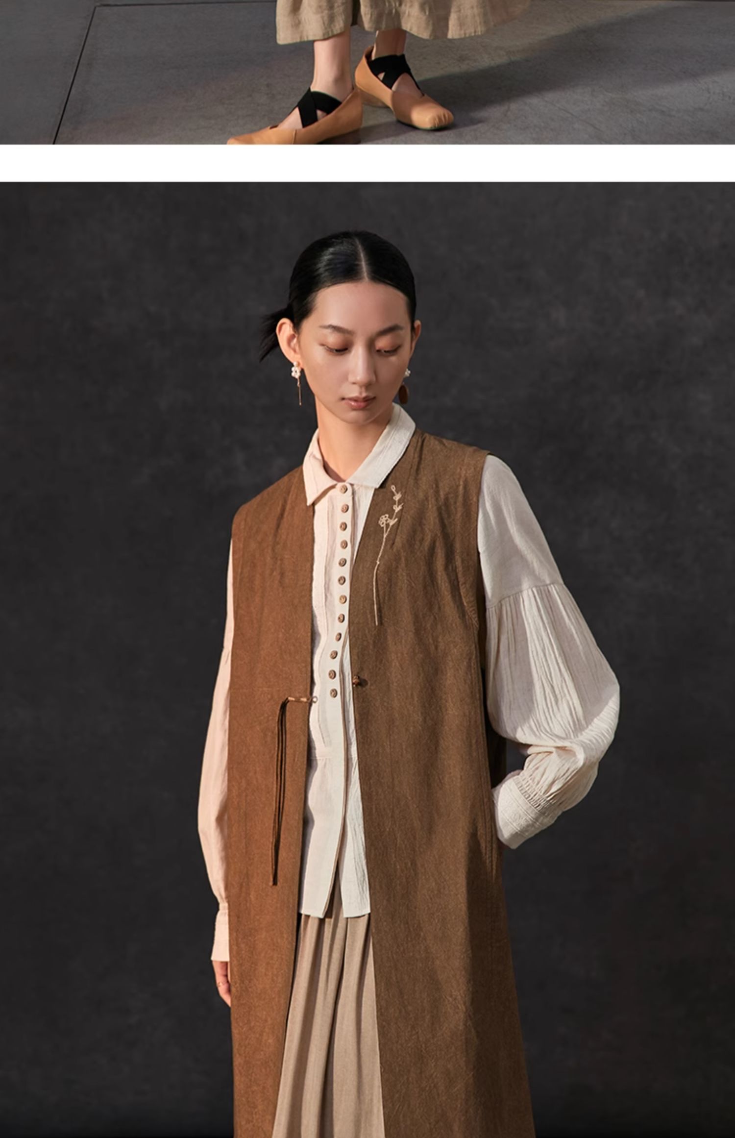 Famecoco新中式国风盘扣刺绣长款马甲女无袖背心马夹FAC1CA002