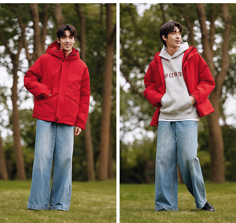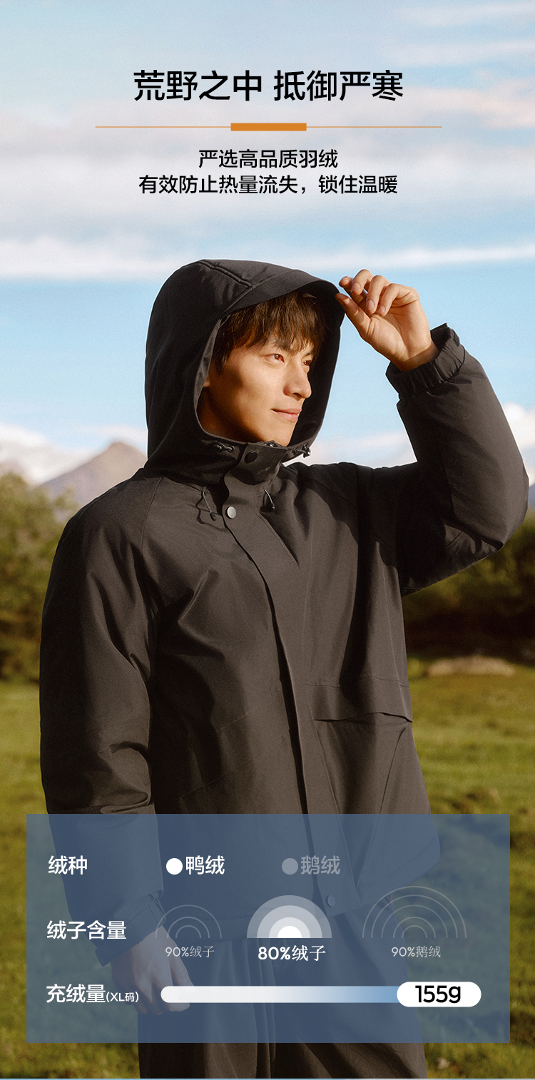 森马羽绒服男中长款冬新款防雨防污防油防风宽松连帽外套百搭