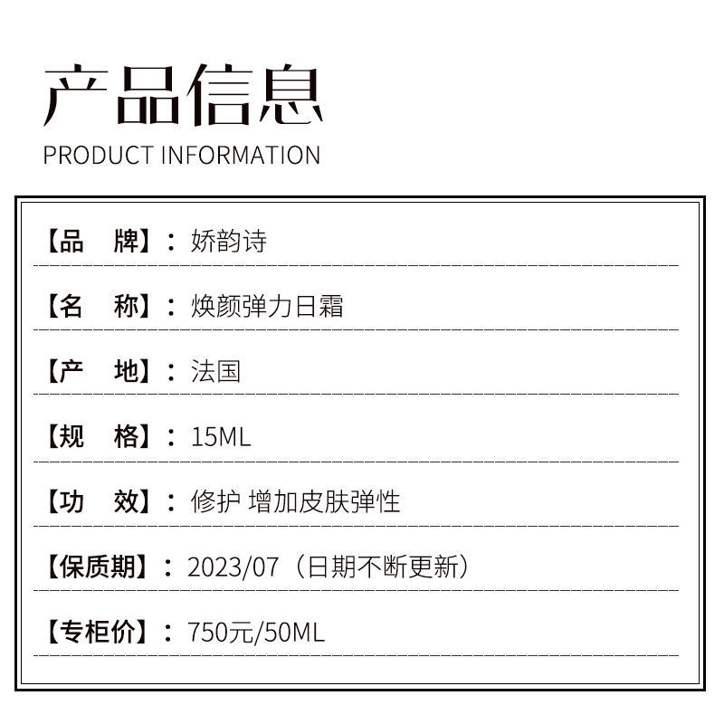 【爆款超低价预售 急单慎拍】娇韵诗焕颜紧致弹力日霜15ml 弹簧面霜法令纹清爽型 中小样 23年