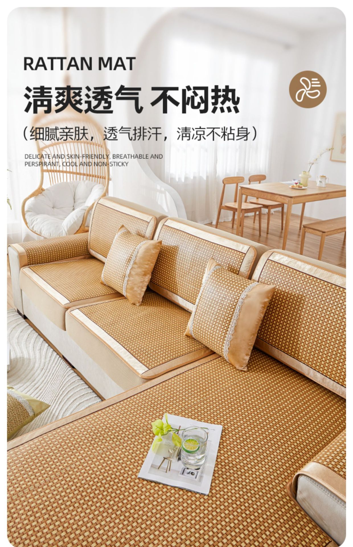 藤席沙发罩 夏季凉席全包万能套弹力通用型防尘防滑沙发垫笠