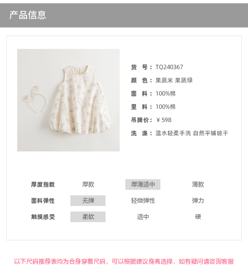 【马克珍妮 芦芙】2024年夏装女童清新果蔬纯棉花苞背心裙240367