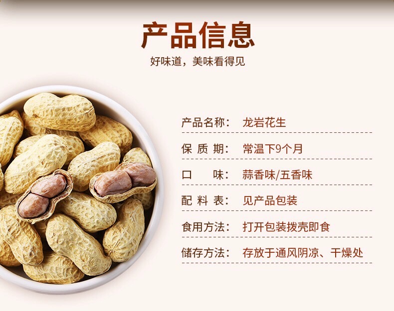 【香脆可口颗粒饱满!龙岩花生】花生米,蒜香味五香水煮花生米带壳白晒干炒货熟散装福建零食放心吃进口中老年健康