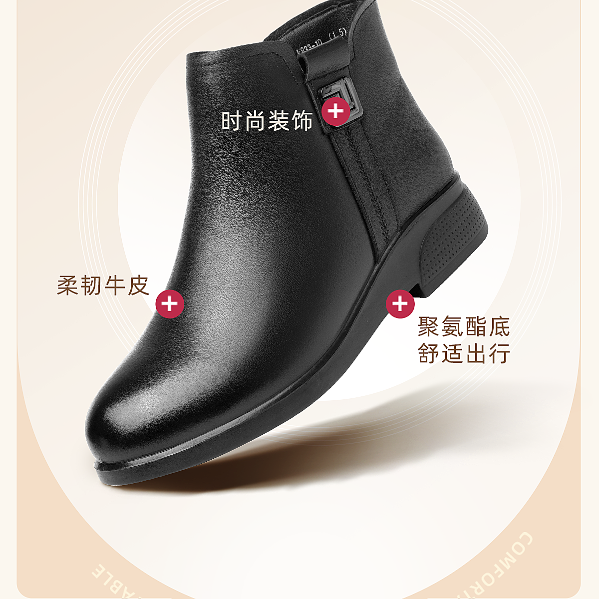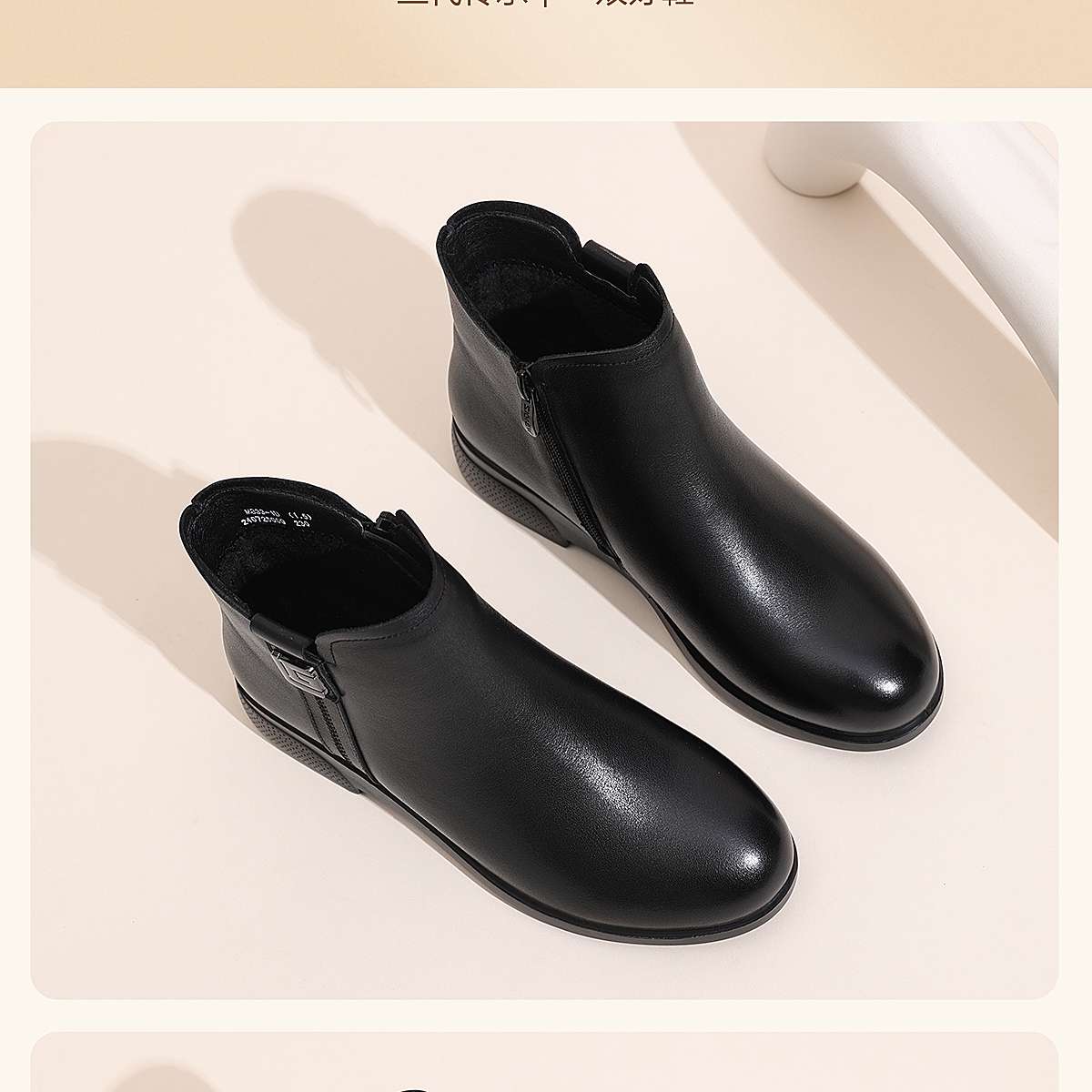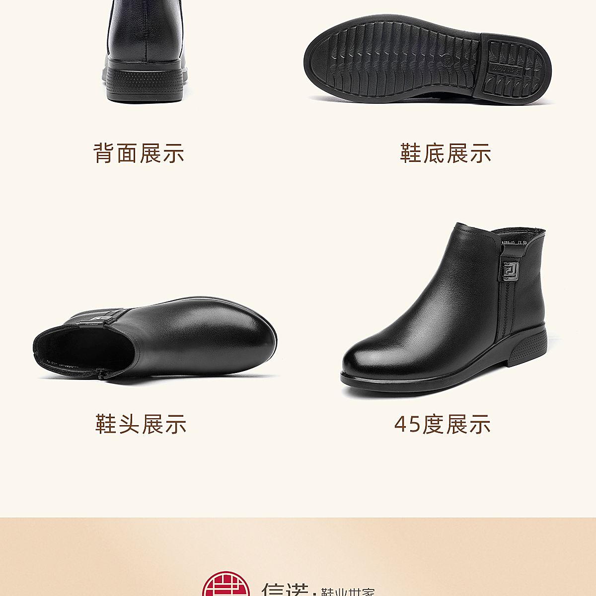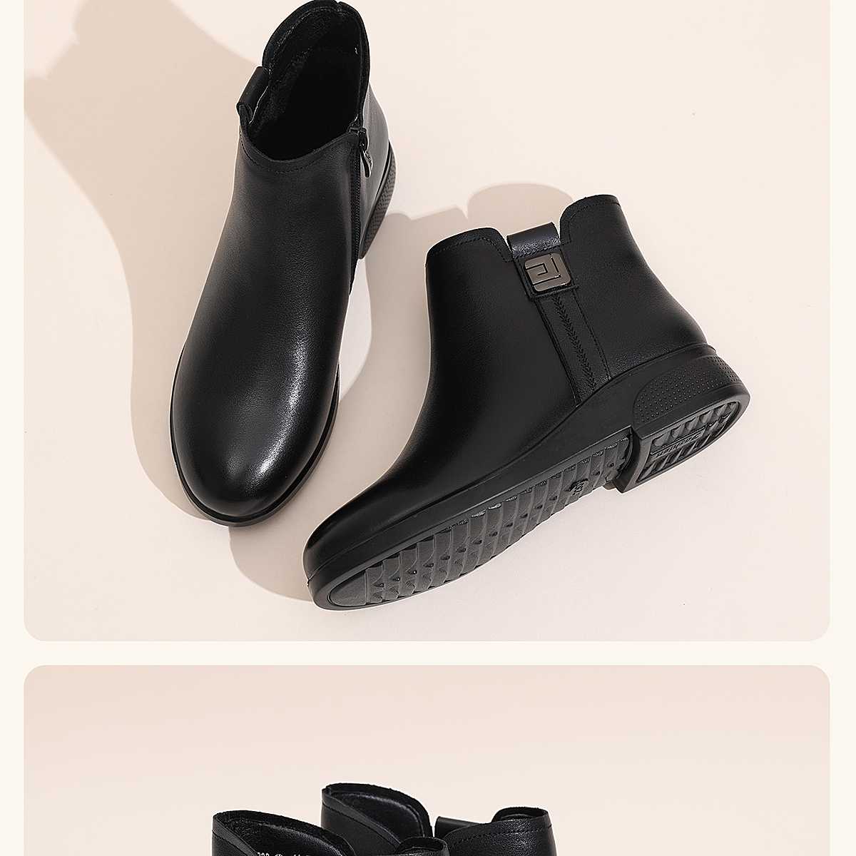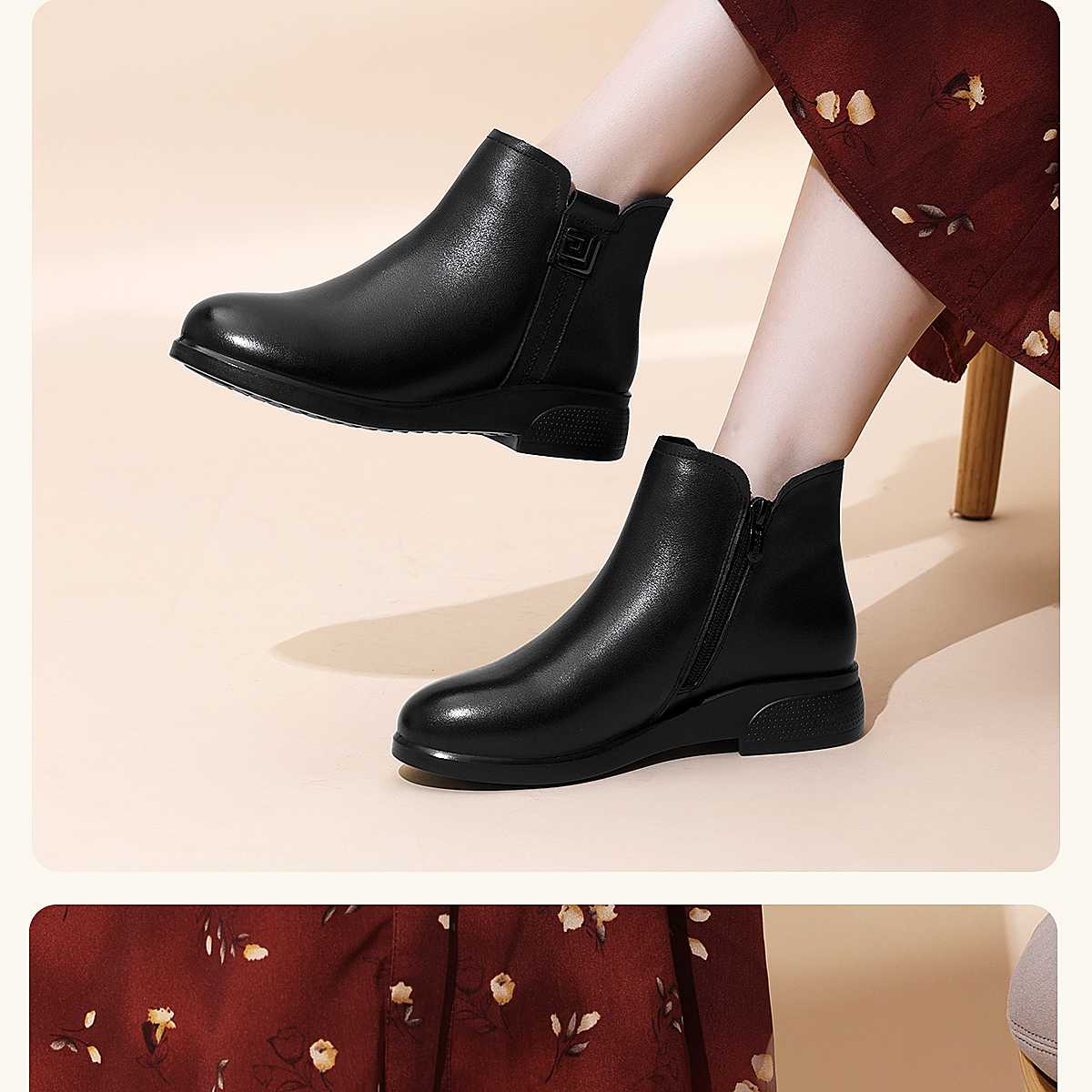 信诺真皮妈妈鞋平底加绒加厚高帮棉鞋中老年女士短靴2025冬季新款5M312-1H