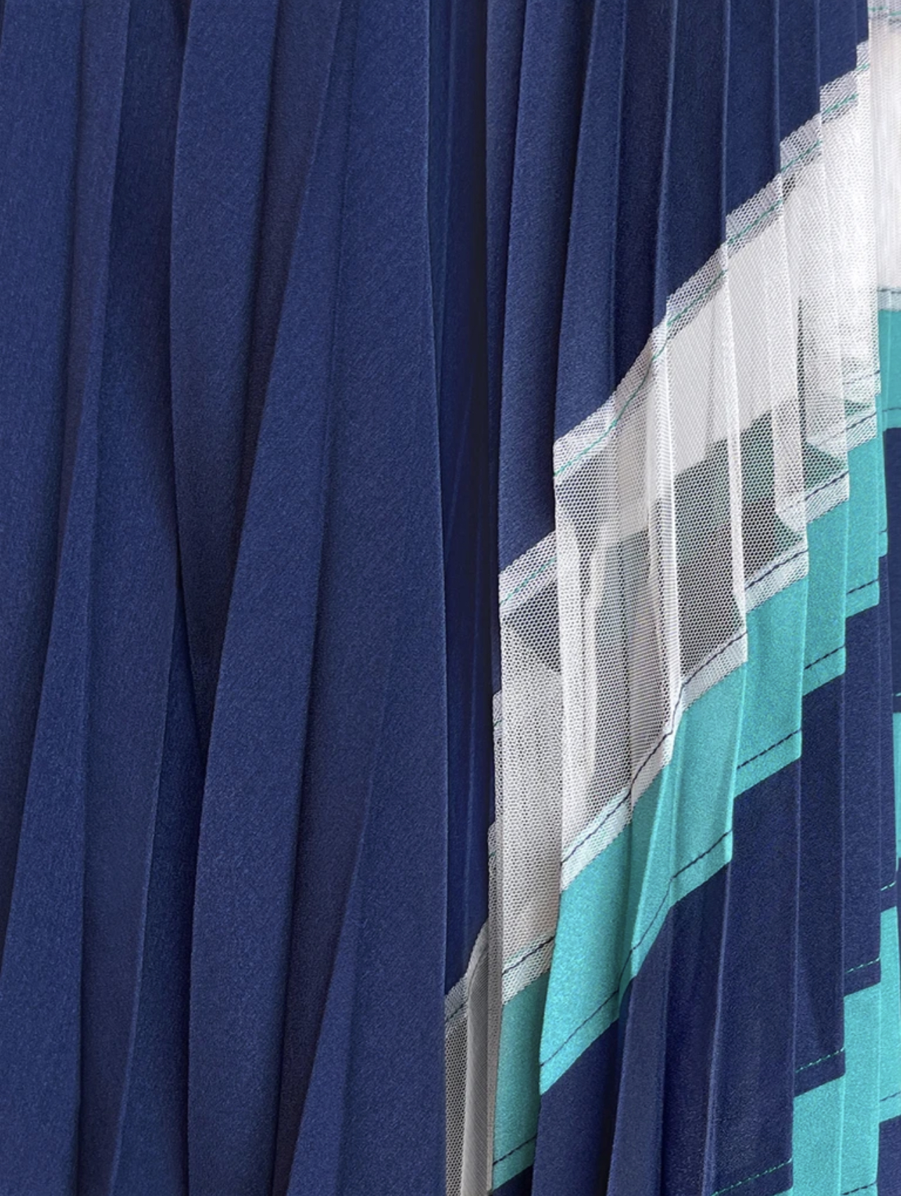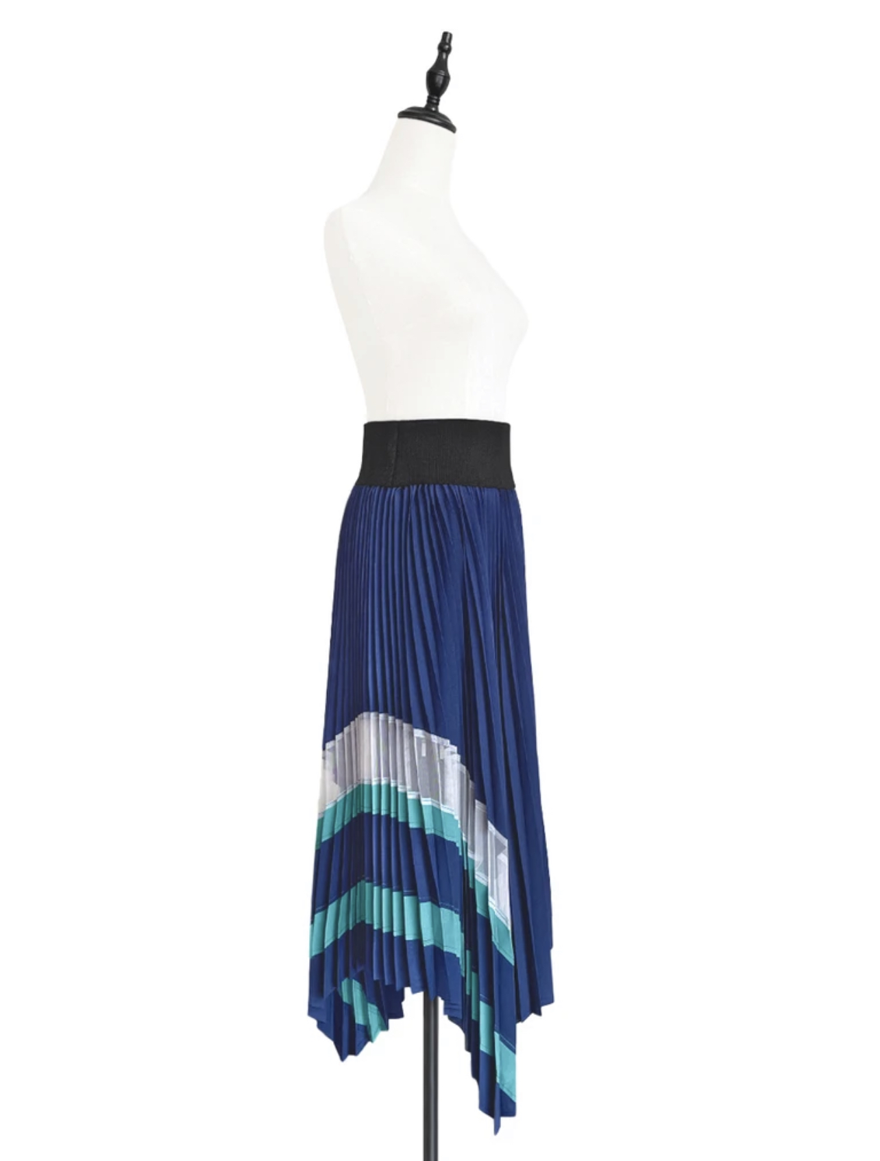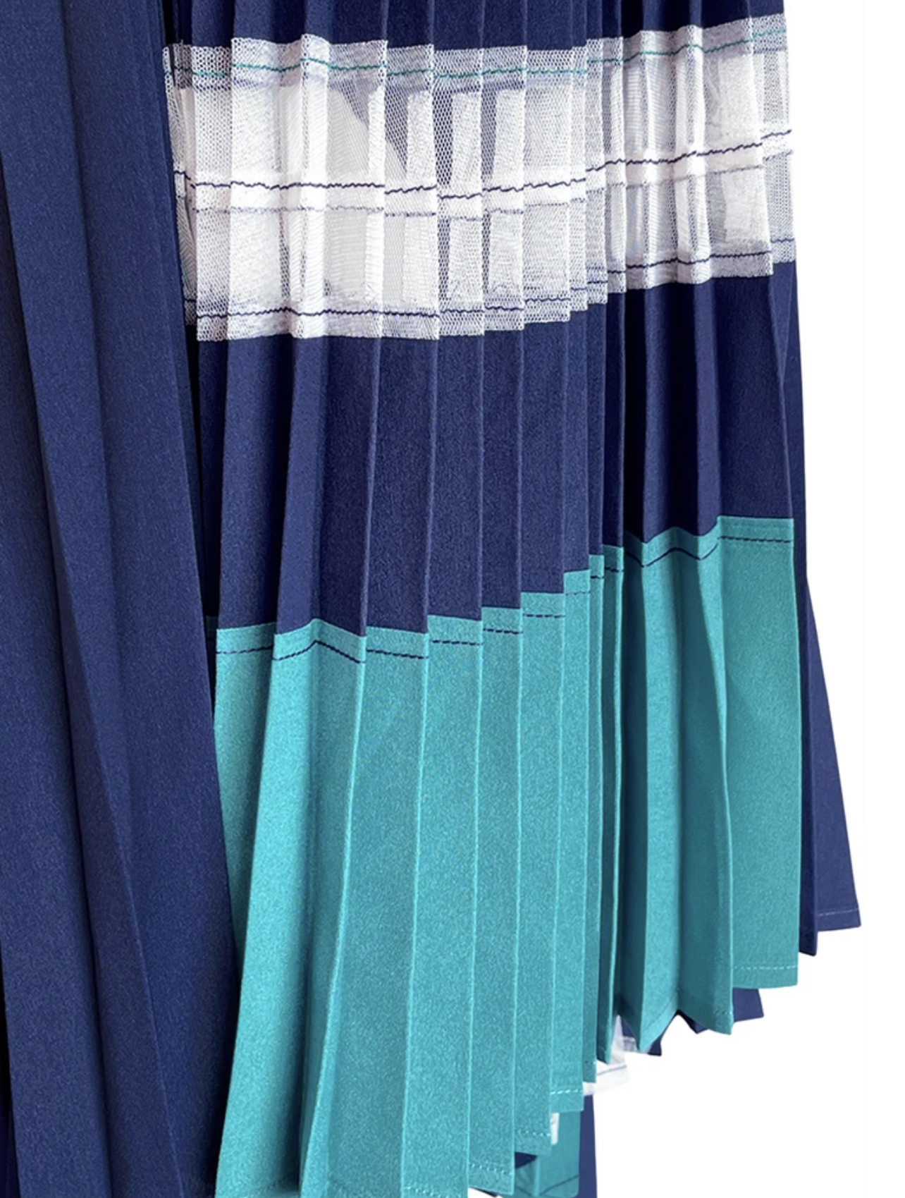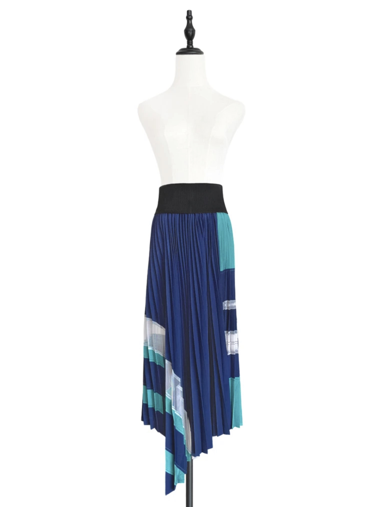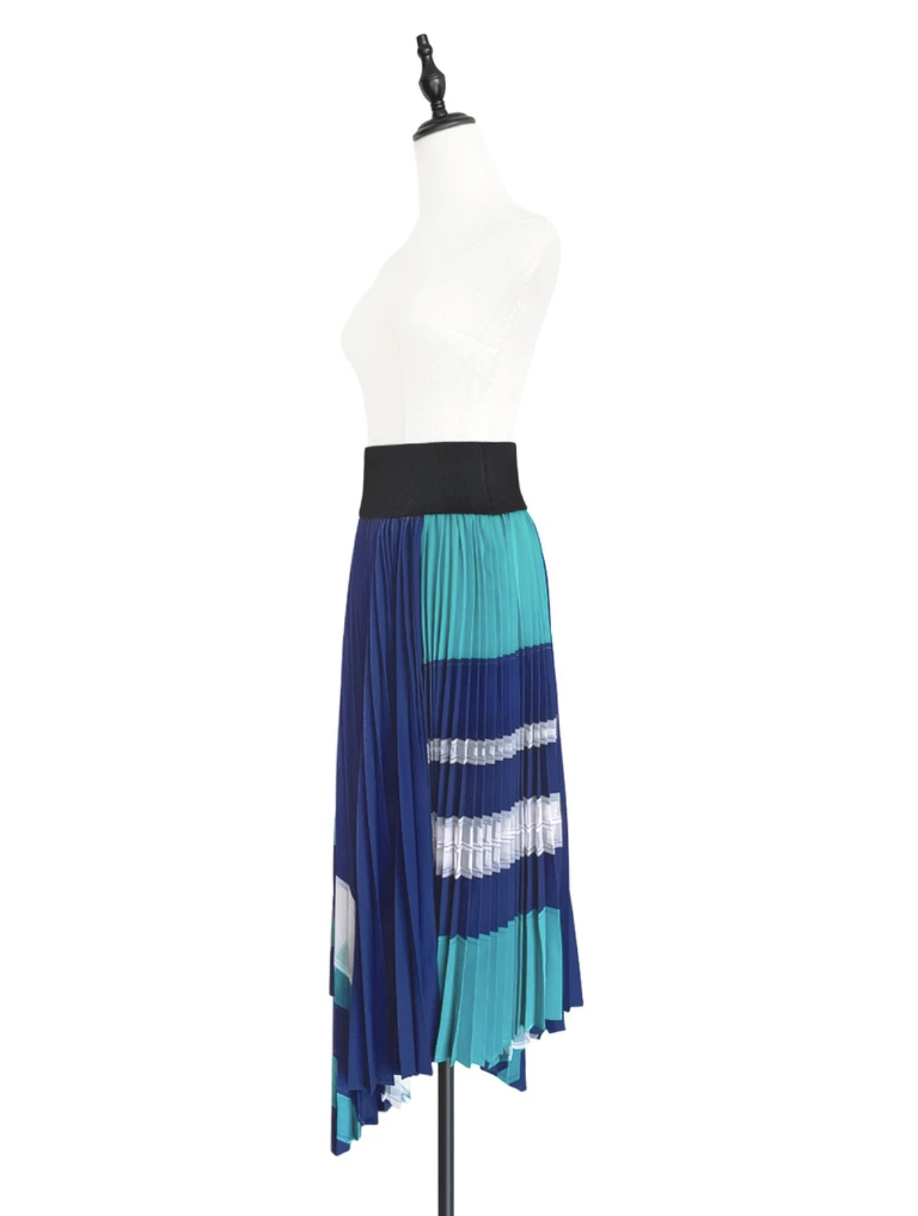 TYNVIE 不对称裙摆百褶拼接半身长裙-蓝绿色