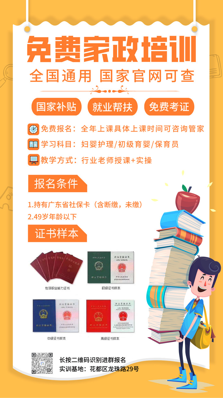 免费学习|月嫂/催乳/小儿推拿/保洁员/汤养指导师,花都考试证书全行业通用