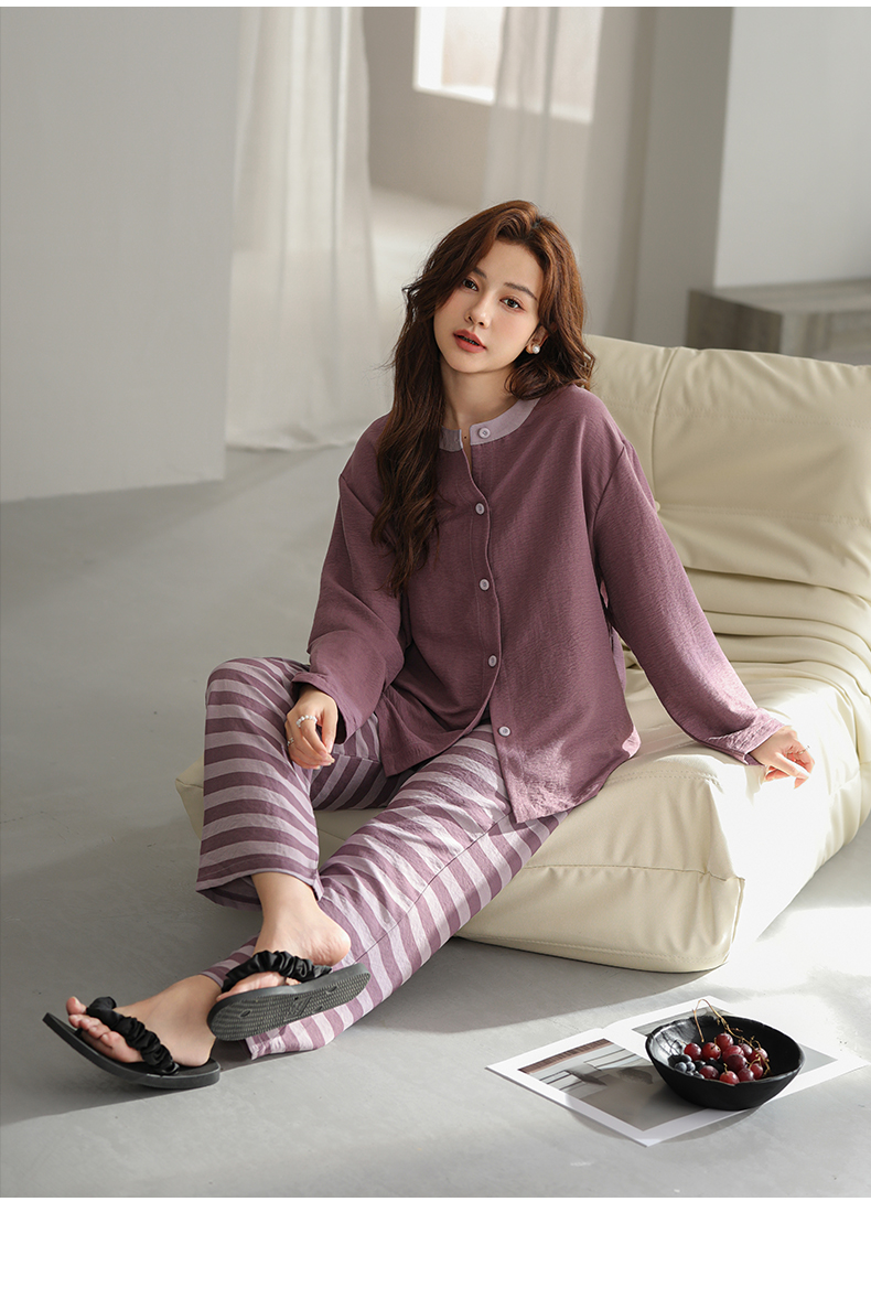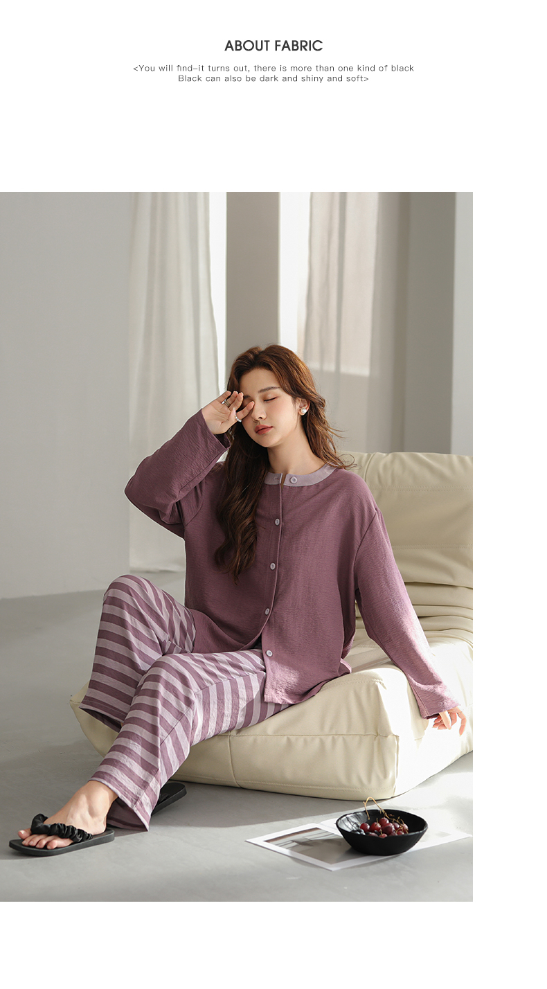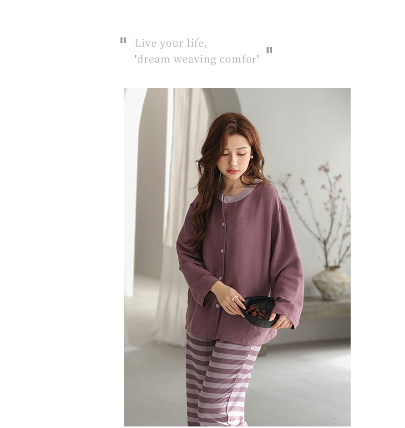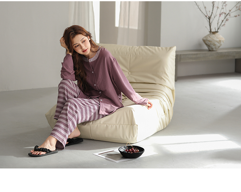 可人儿原创设计新款泡泡绵女士睡衣春秋长袖时尚可外出家居服套装