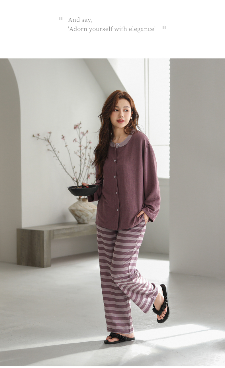 可人儿小众设计师新款奥力绵女士睡衣春秋长袖时尚可外出家居服