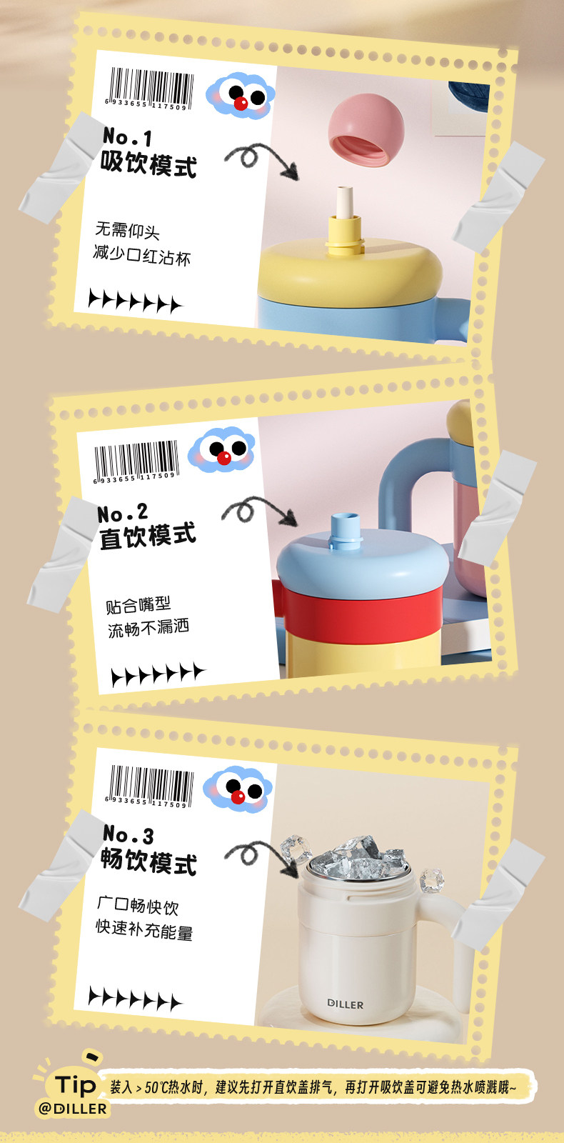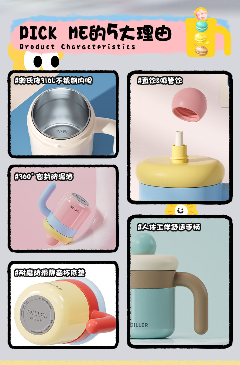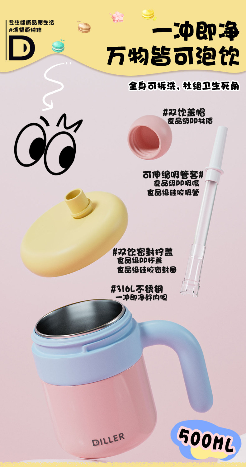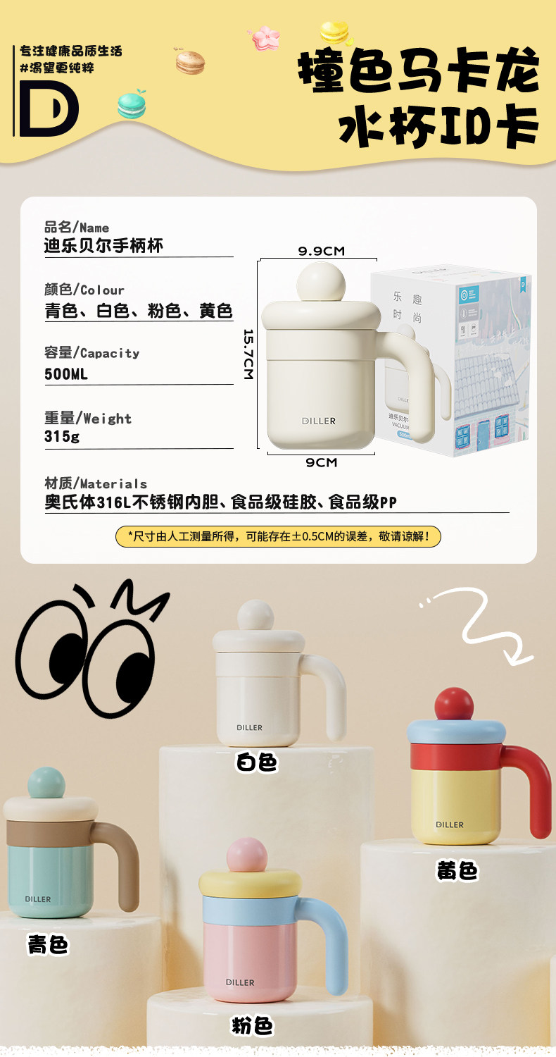 迪乐贝尔自然色D9326-500ml办公保温杯4色