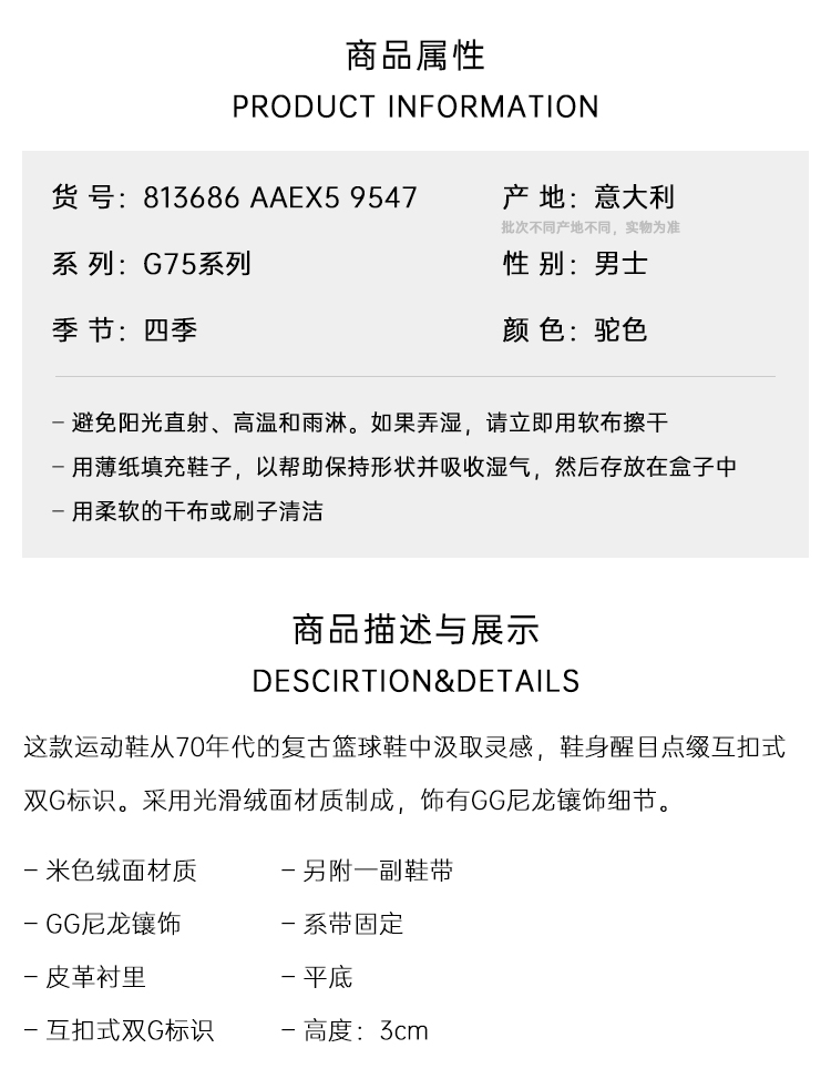 GUCCI 古驰 男士 G75系列 休闲运动鞋 驼色 813686 AAEX5 9547