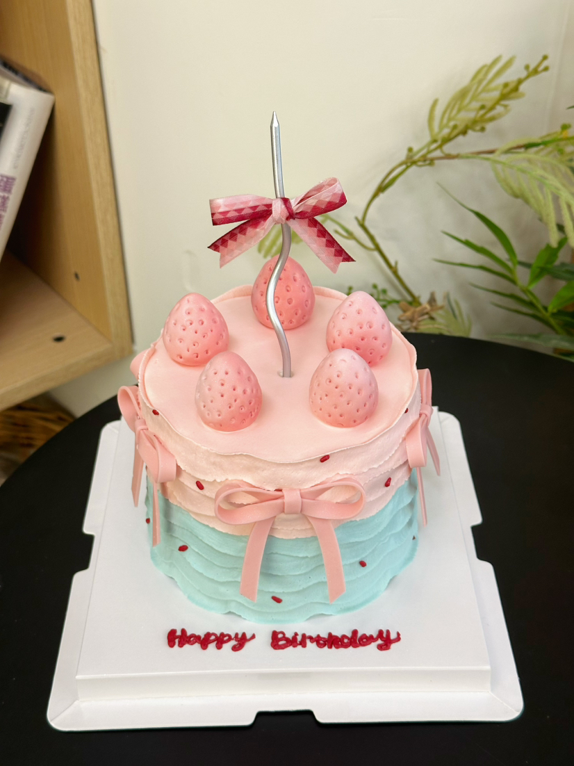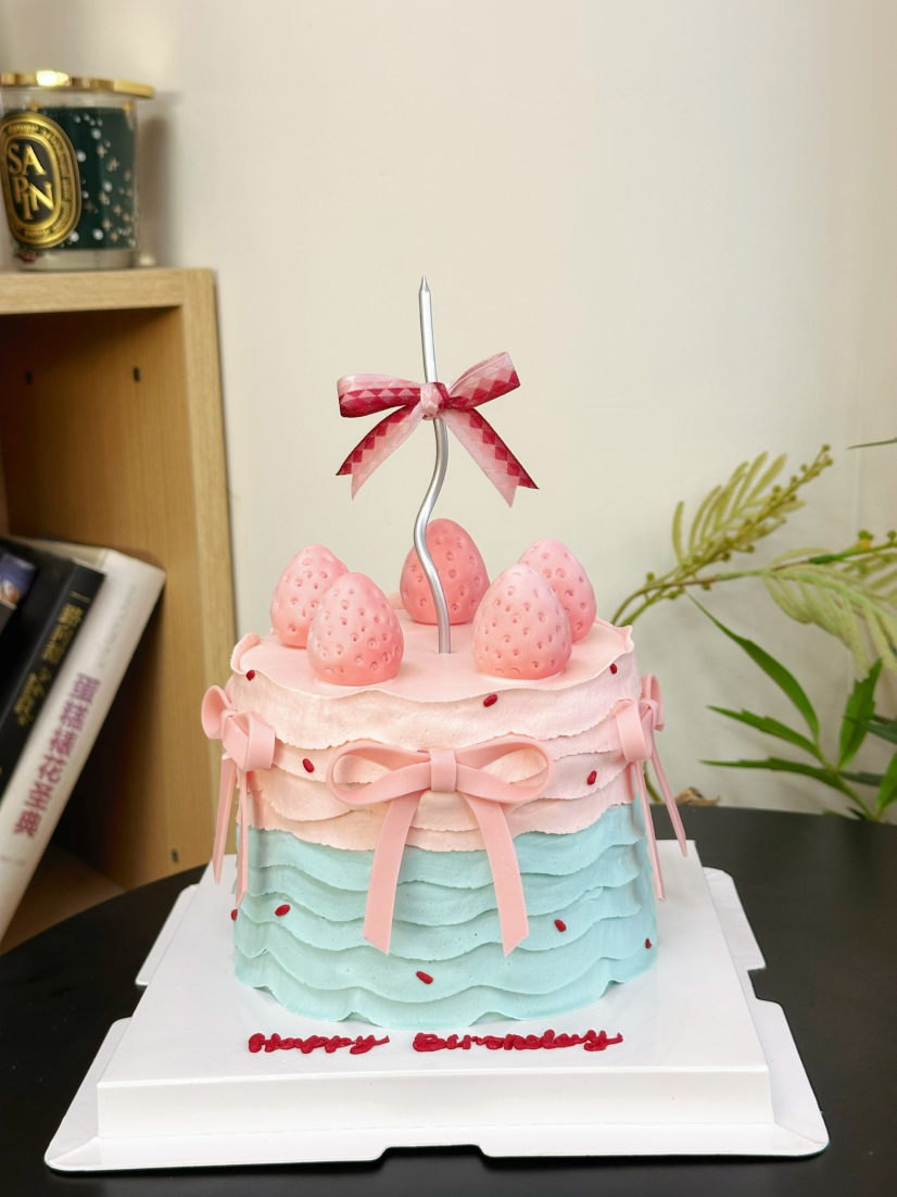 浪漫莓莓(小草莓蛋糕)全部装饰可食用,蜡烛上丝带,随机搭配