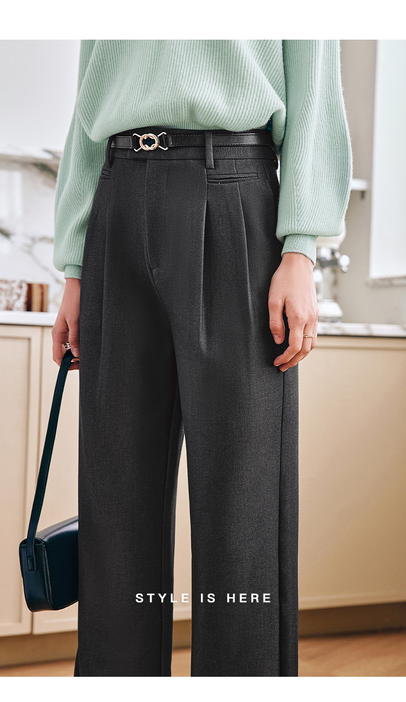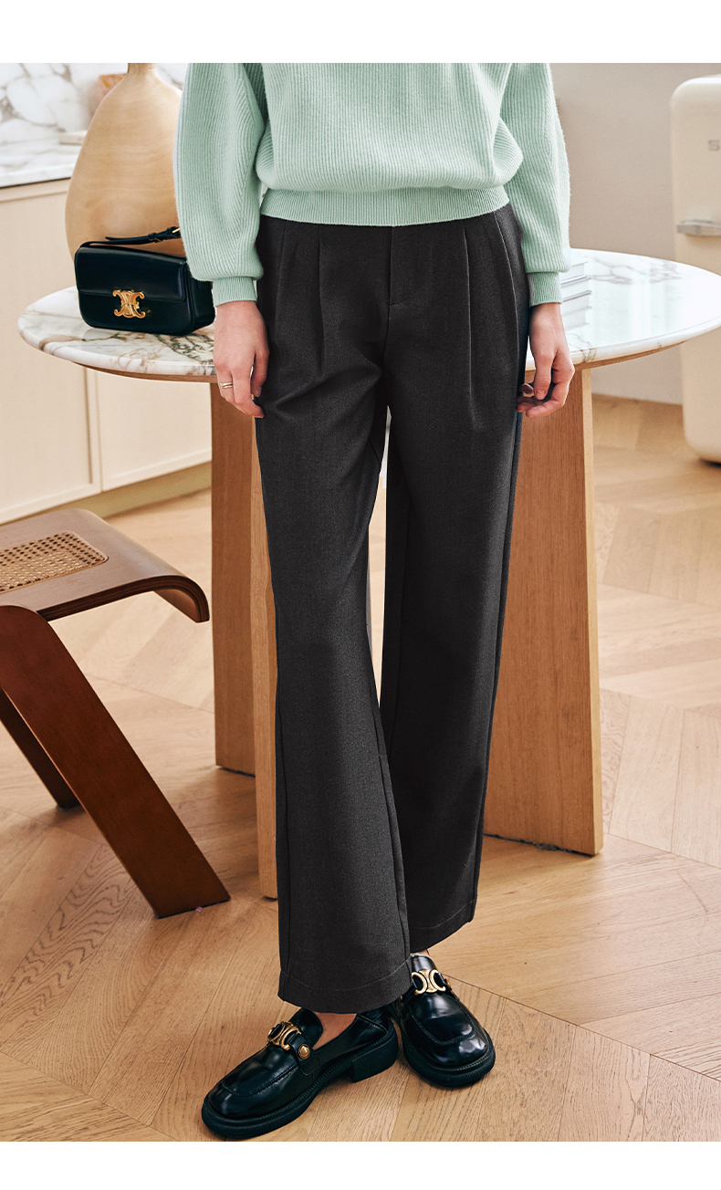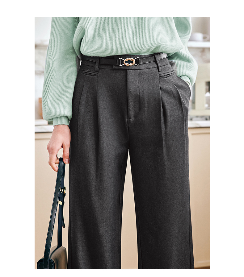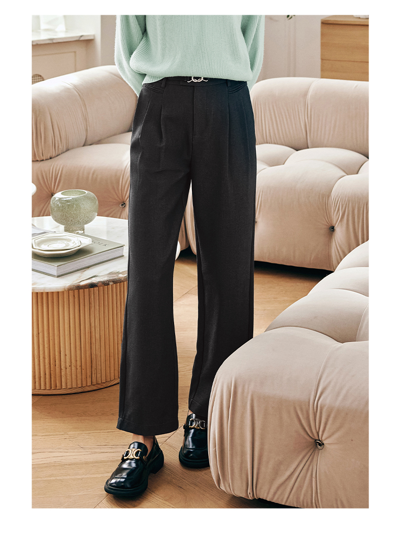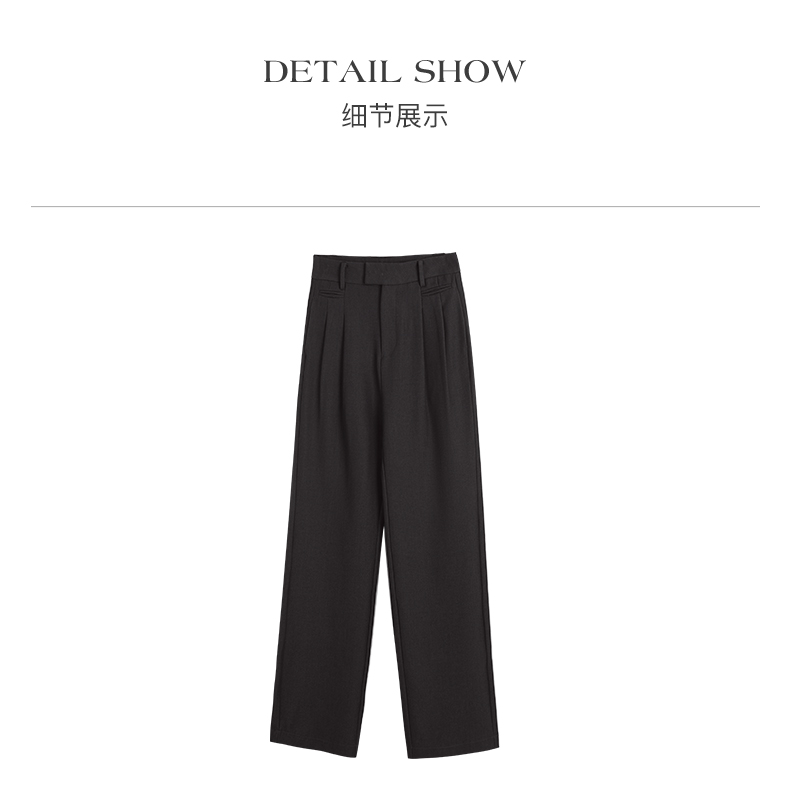 OLrain欧芮儿法式灰色休闲裤女夏季2023年新款高腰直筒阔腿西装裤