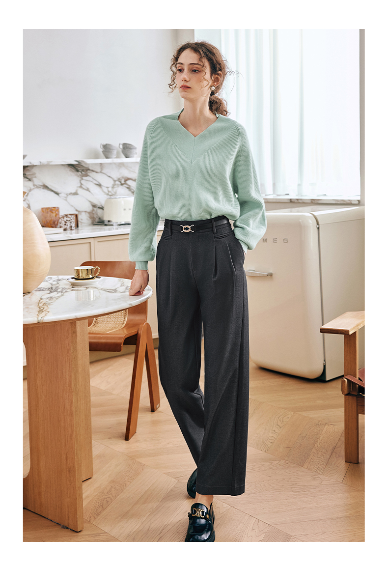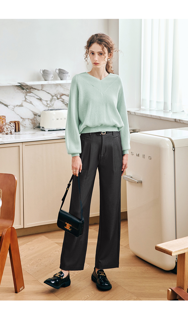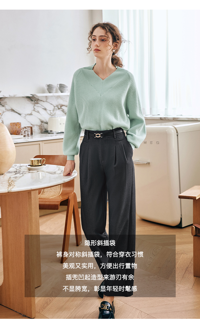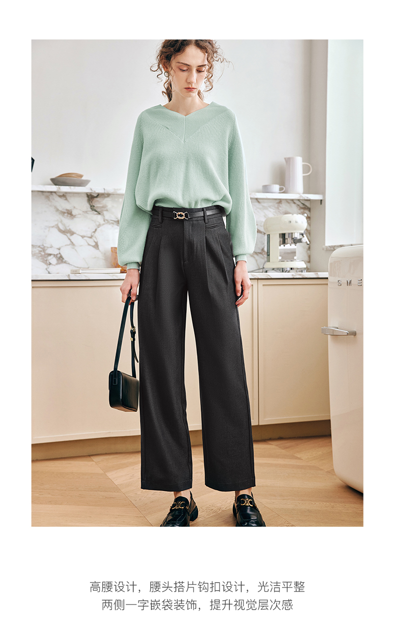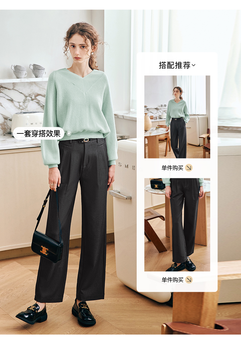 OLrain欧芮儿法式灰色休闲裤女夏季2023年新款高腰直筒阔腿西装裤