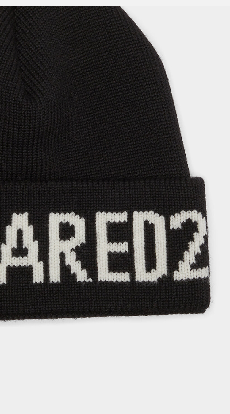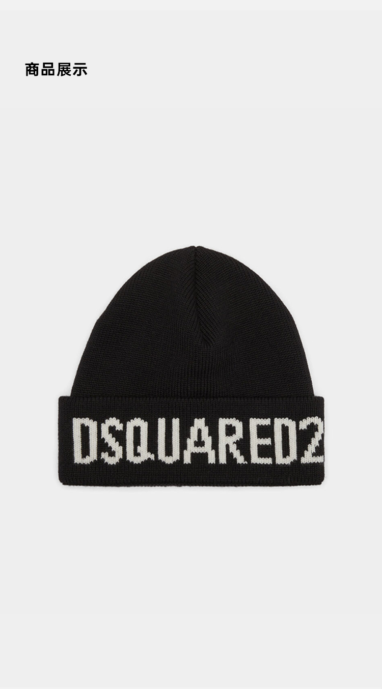 【一】DSQUARED2 男士字母徽标提花羊毛针织帽子 黑色 KNM0161 01W04328 2124