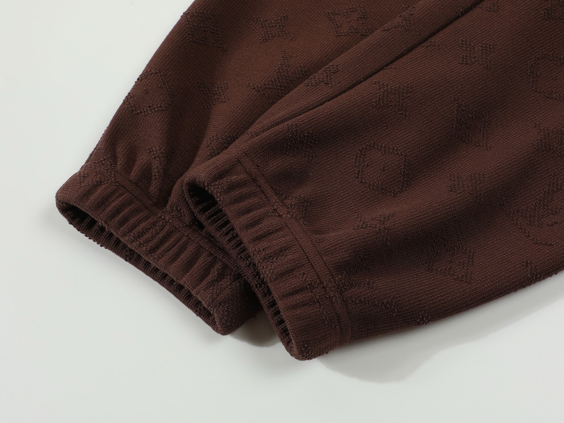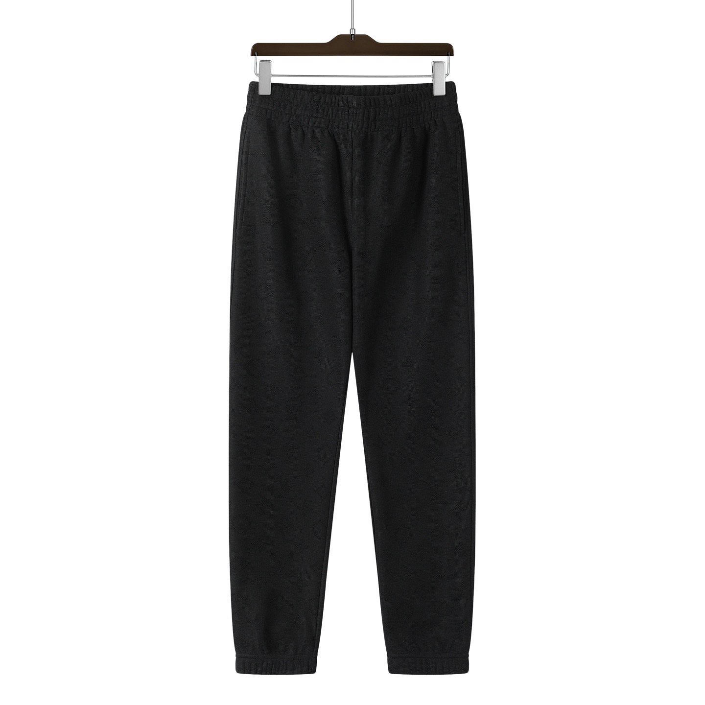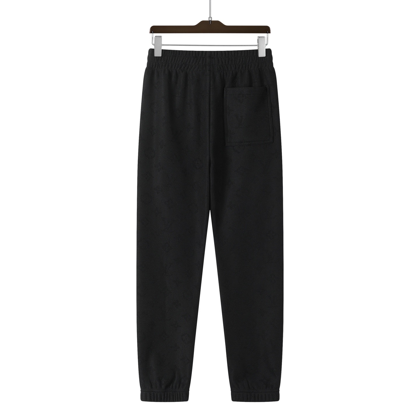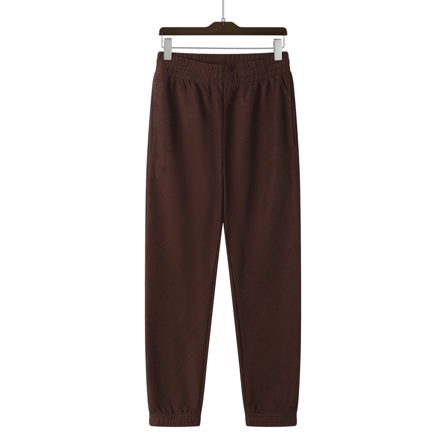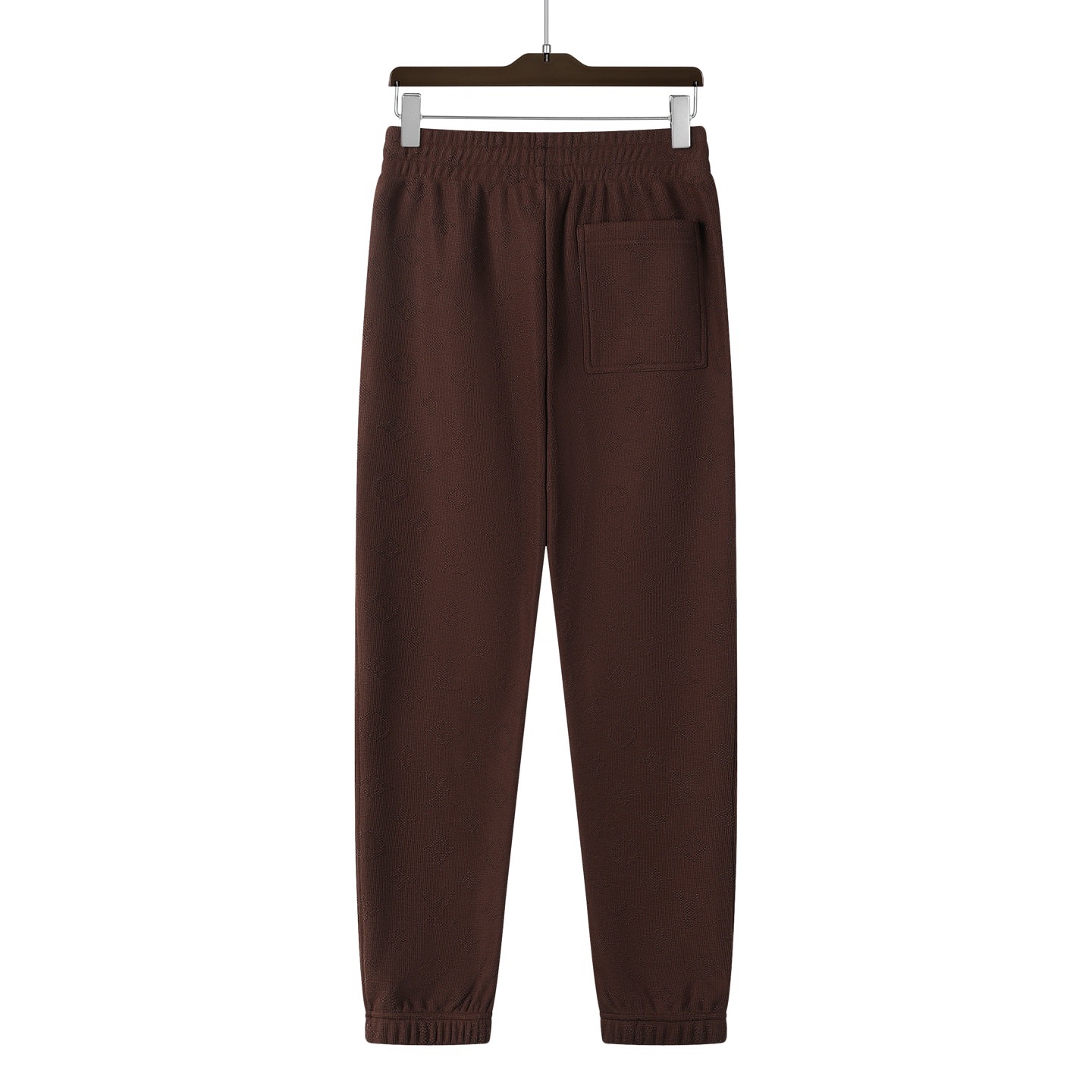 轻奢老花提花秋冬加绒休闲裤,腰部松紧+腰绳,有双侧兜+后兜。裤脚收口。