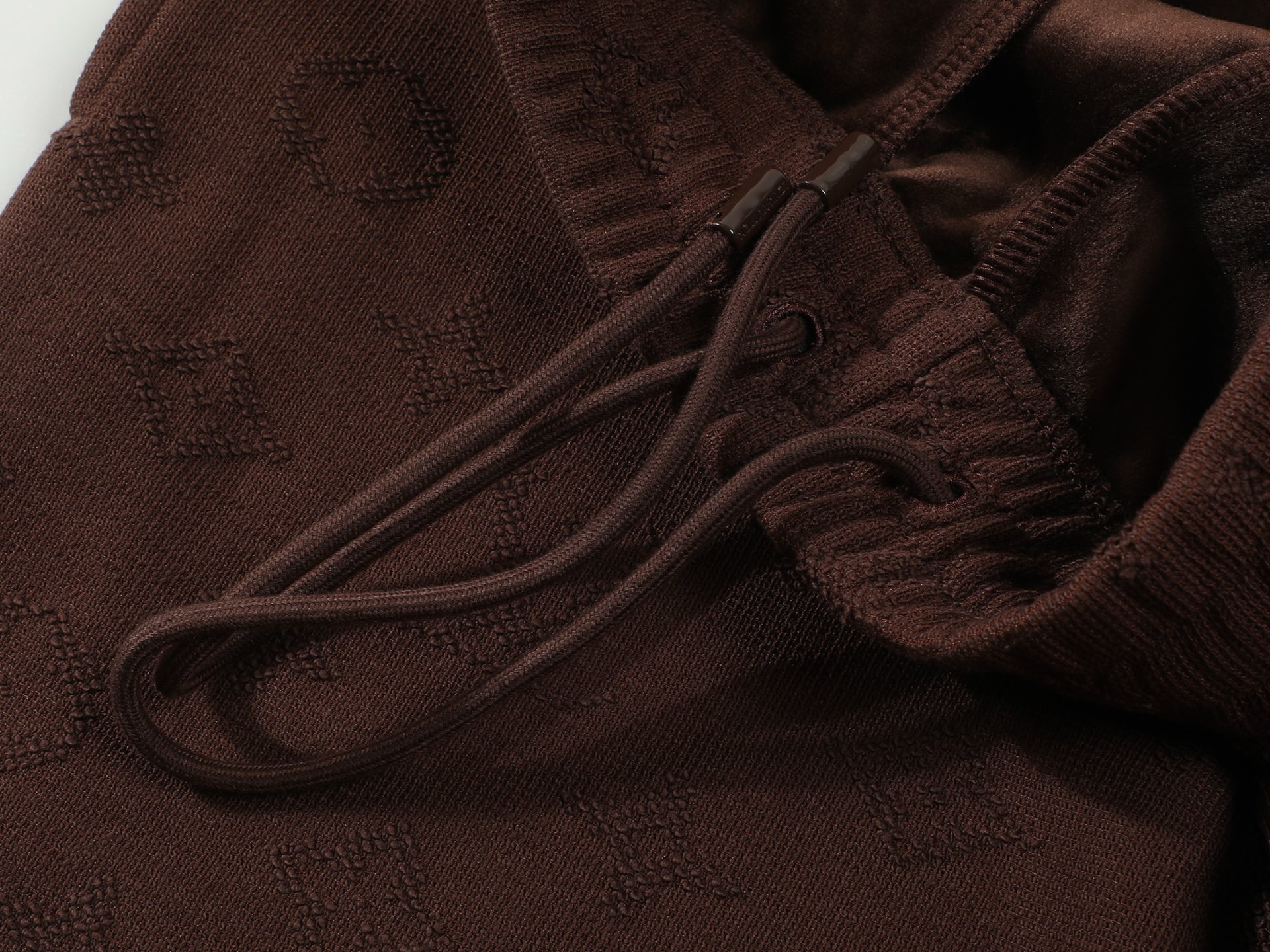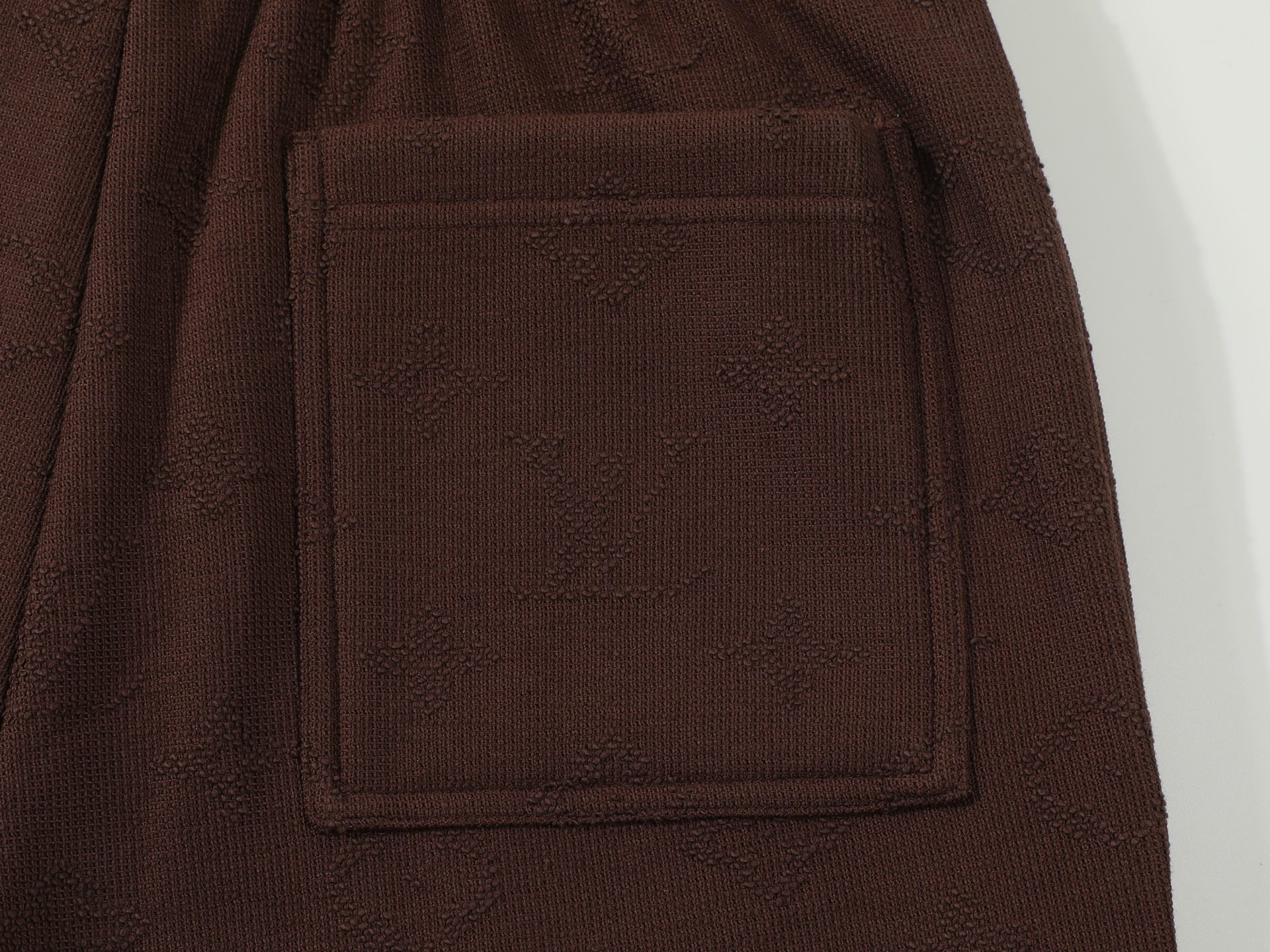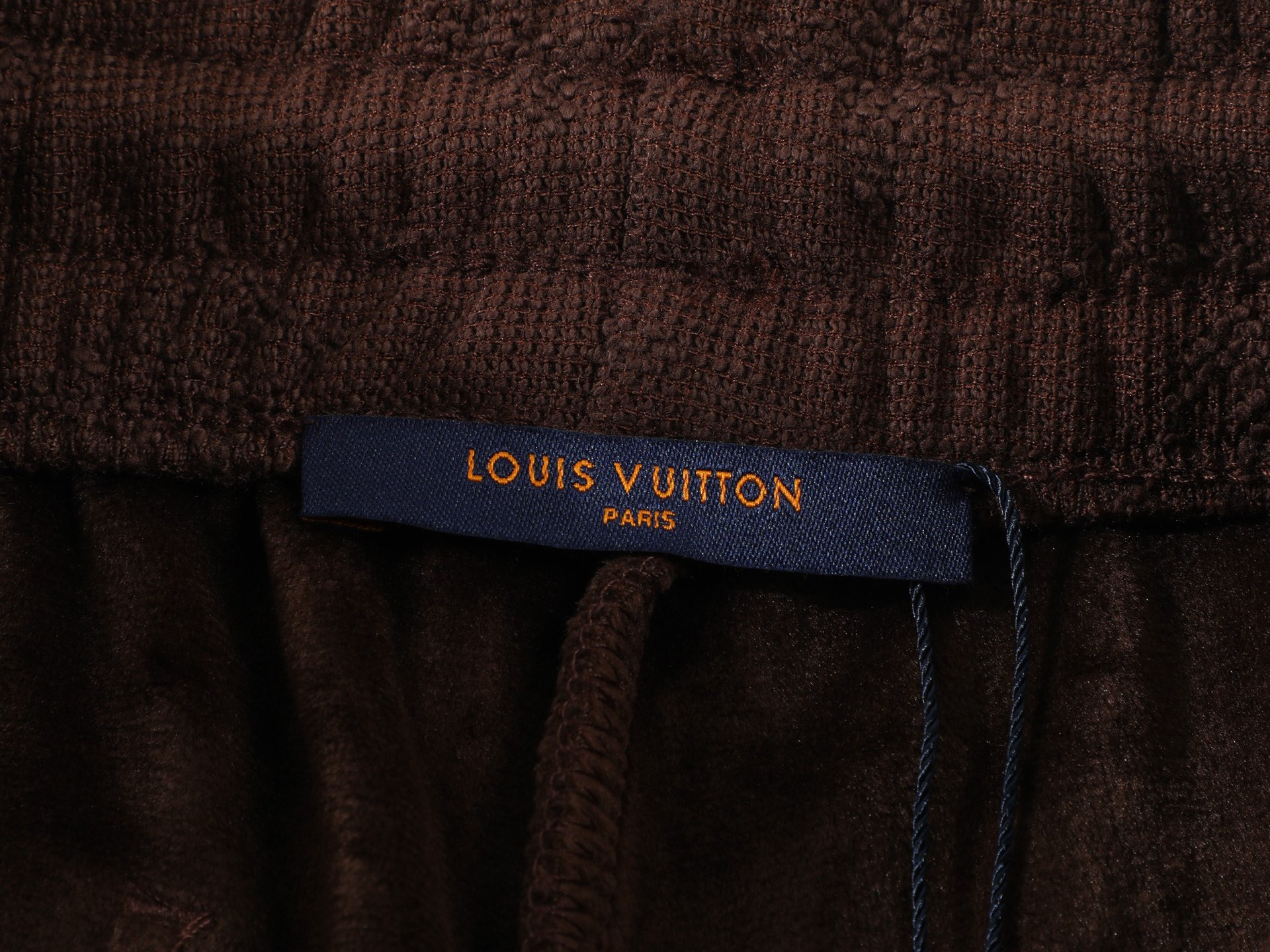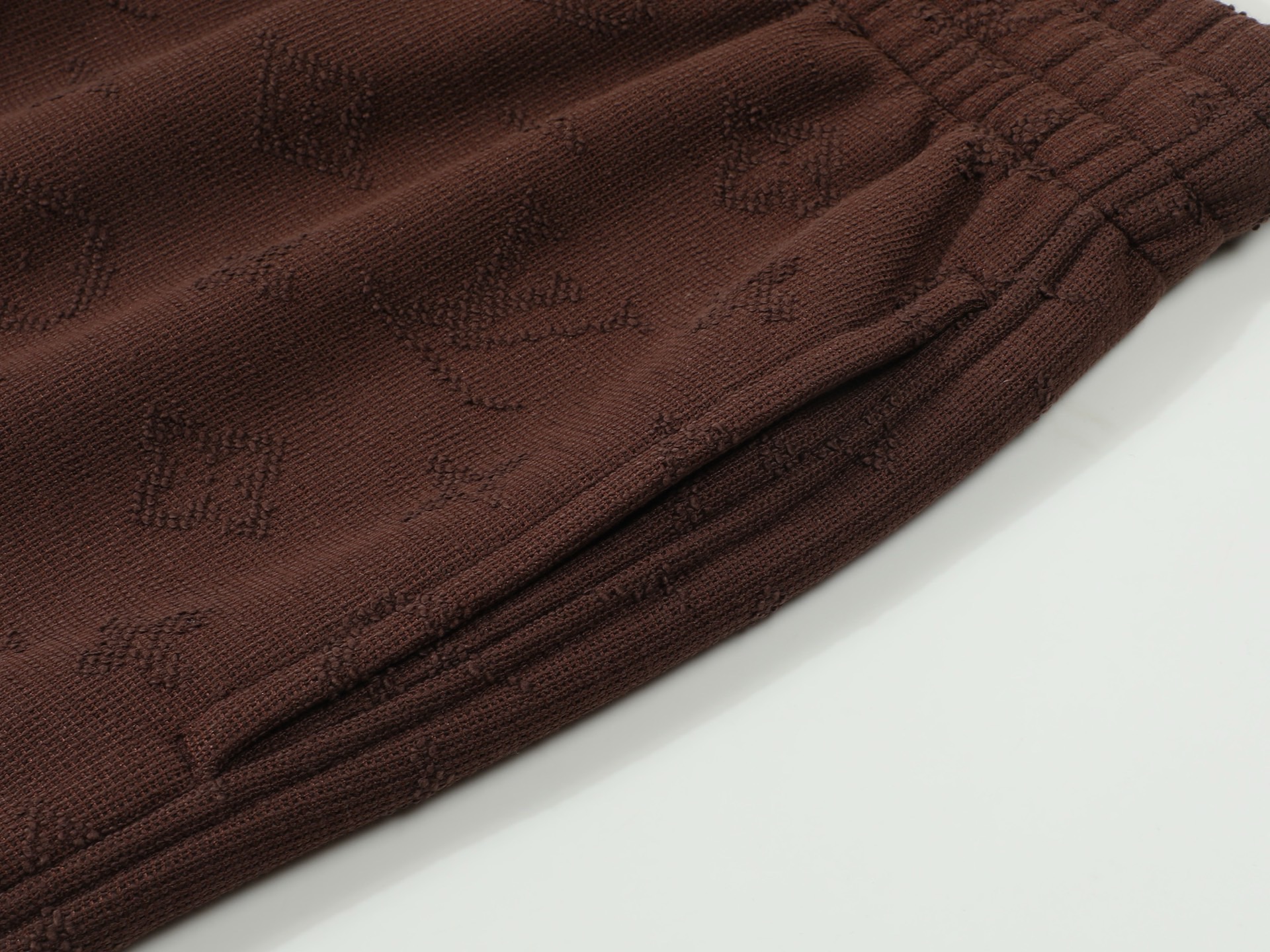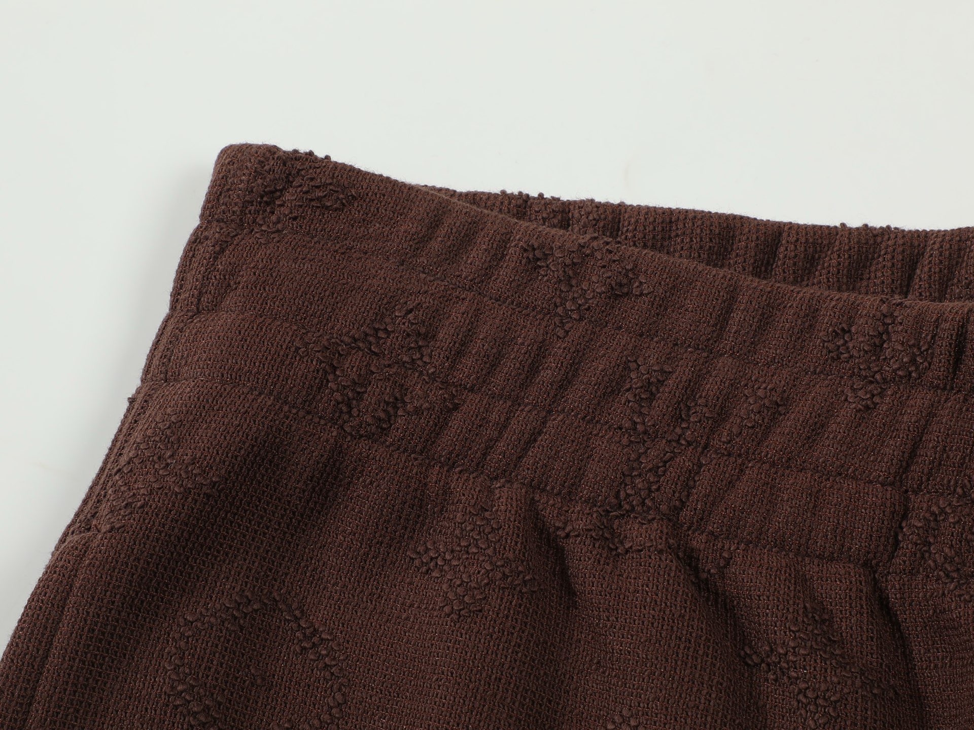 轻奢老花提花秋冬加绒休闲裤,腰部松紧+腰绳,有双侧兜+后兜。裤脚收口。