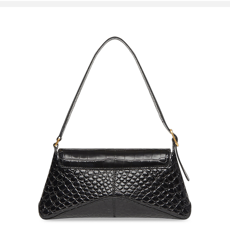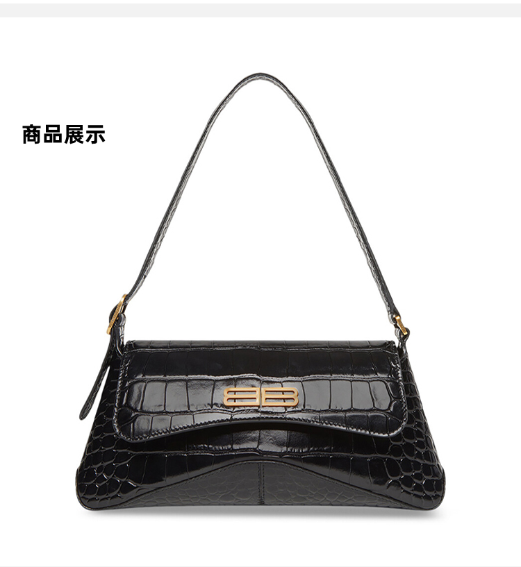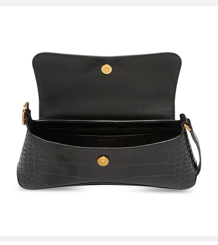 BALENCIAGA 巴黎世家 女士小号闪亮超柔软鳄鱼压纹小牛皮翻盖包斜挎单肩包 黑色 695645 2108X 1000