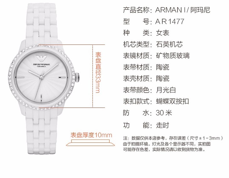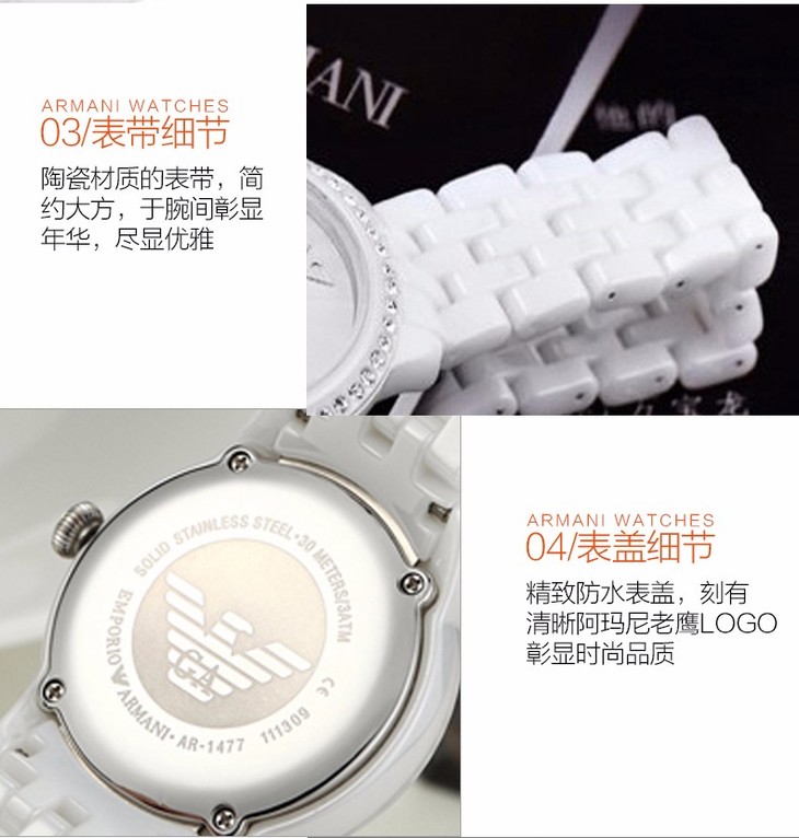 ARMANI/阿玛尼 简约时尚纯白腕带女士手表 AR1477JPY带授权招加盟代理