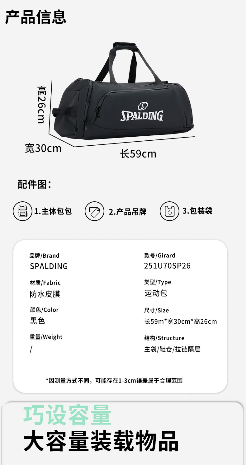Spalding/斯伯丁运动健身包251U70SP26