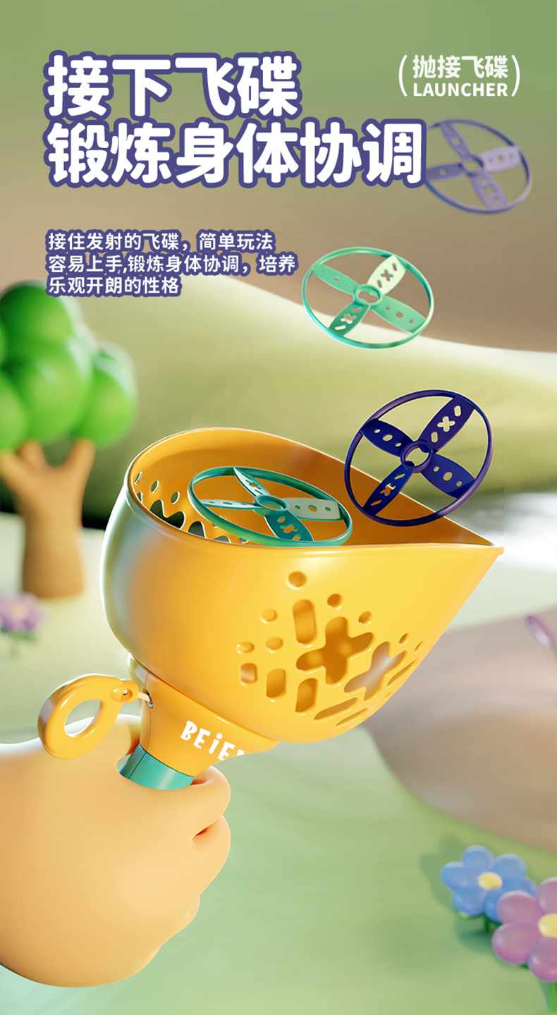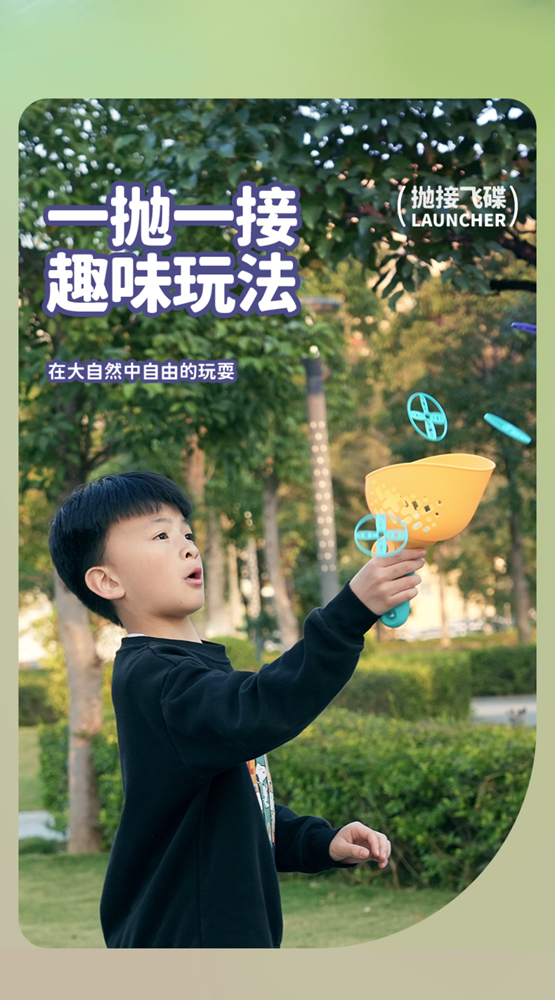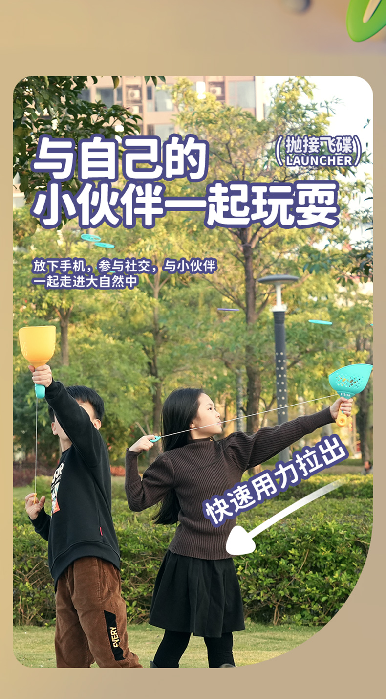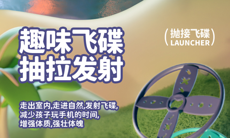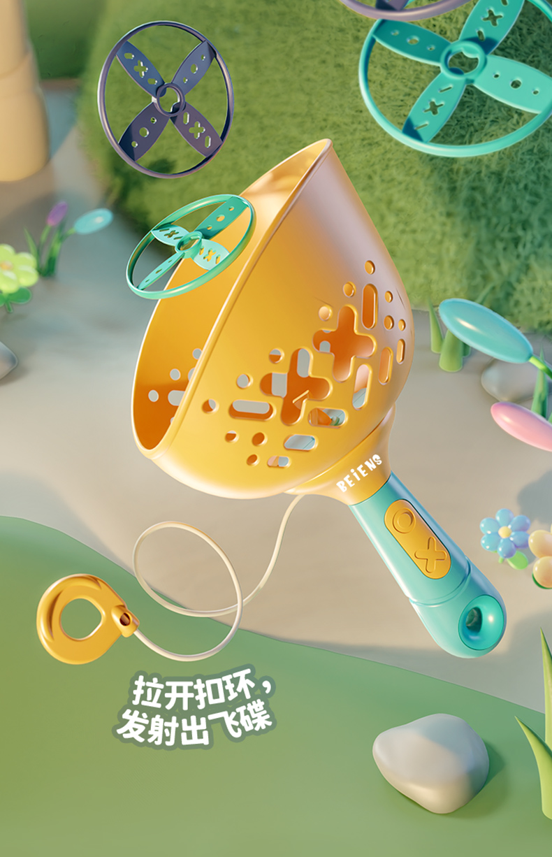 贝恩施儿童飞碟户外玩具男女孩手拉弹射竹蜻蜓软飞盘室外运动3岁6