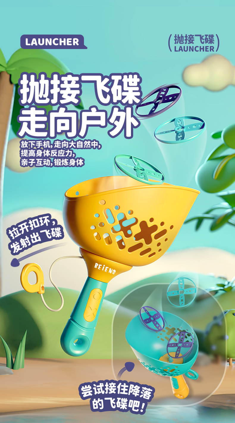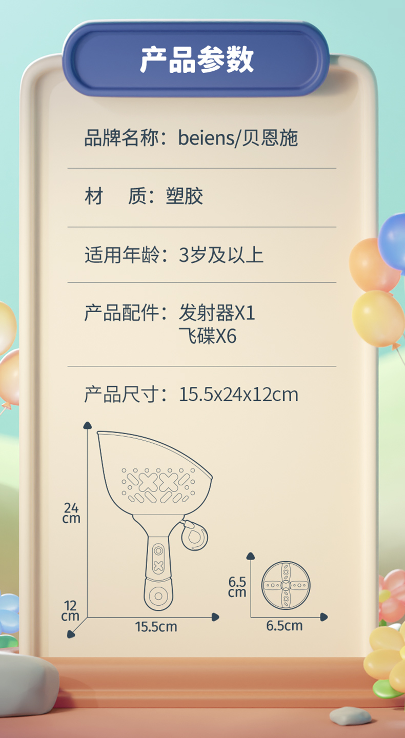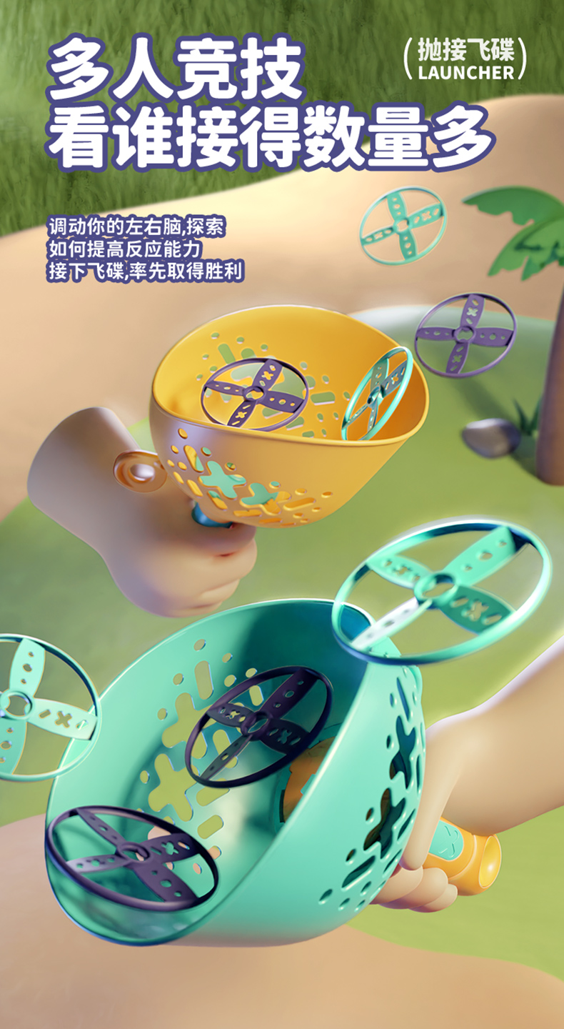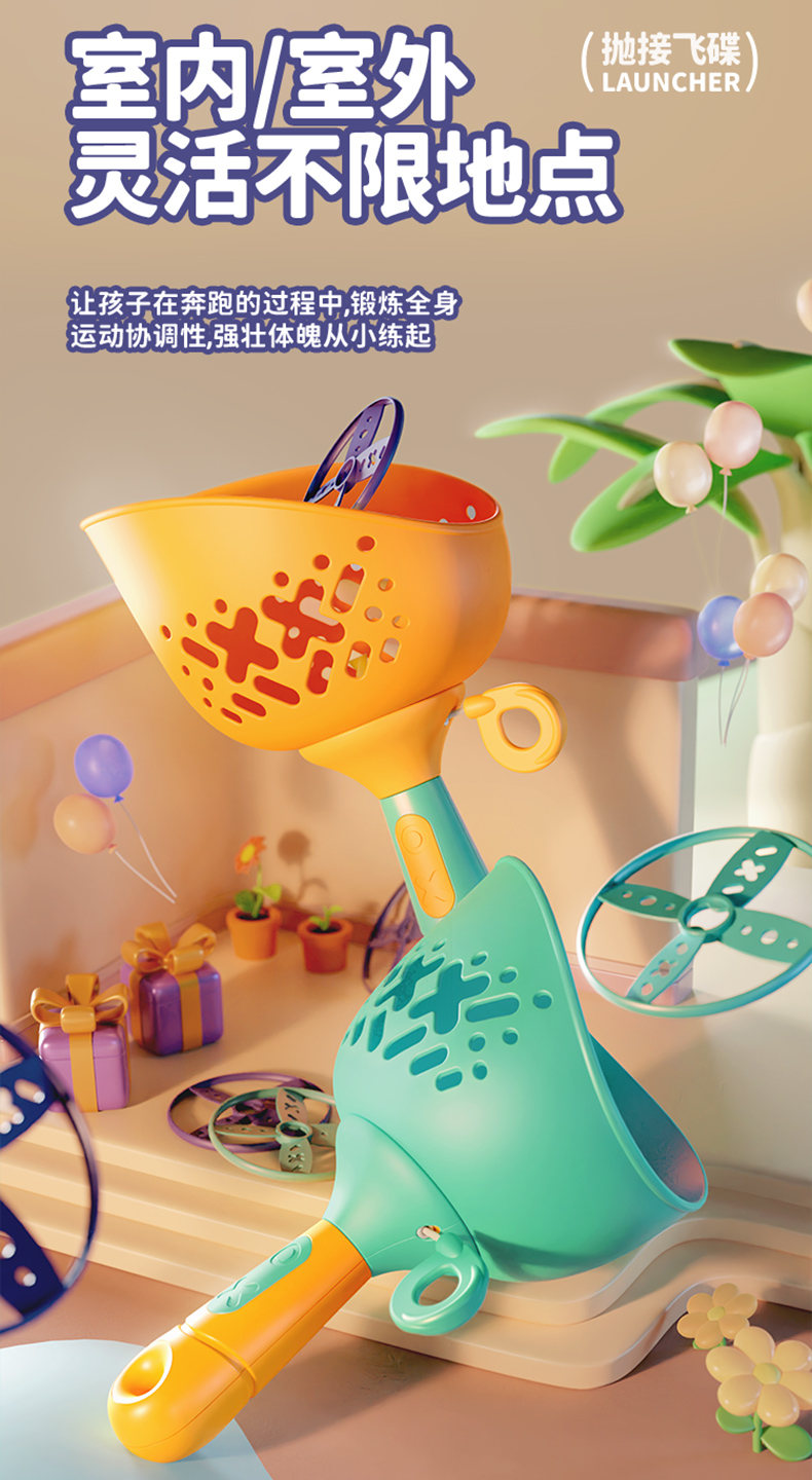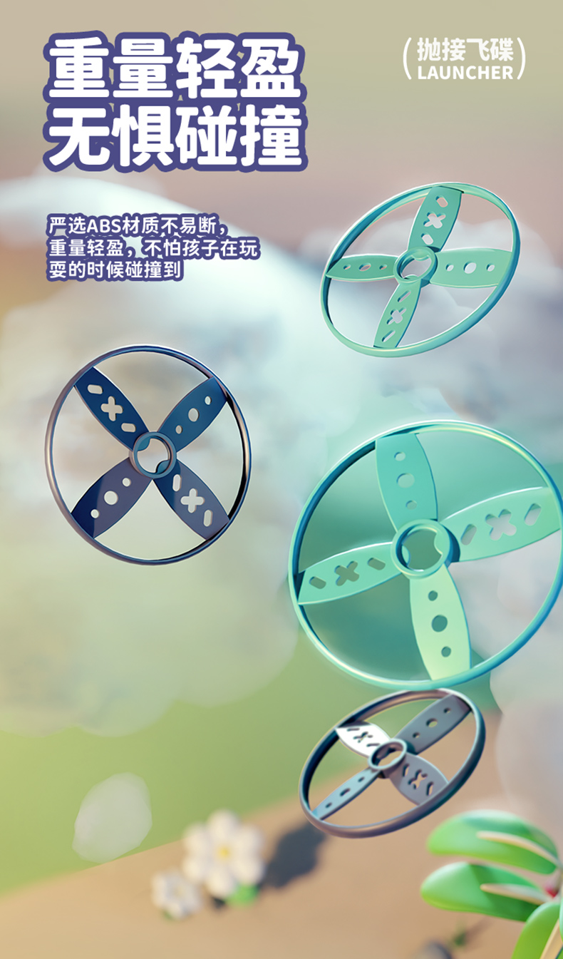 贝恩施儿童飞碟户外玩具男女孩手拉弹射竹蜻蜓软飞盘室外运动3岁6