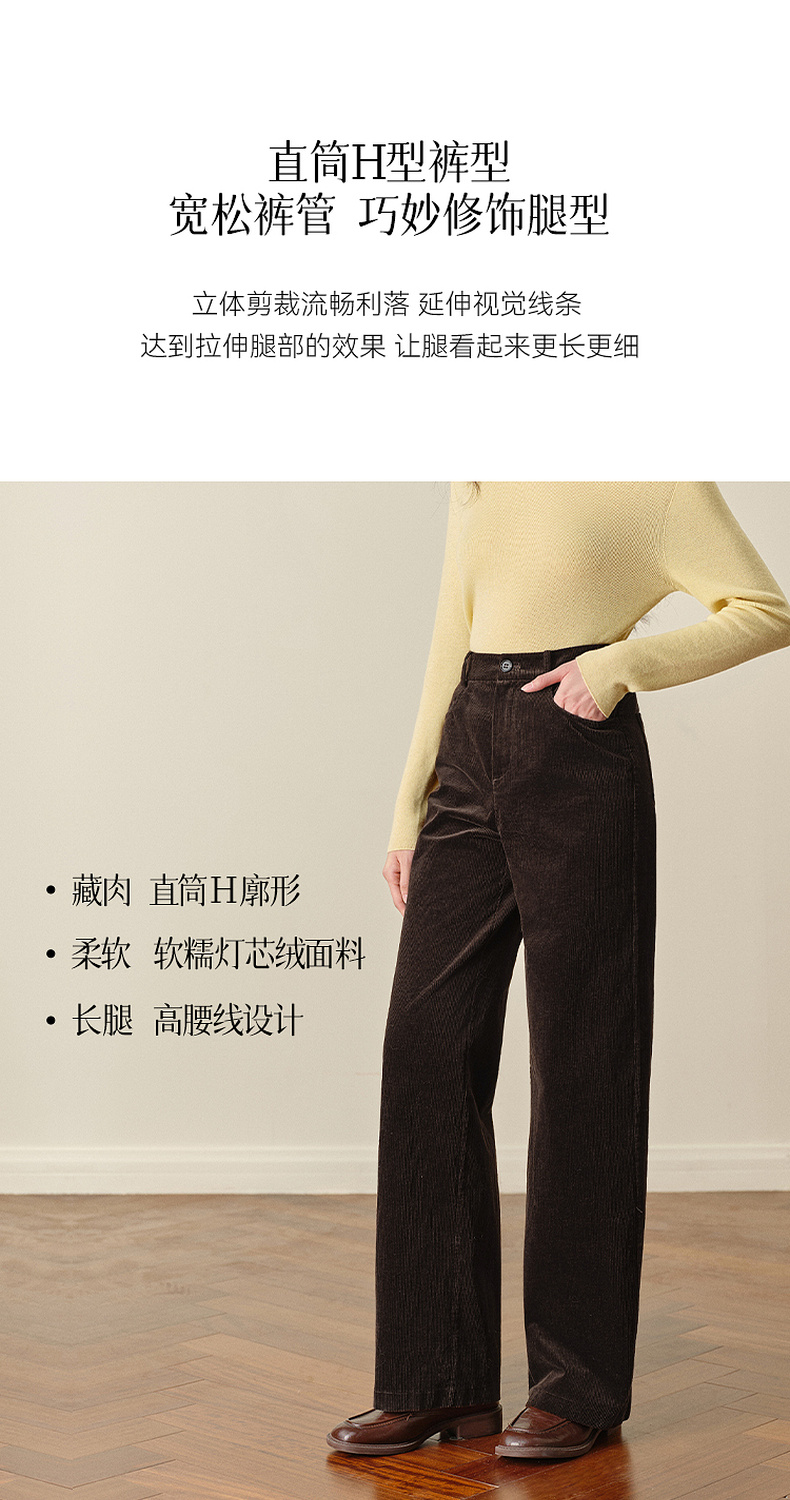 【严选】孟子义代言诗凡黎灯芯绒直筒休闲裤2025秋冬新款百搭美拉德风长裤7G9351291