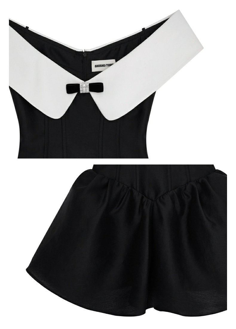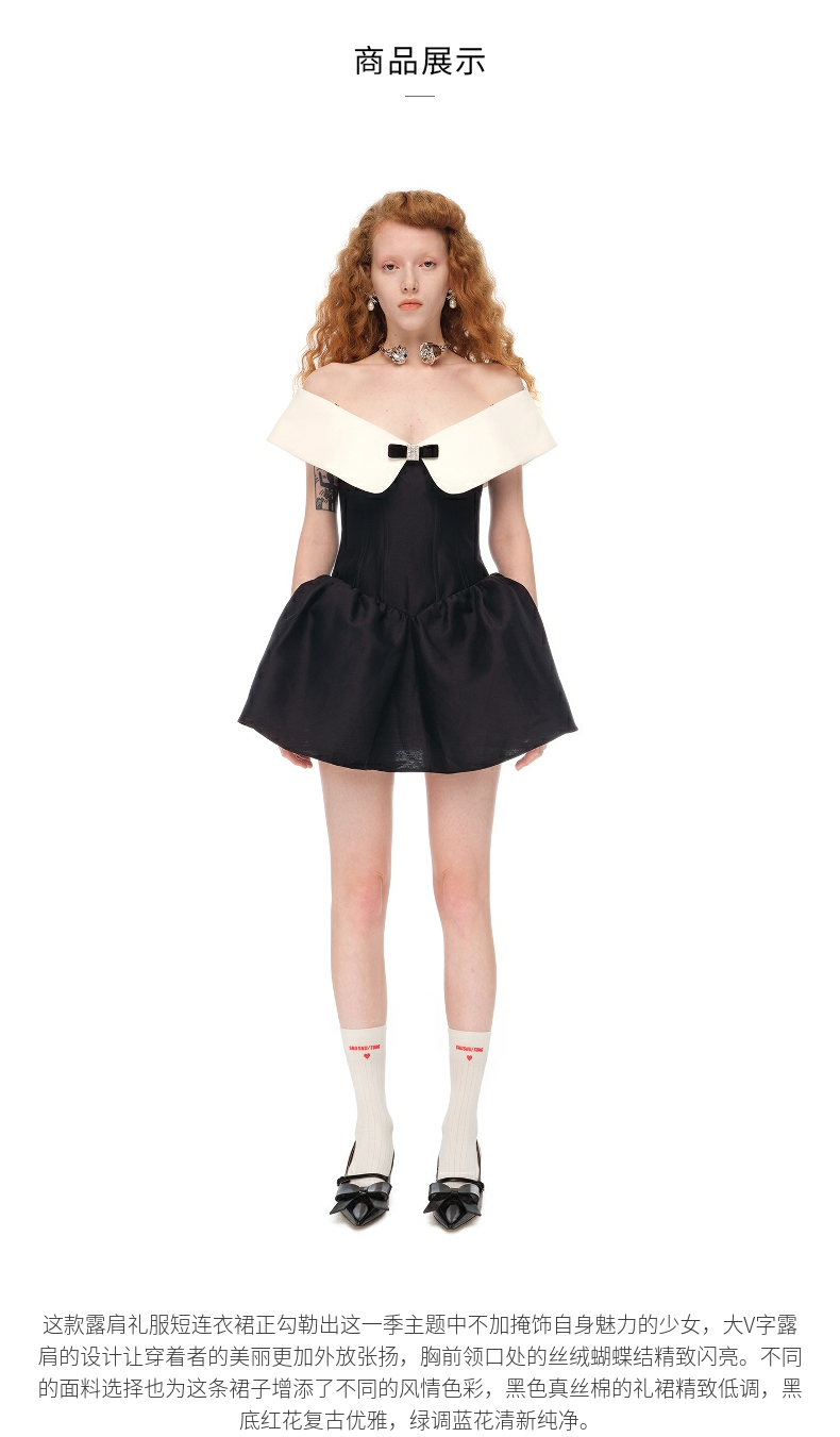 【SHUSHUTONG】蕾虎一字领露肩连衣裙经典款公主裙A字裙 商品图2
