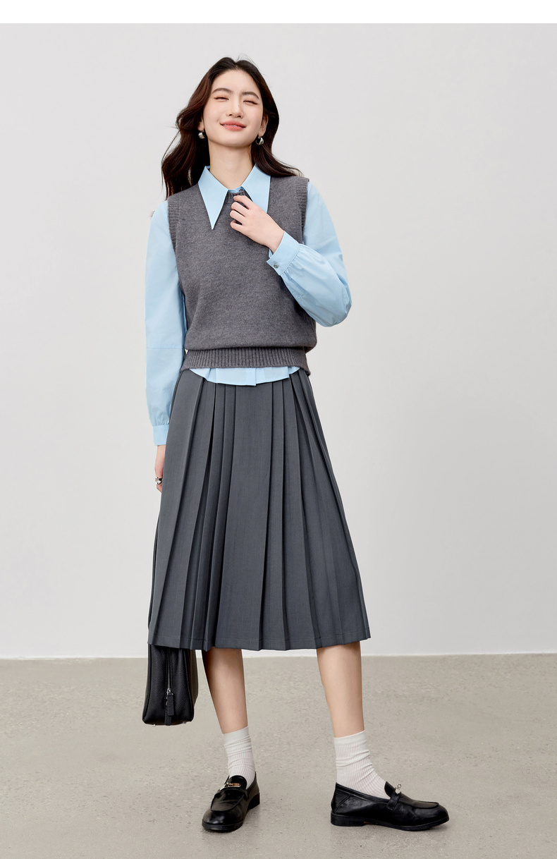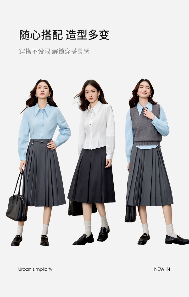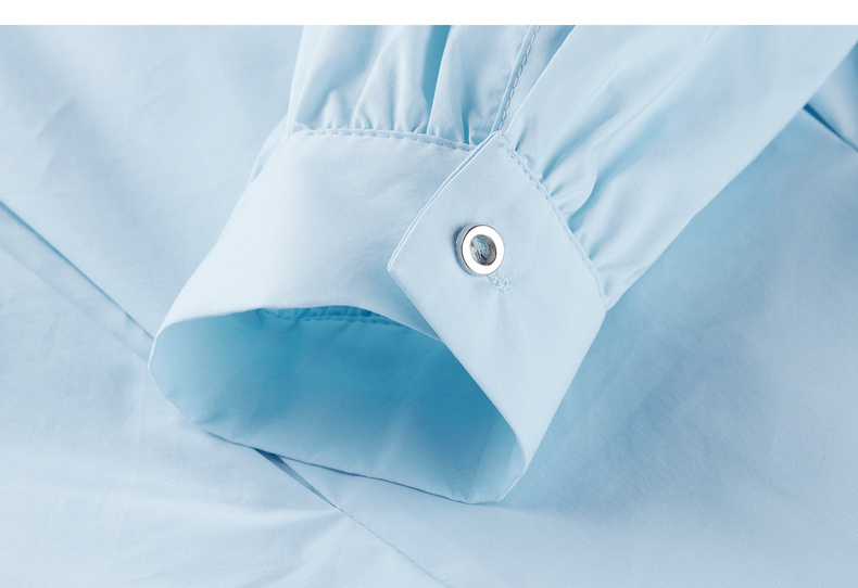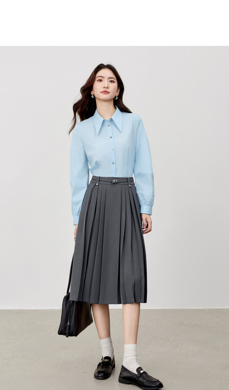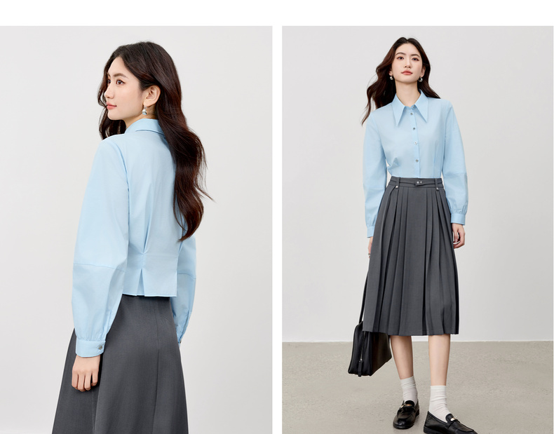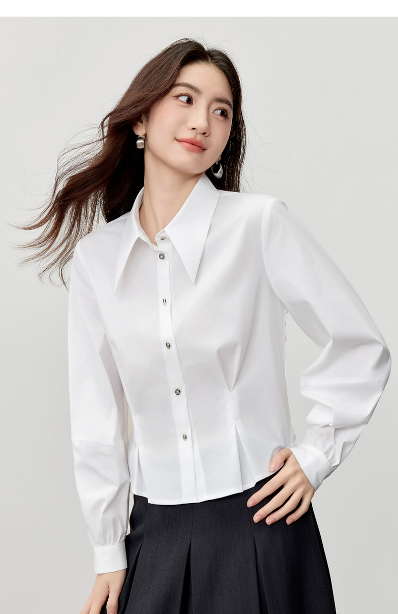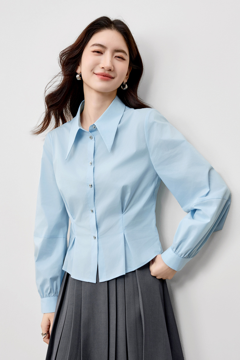 【内购】【通搭三季】简约通勤尖角领金属扣腰部收褶分割设计长袖短款衬衫-W53CB2752