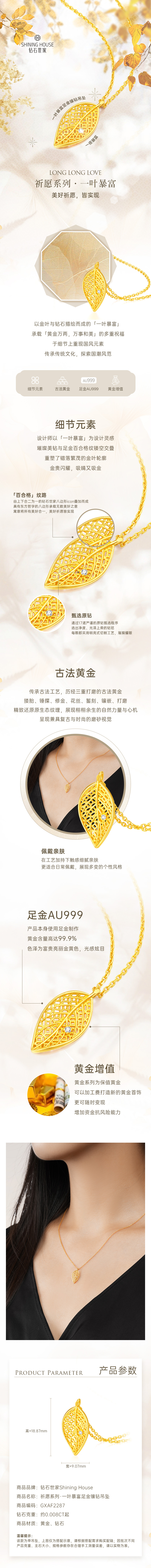 【定价黄金】【限时8折】【现货】钻石世家 一叶暴富钻石吊坠 叶子造型 黄金足金吊坠【黄金不支持7天无理由退换货(7天内发货)】(约 1.1克±0.1克)