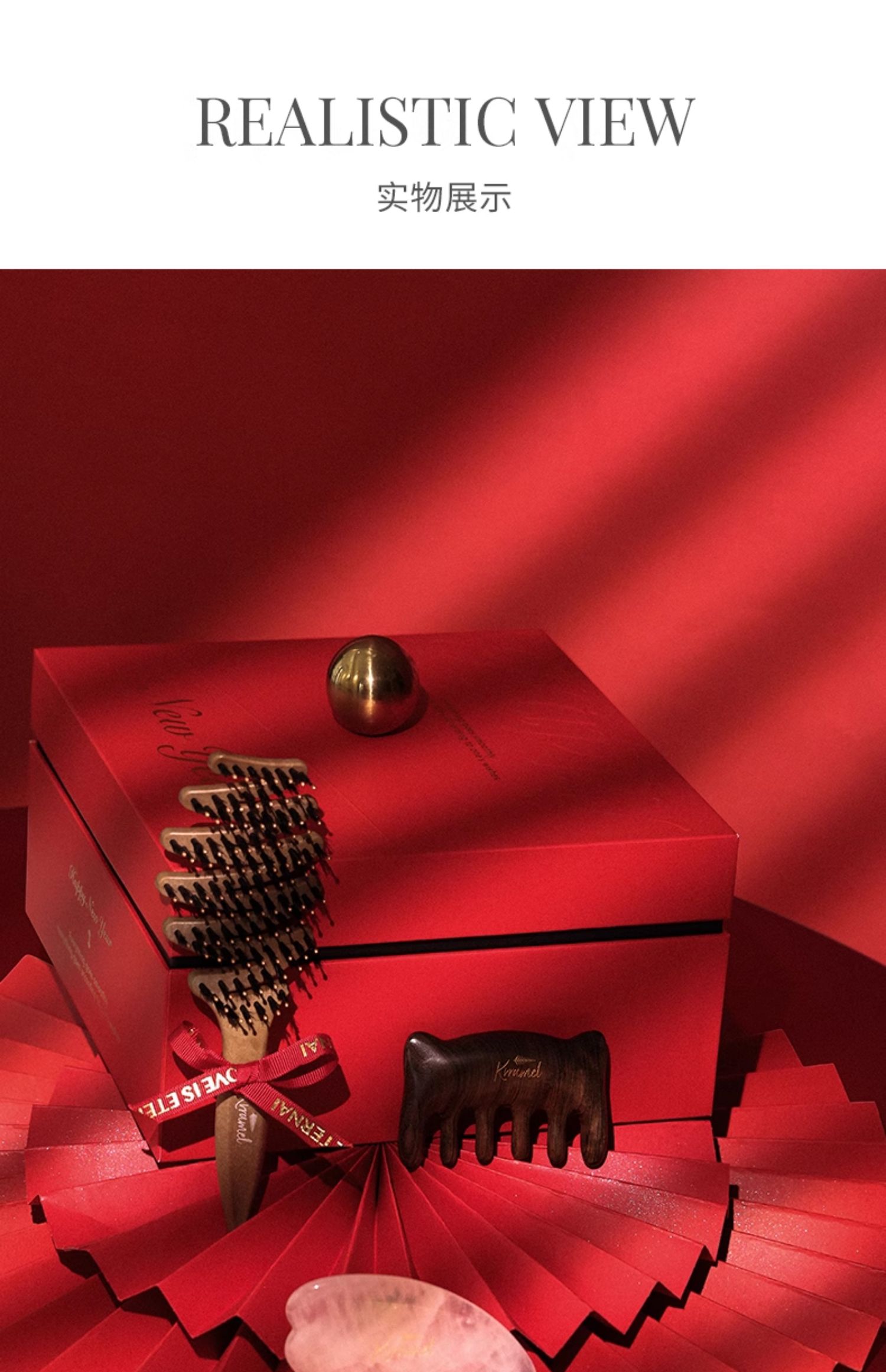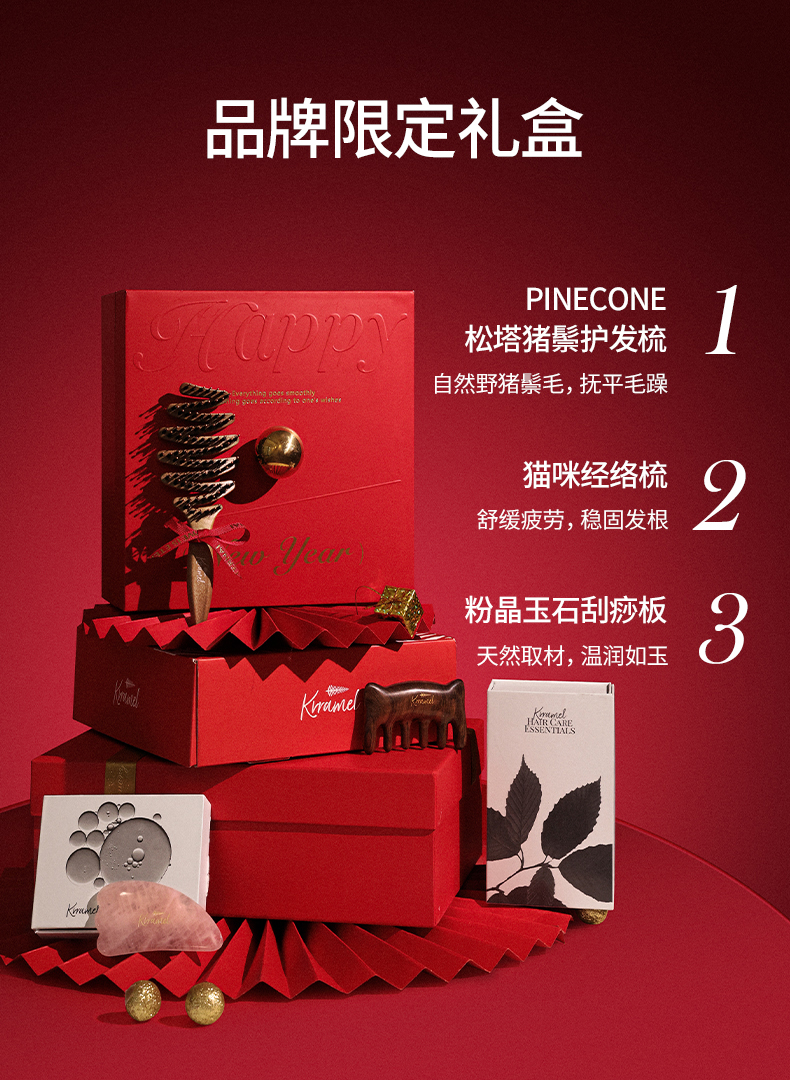 Krramel 养生护发礼盒 LH-010 中号松塔梳+猫咪经络梳+刮痧板 经络梳猪鬃梳实用生日结婚礼物新婚伴手礼