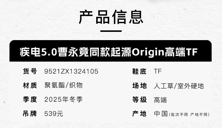 小李子卡尔美疾电5.0Challenge曹永竟同款起源OriginTF碎钉足球鞋