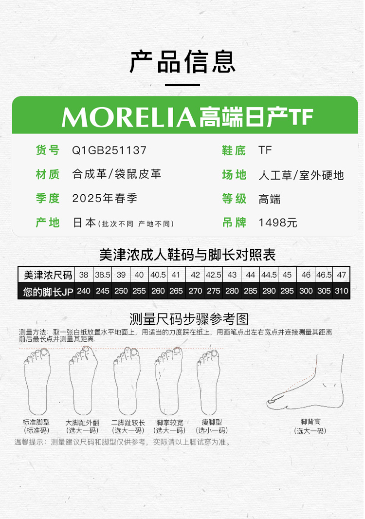 【M8】美津浓莫雷拉MORELIA高端日产M8碎钉TF袋鼠皮足球鞋成人男