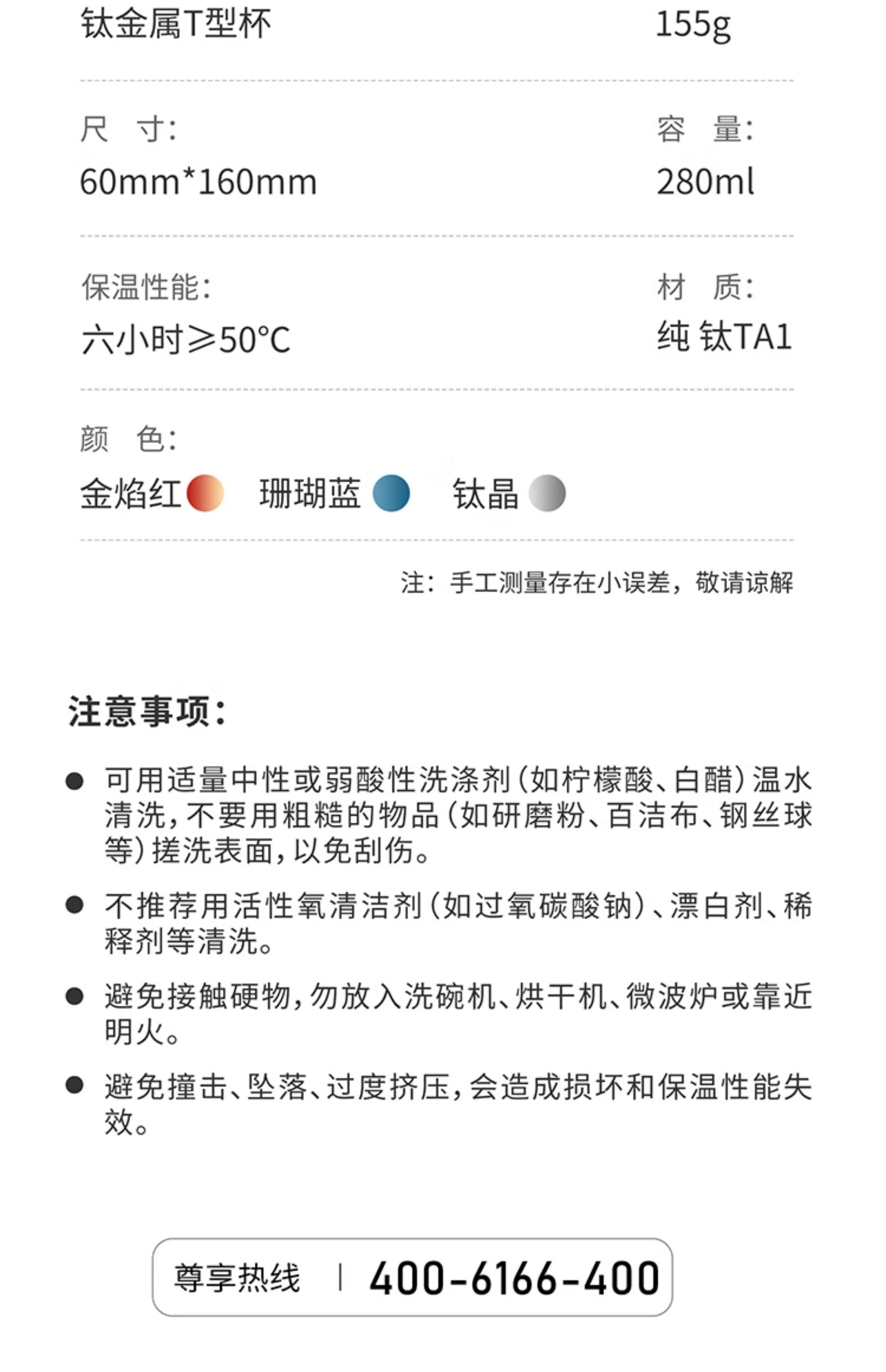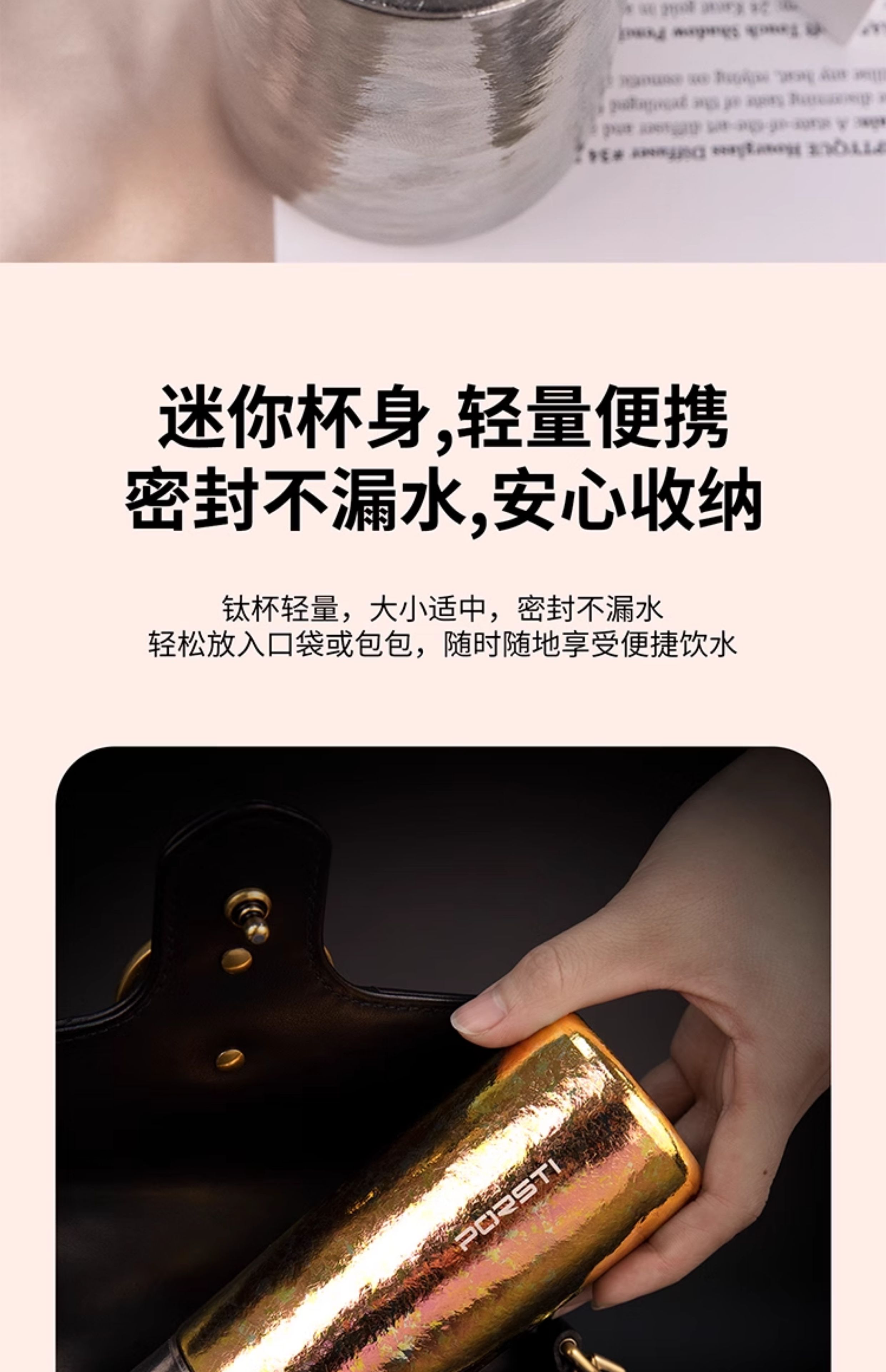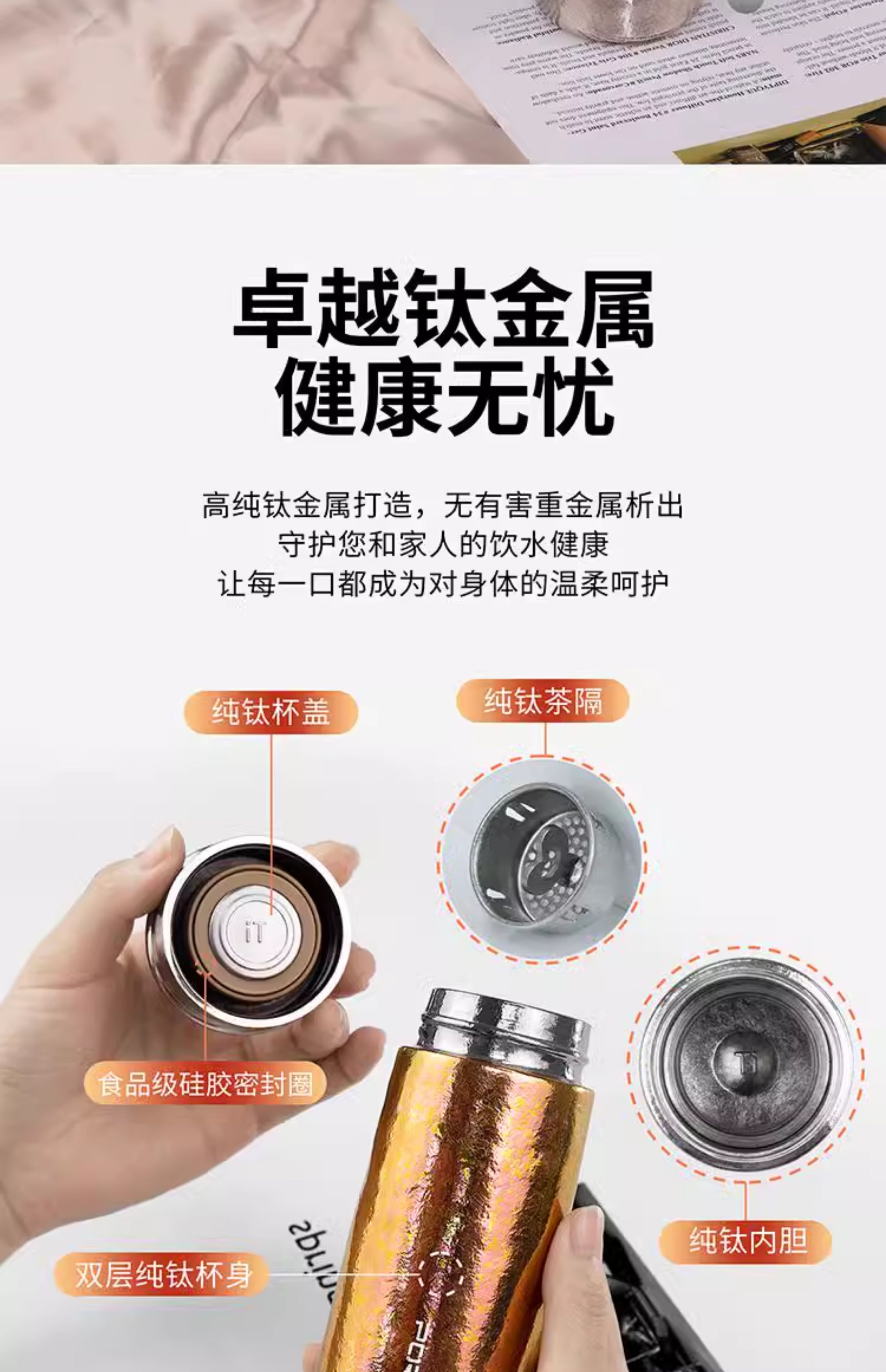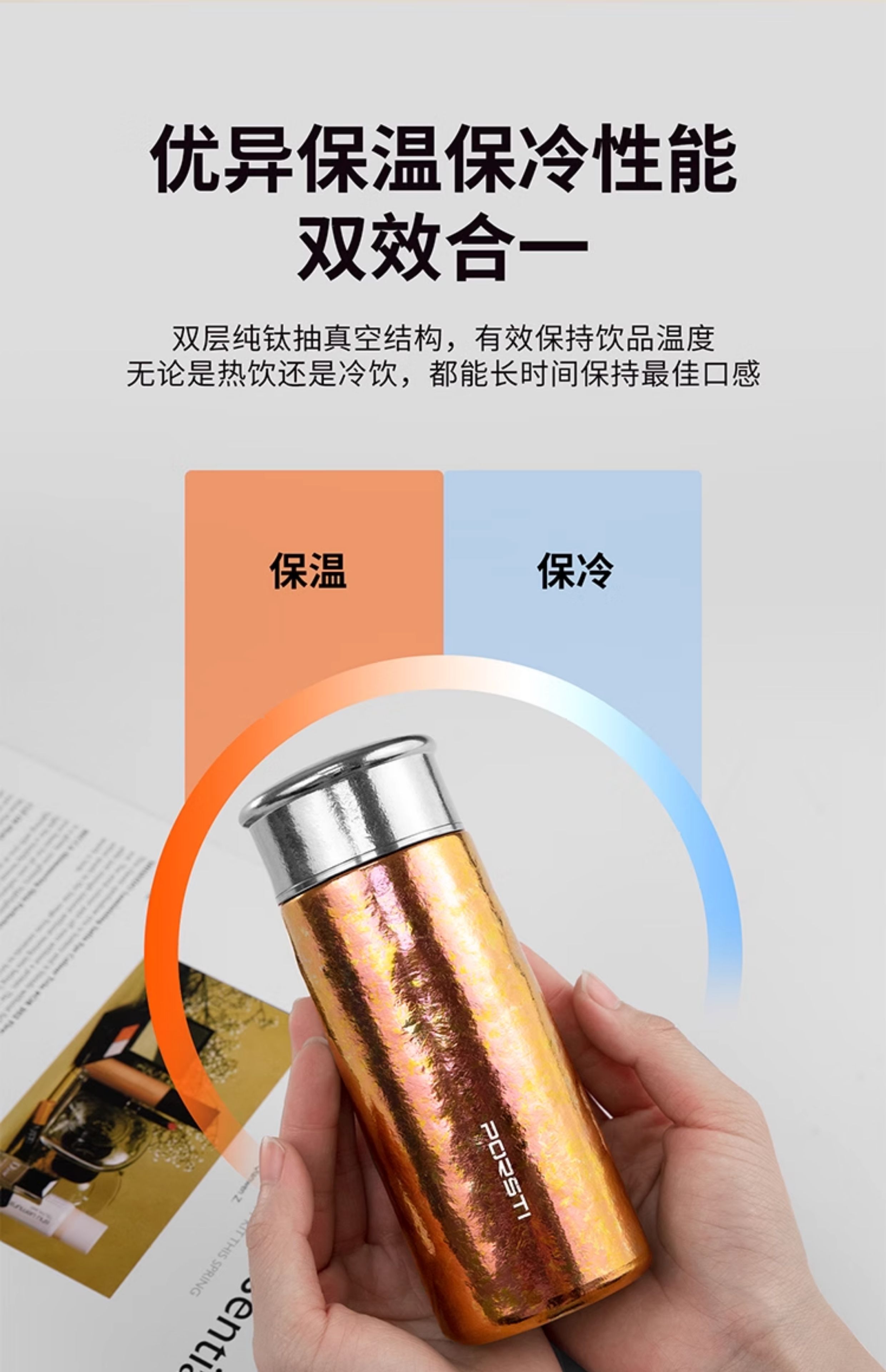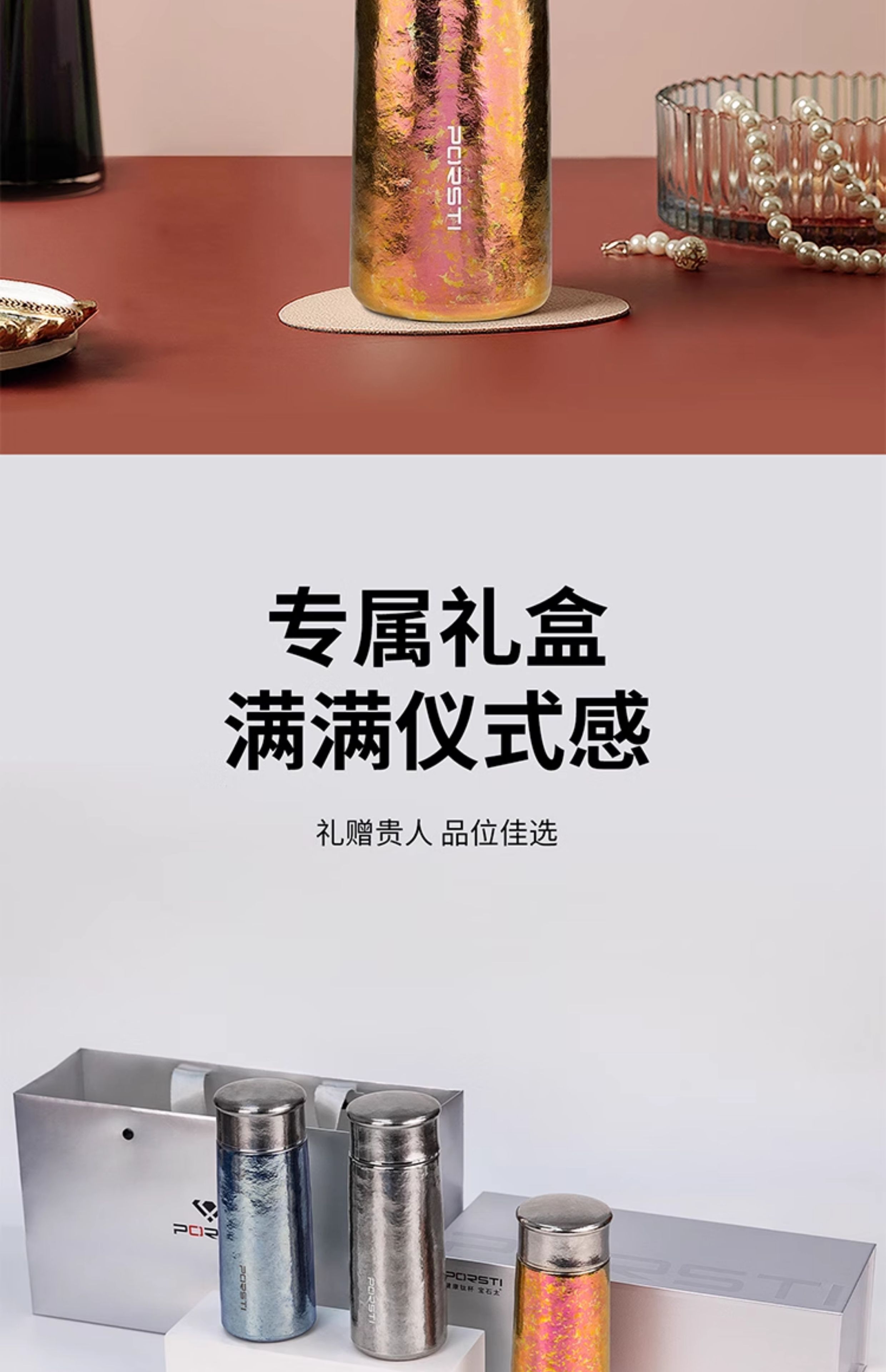 桑亚塔 宝石太纯钛杯保温杯男女便携高档情侣居家水T形杯男女朋友礼物