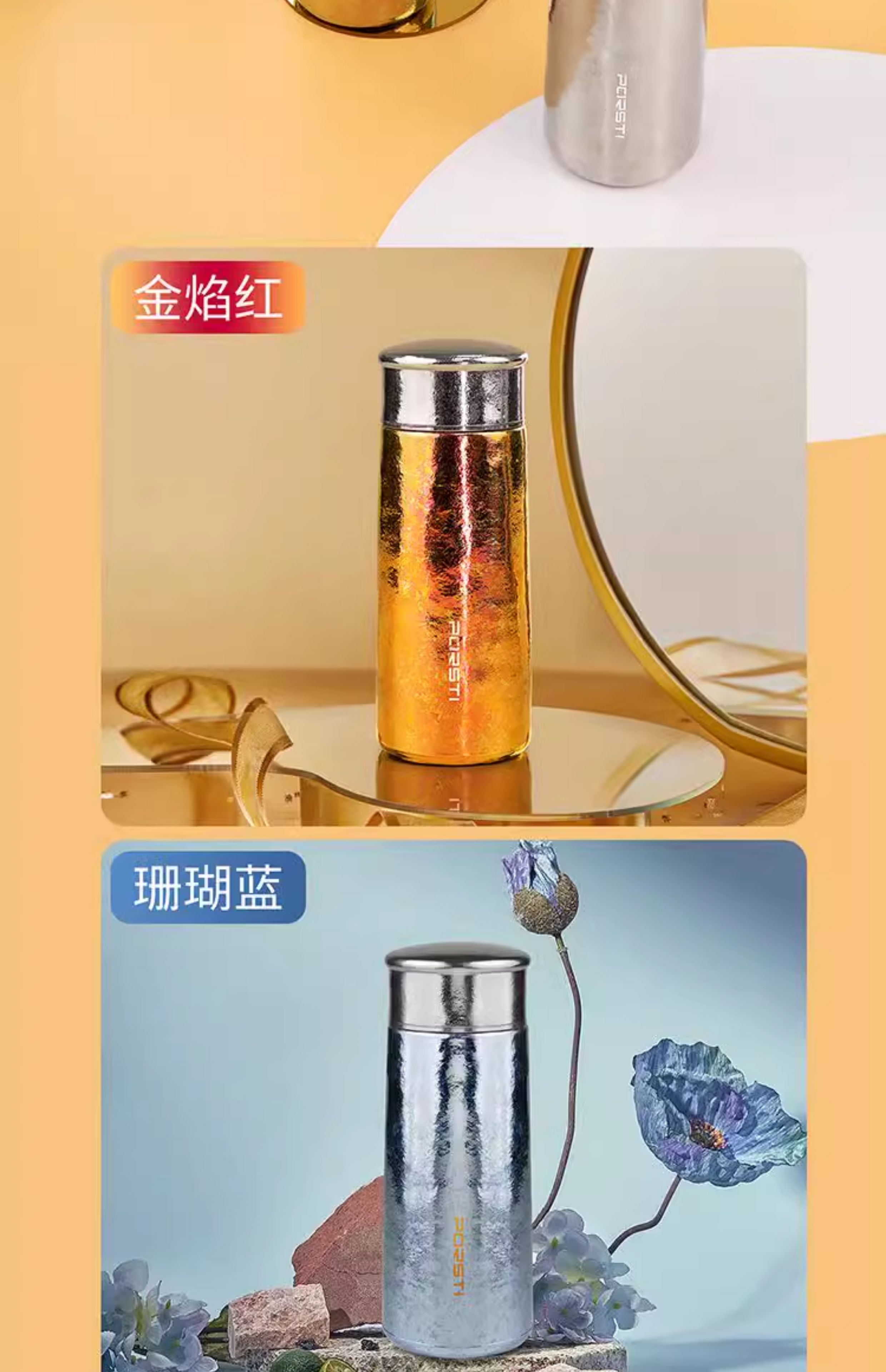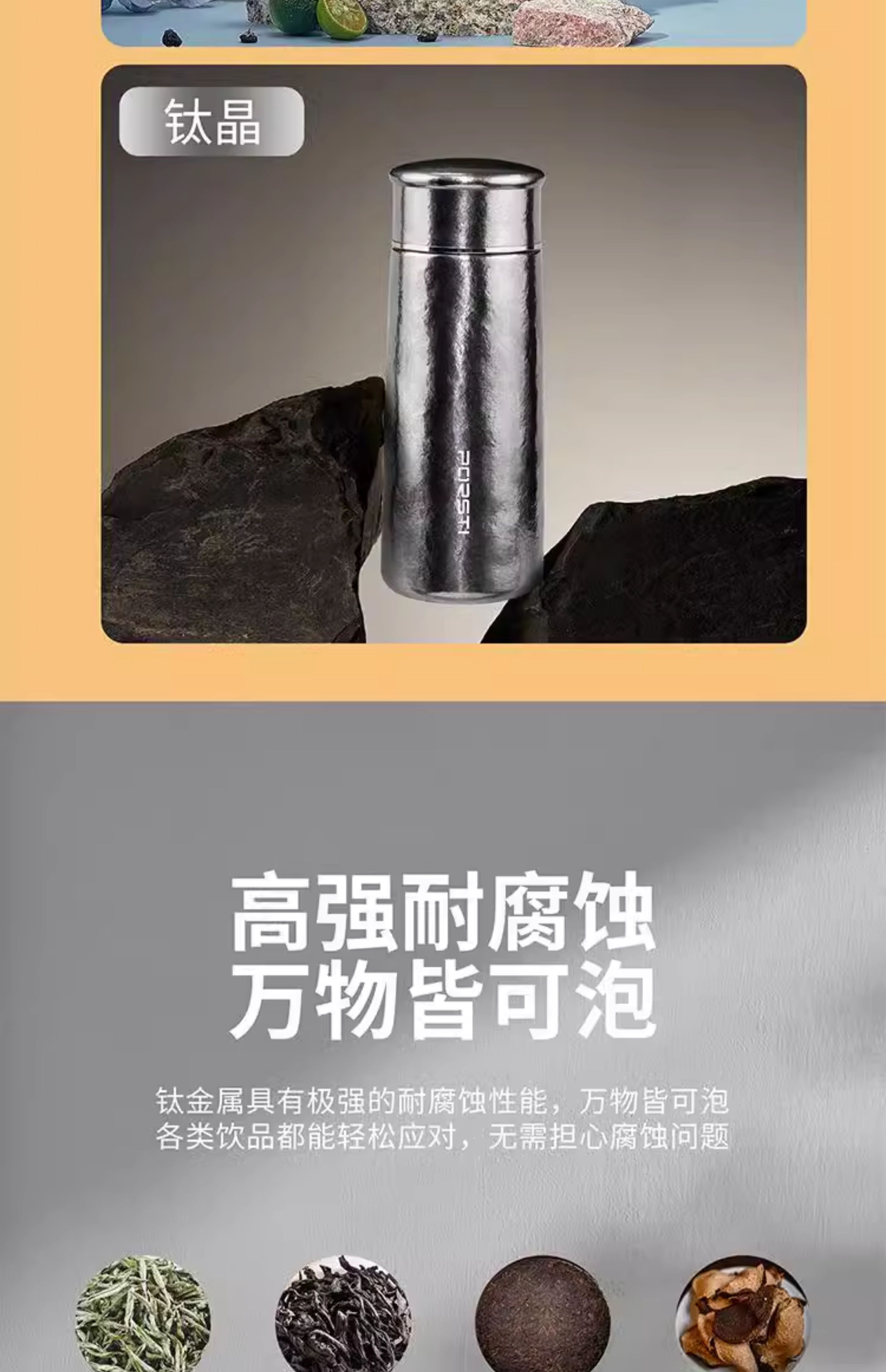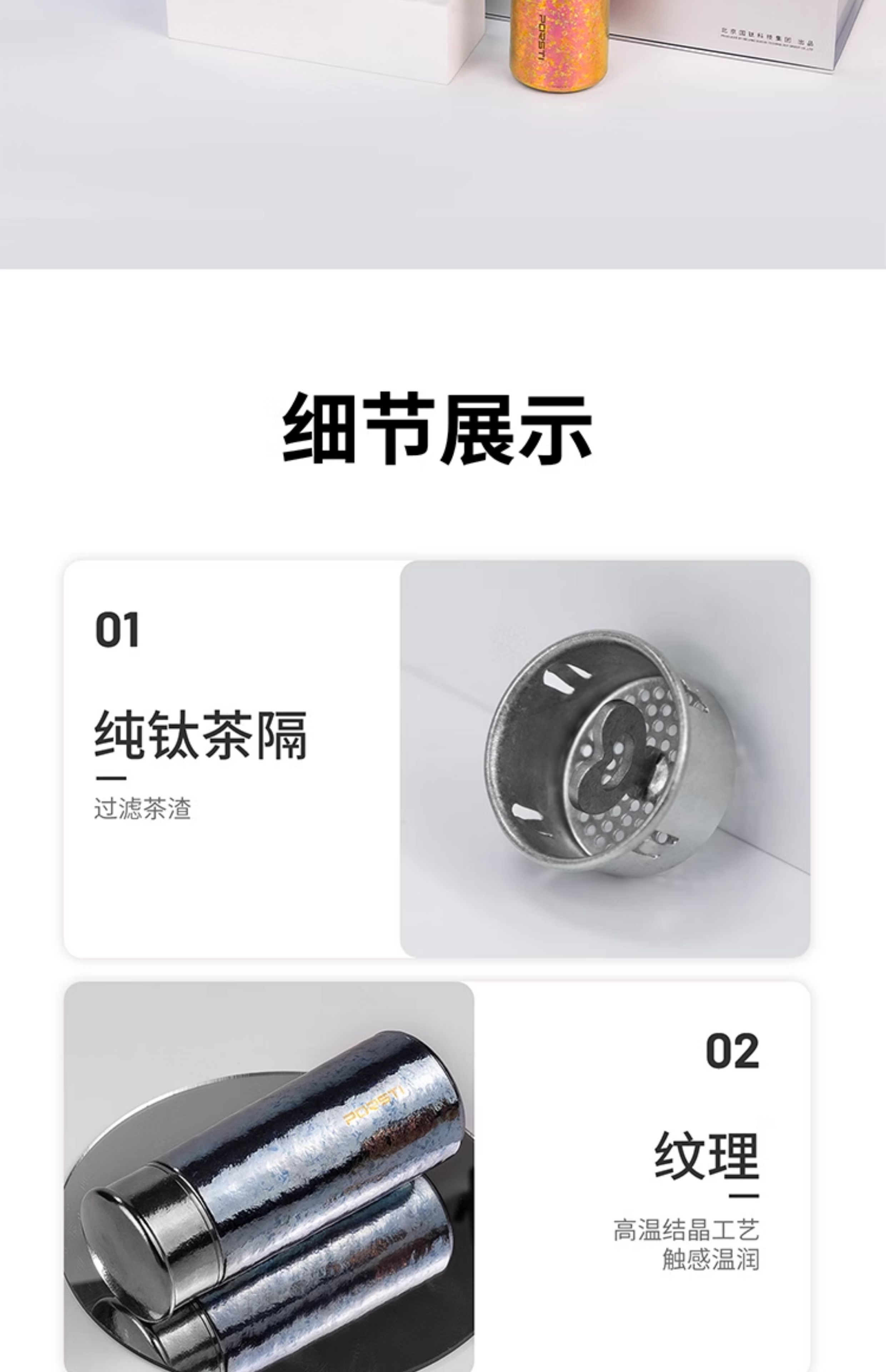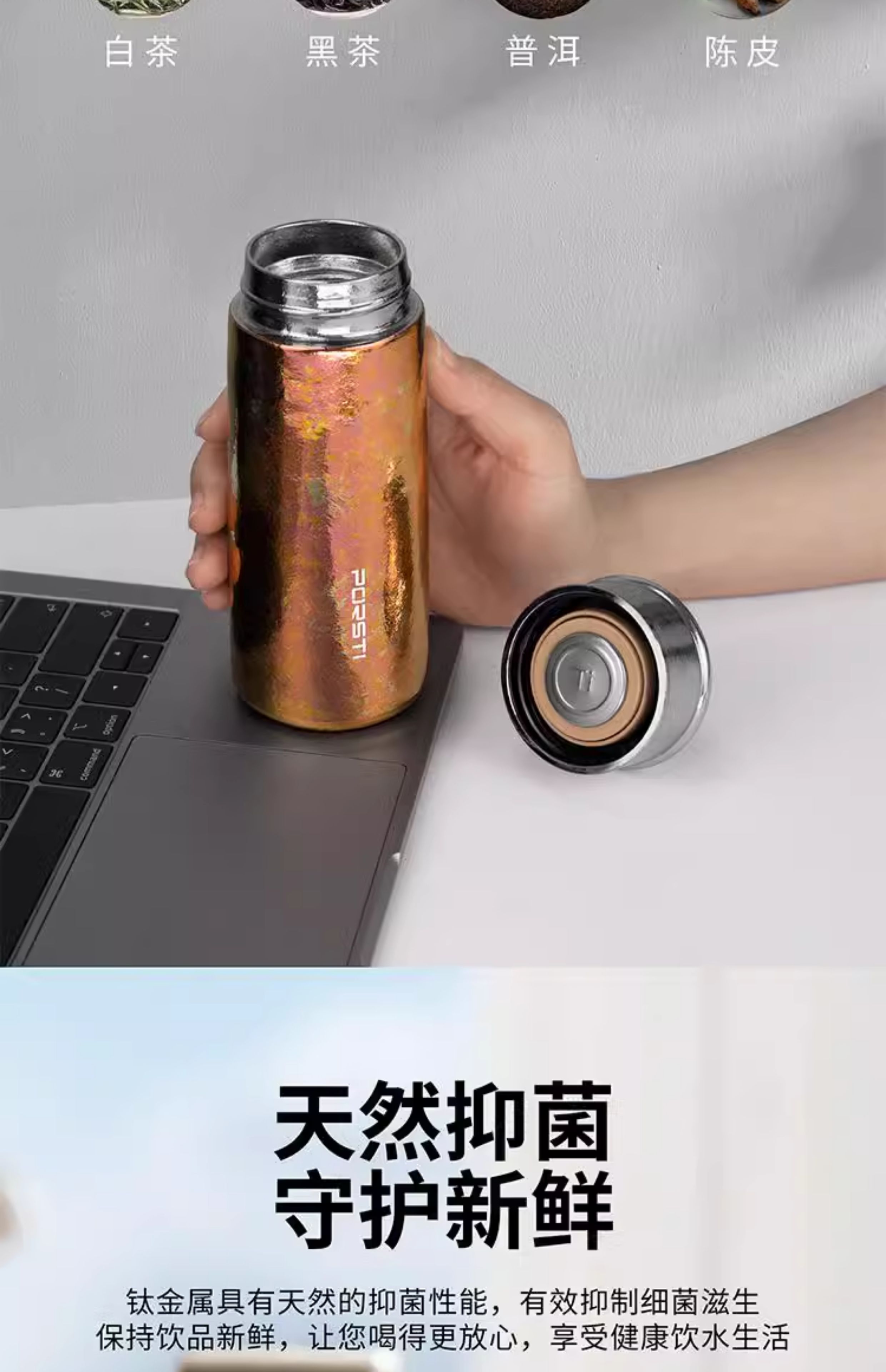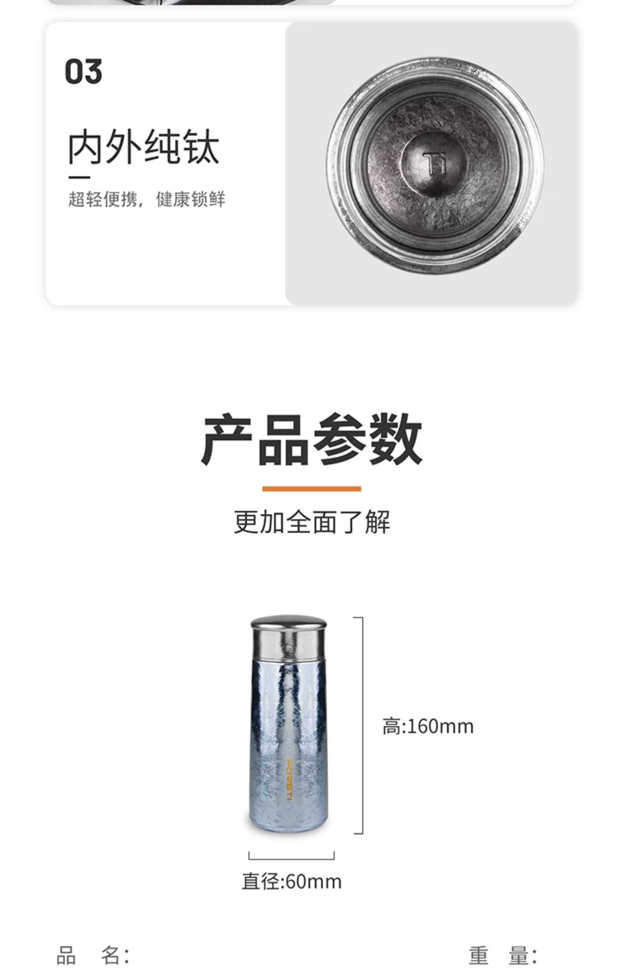 桑亚塔 宝石太纯钛杯保温杯男女便携高档情侣居家水T形杯男女朋友礼物