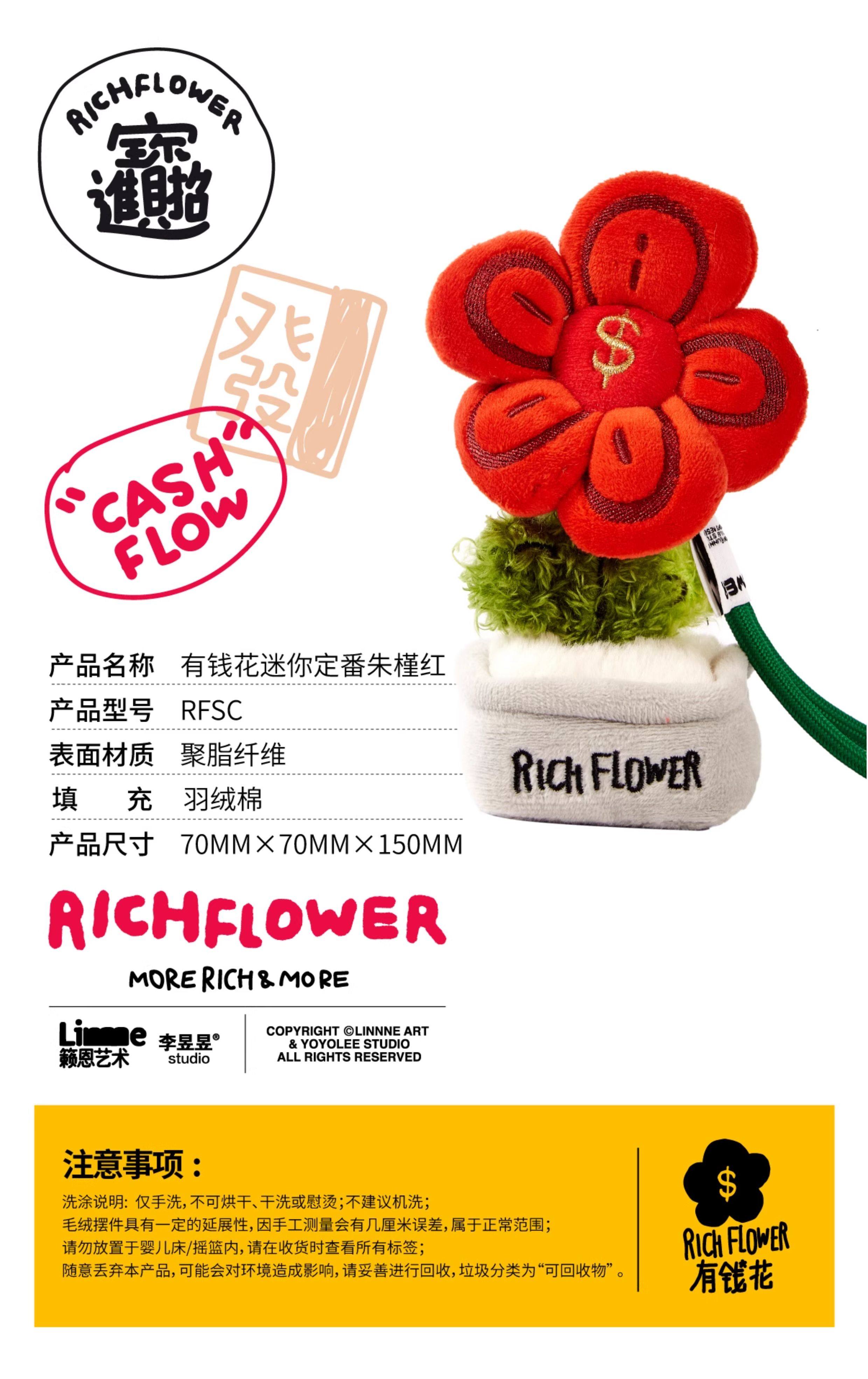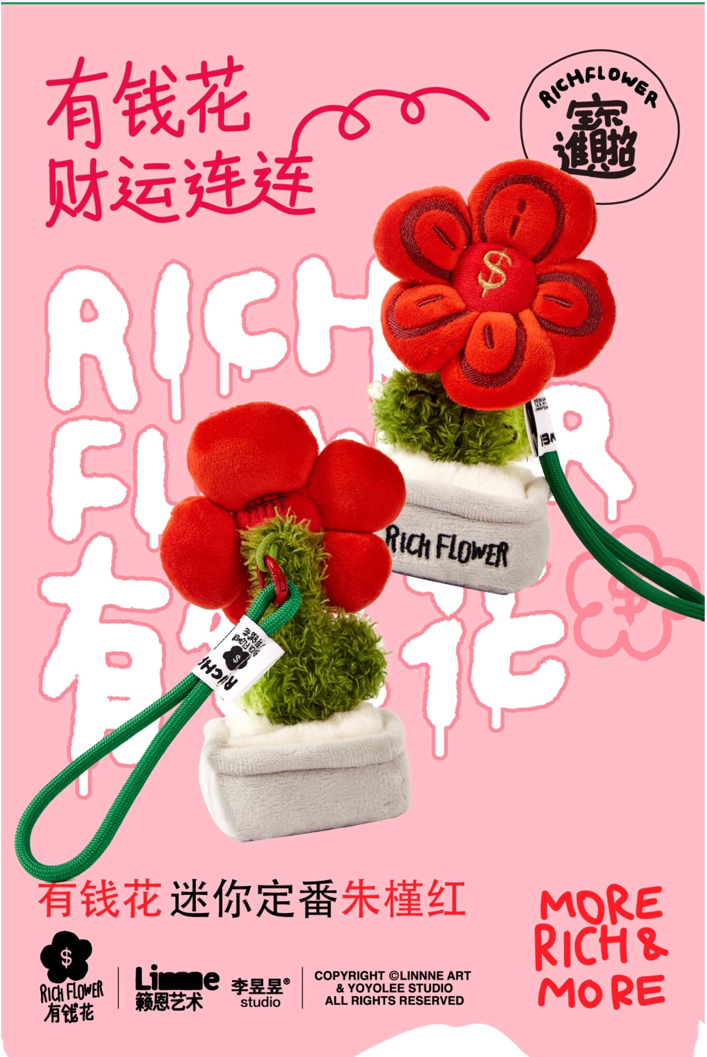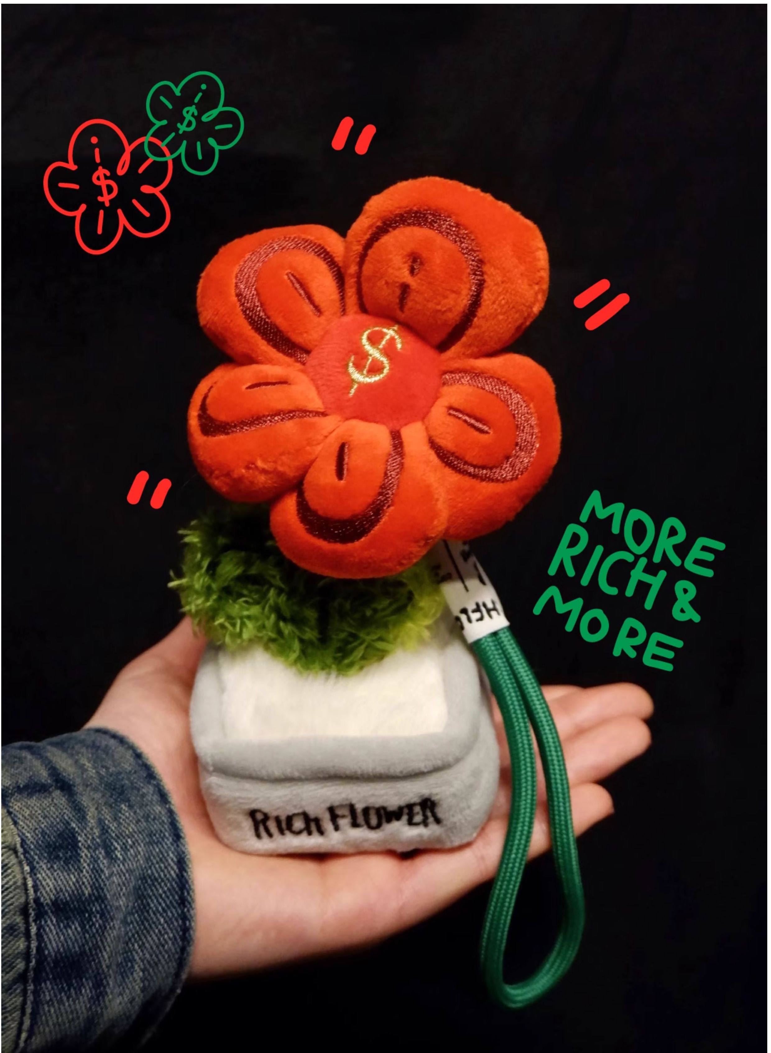 RICH FLOWER 有钱花 毛绒挂件 红色 mini 创意摆件招财礼品送礼送女友节日