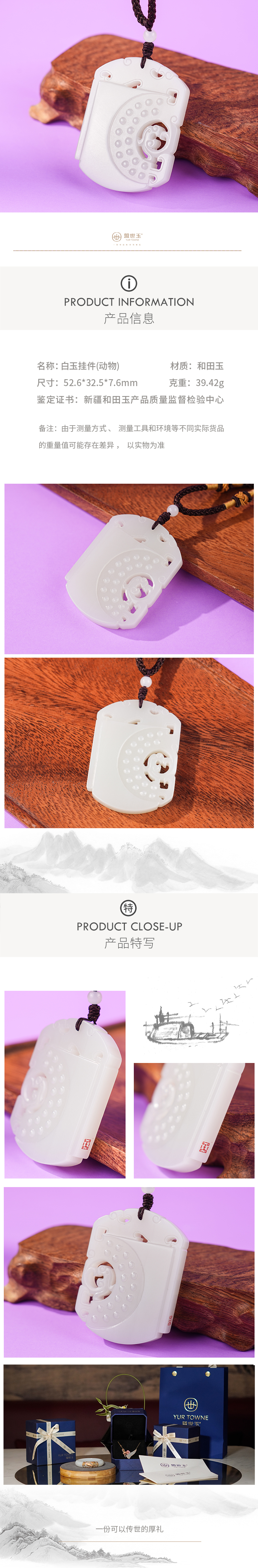 新疆国玉盟世玉白玉挂件对牌(龙)【带证书·顺丰物流】