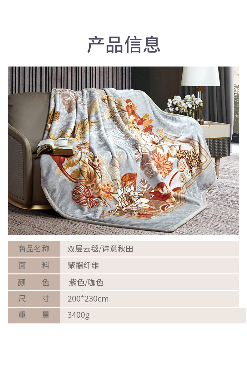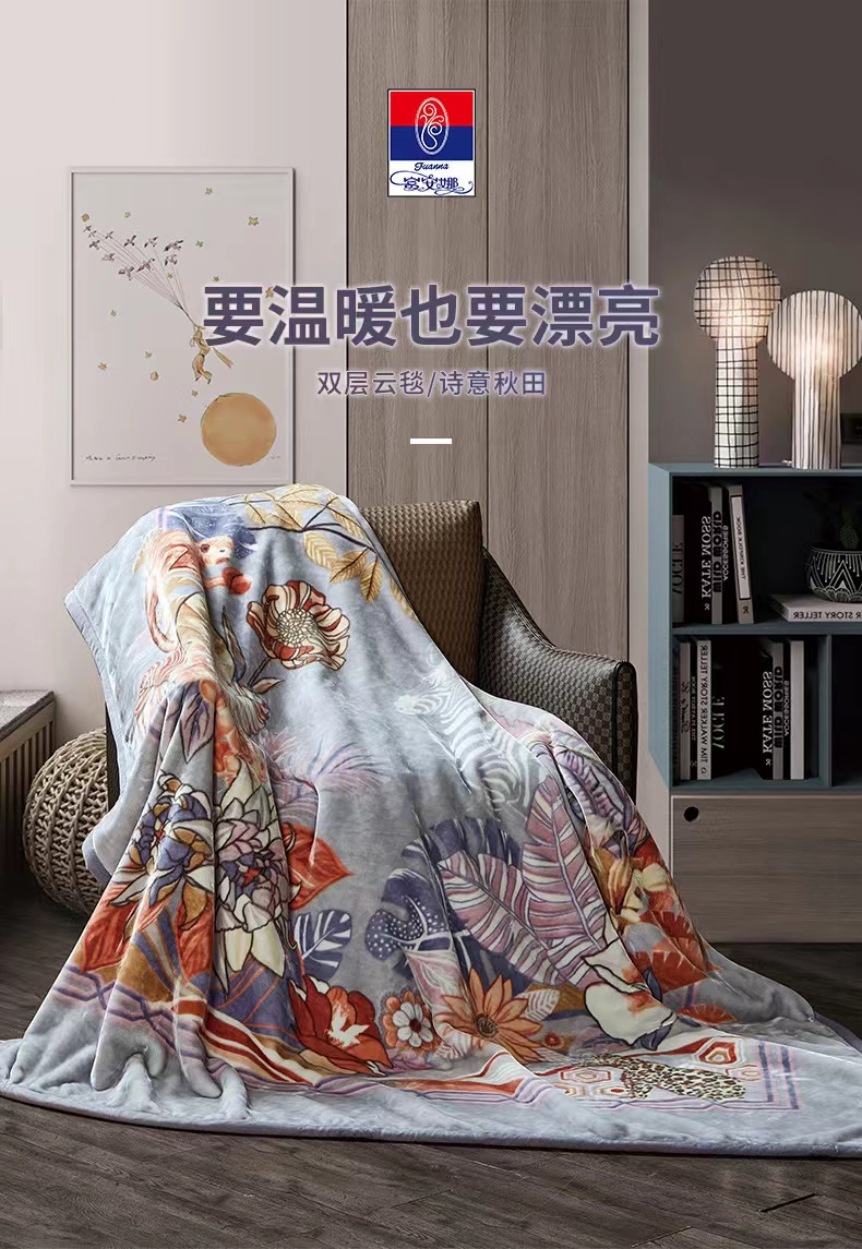 富安娜家居毛毯双层云毯/诗意秋田